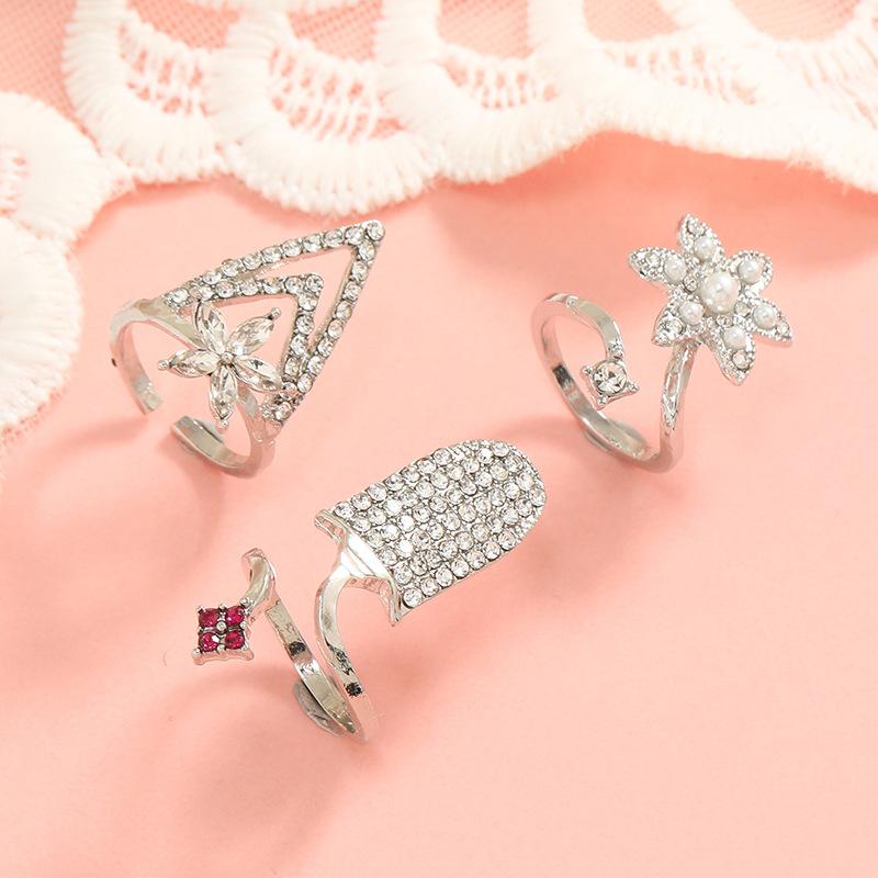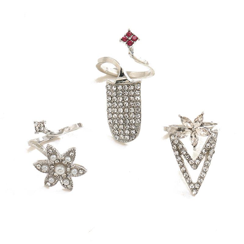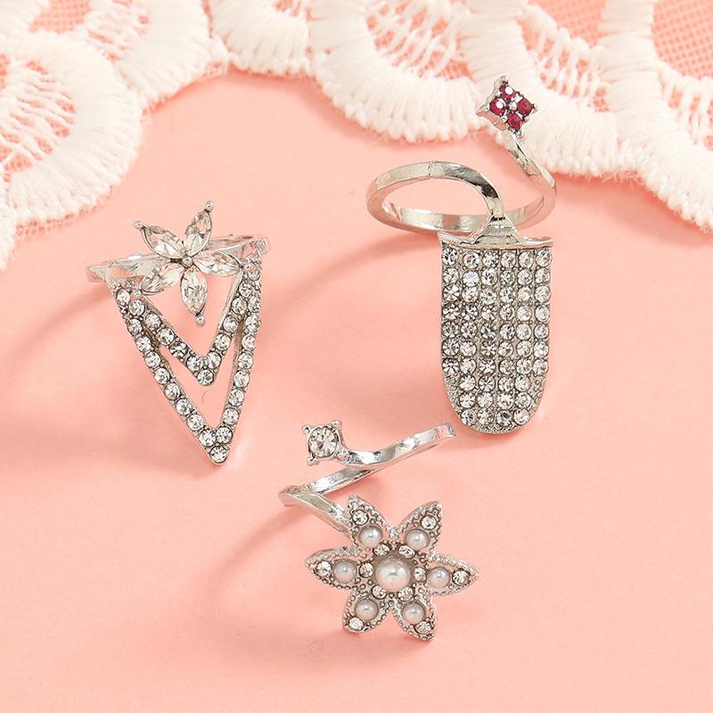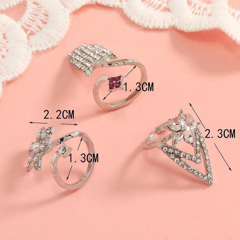 Diseño simple ins creativo anillo abierto retro con incrustaciones de diamantes elegante europeo y americano moderno geométrico anillo para uña juego de 3 piezas