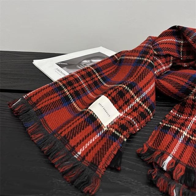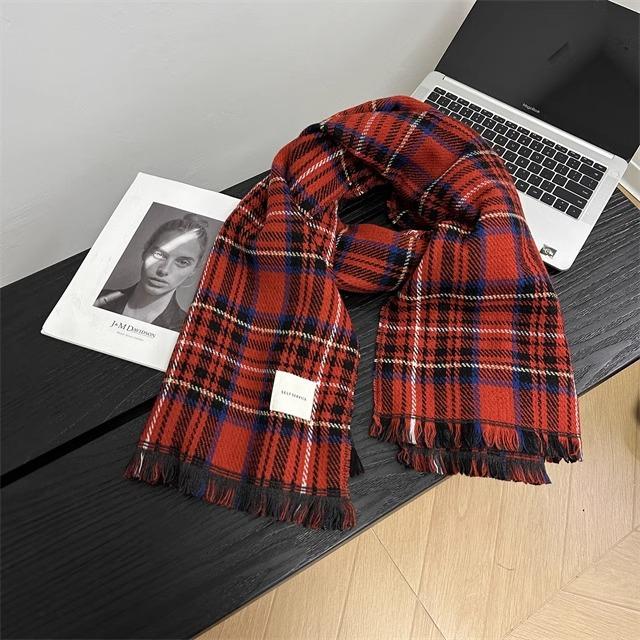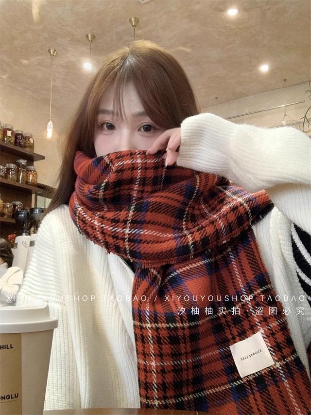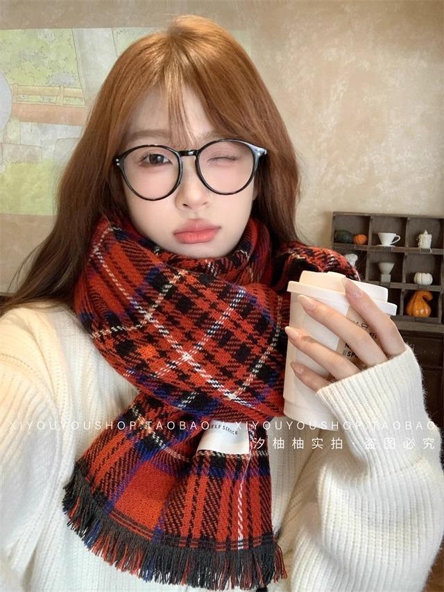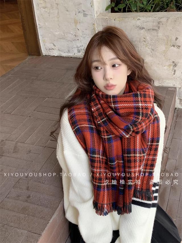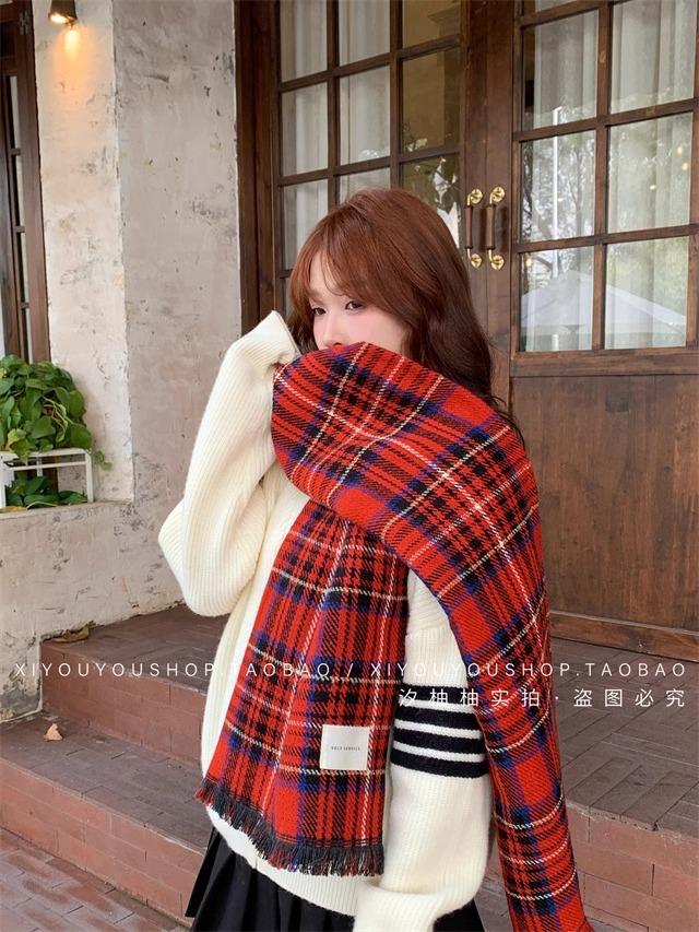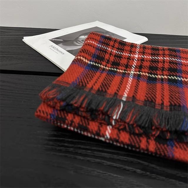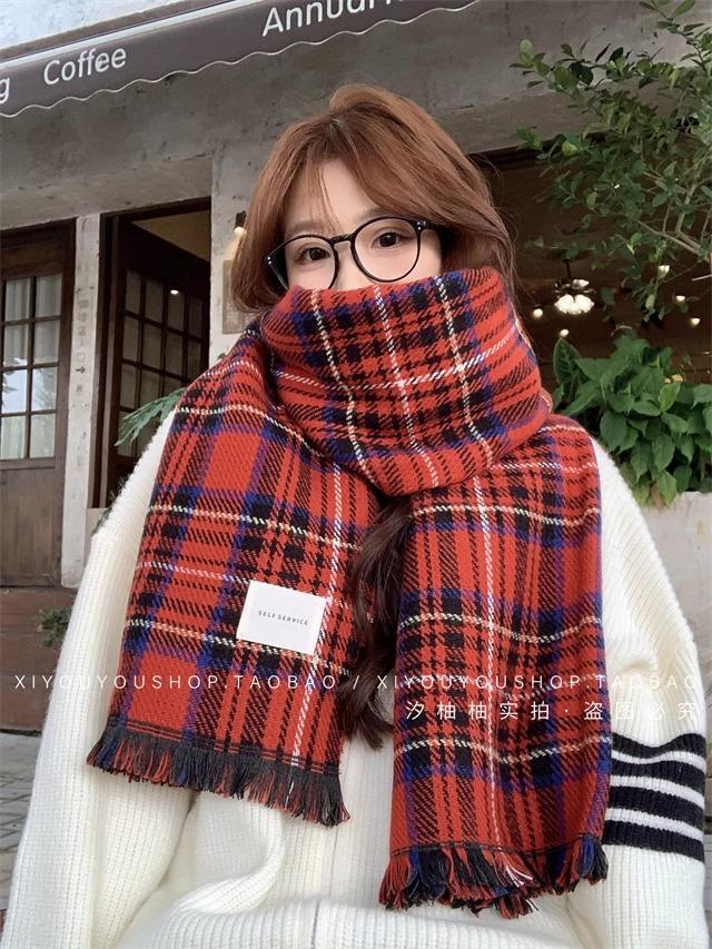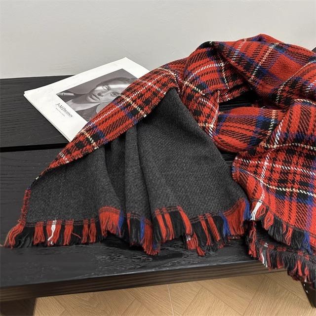 Ambiente Festivo Bufanda Retro de Cuadros Rojos para Mujer Invierno Estilo Coreano Bufanda Combinable Cálida Chal para Pareja de Estudiantes Moderna