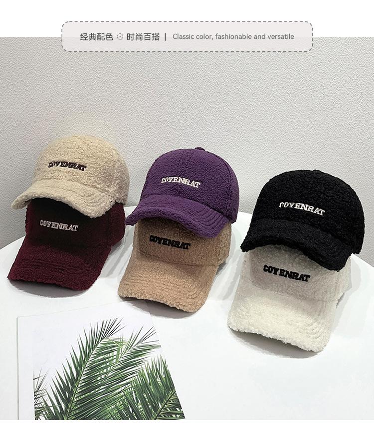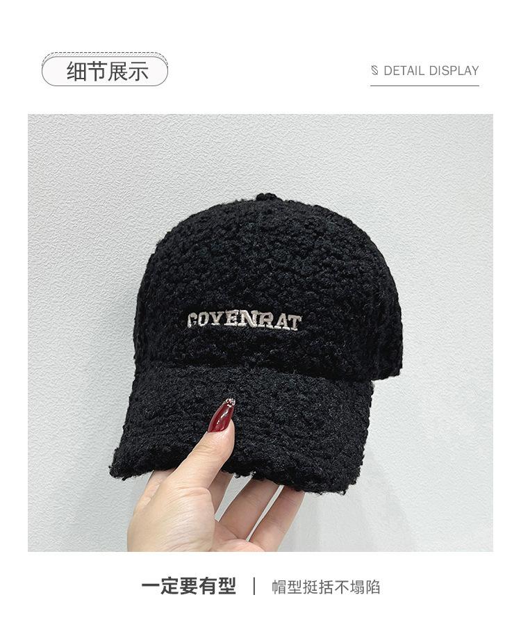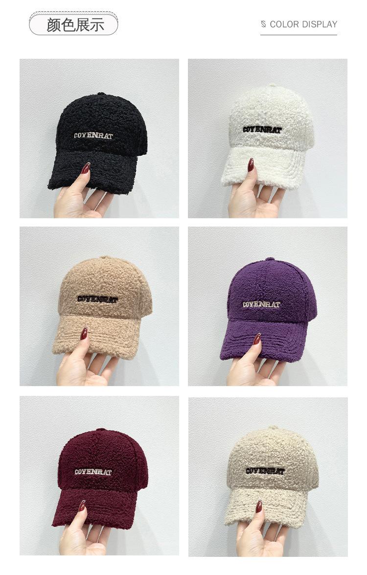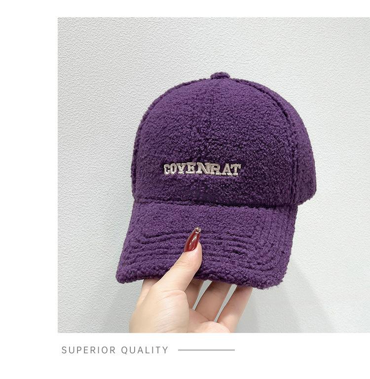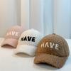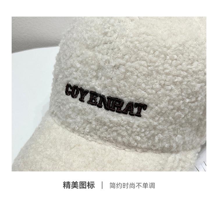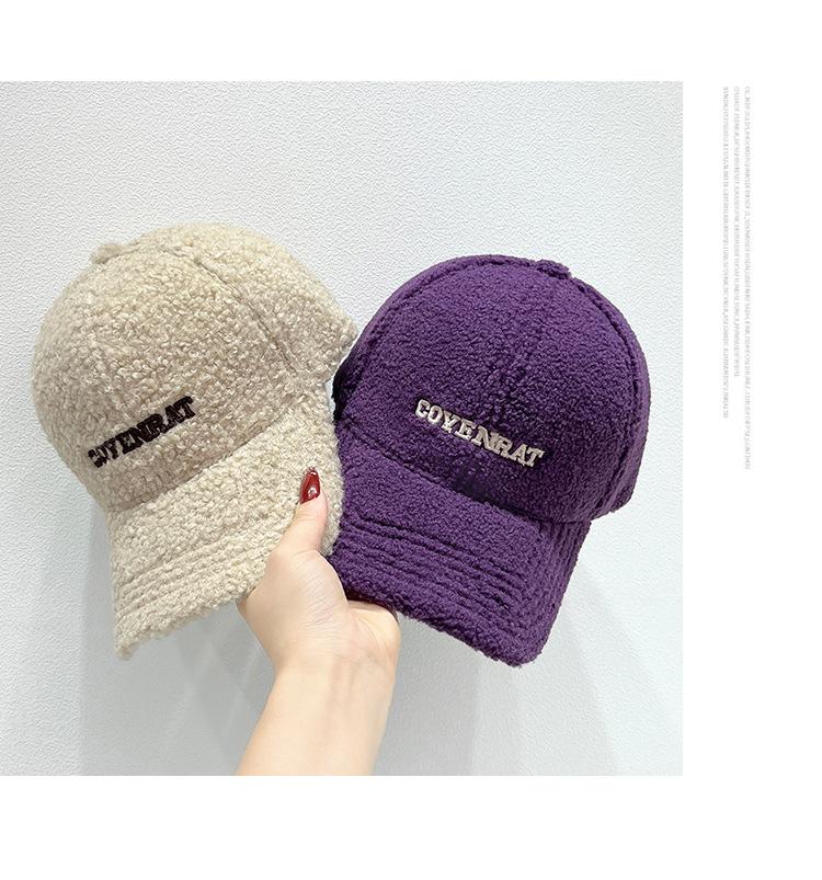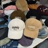 Gorra de béisbol coreana con letras bordadas de lana de cordero para mujer, otoño e invierno, cálida, con cabeza grande, llamativa y pequeña para hombre