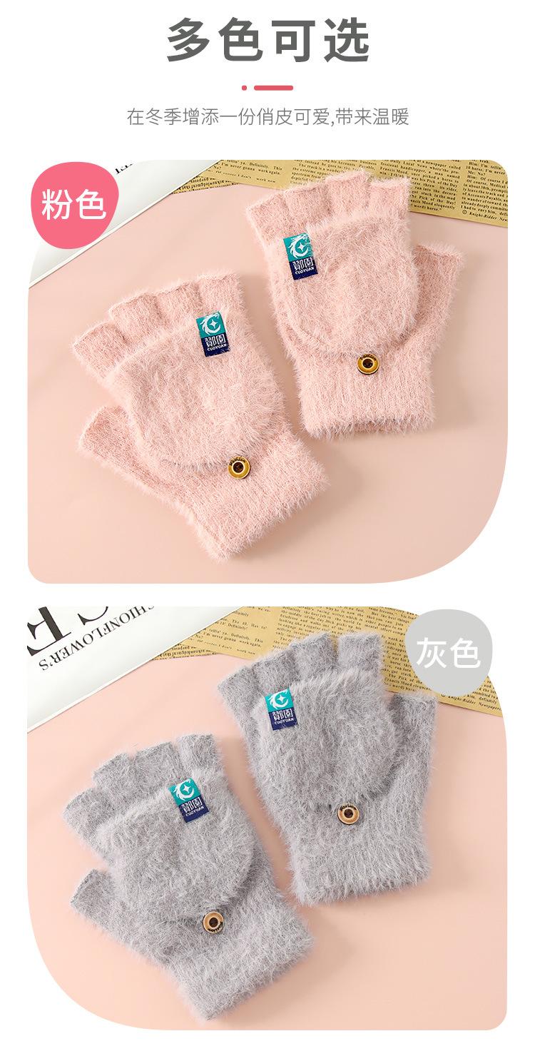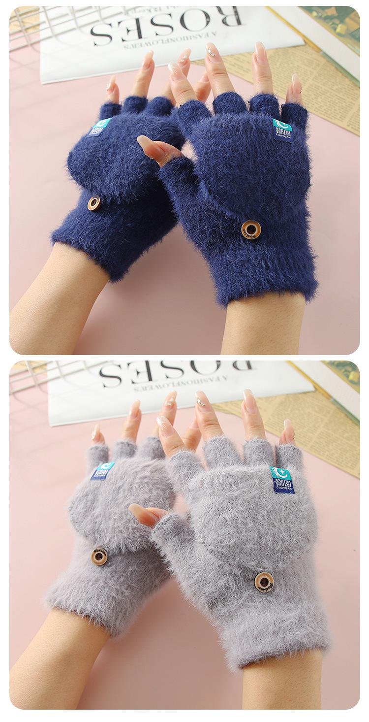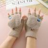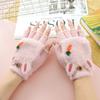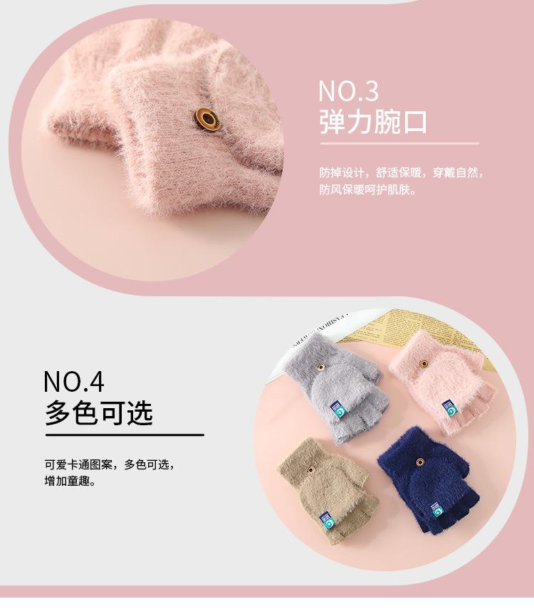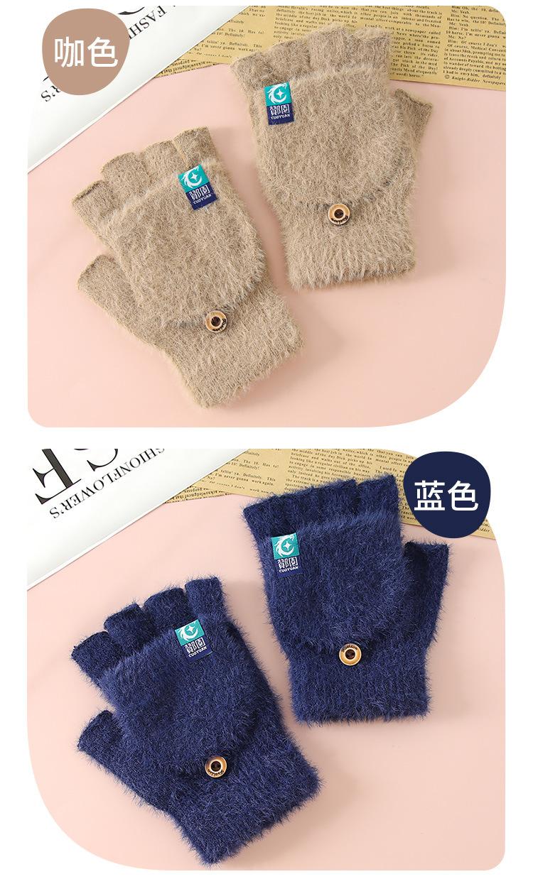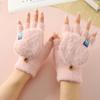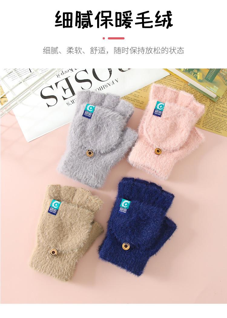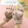 Guantes de punto para exteriores con dedos expuestos, gruesos y forrados de vellón cálidos con parte superior abatible para estudiantes y niños en otoño e invierno.