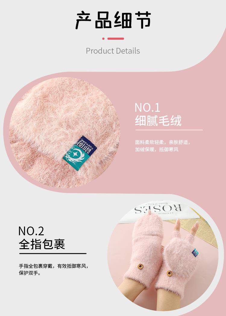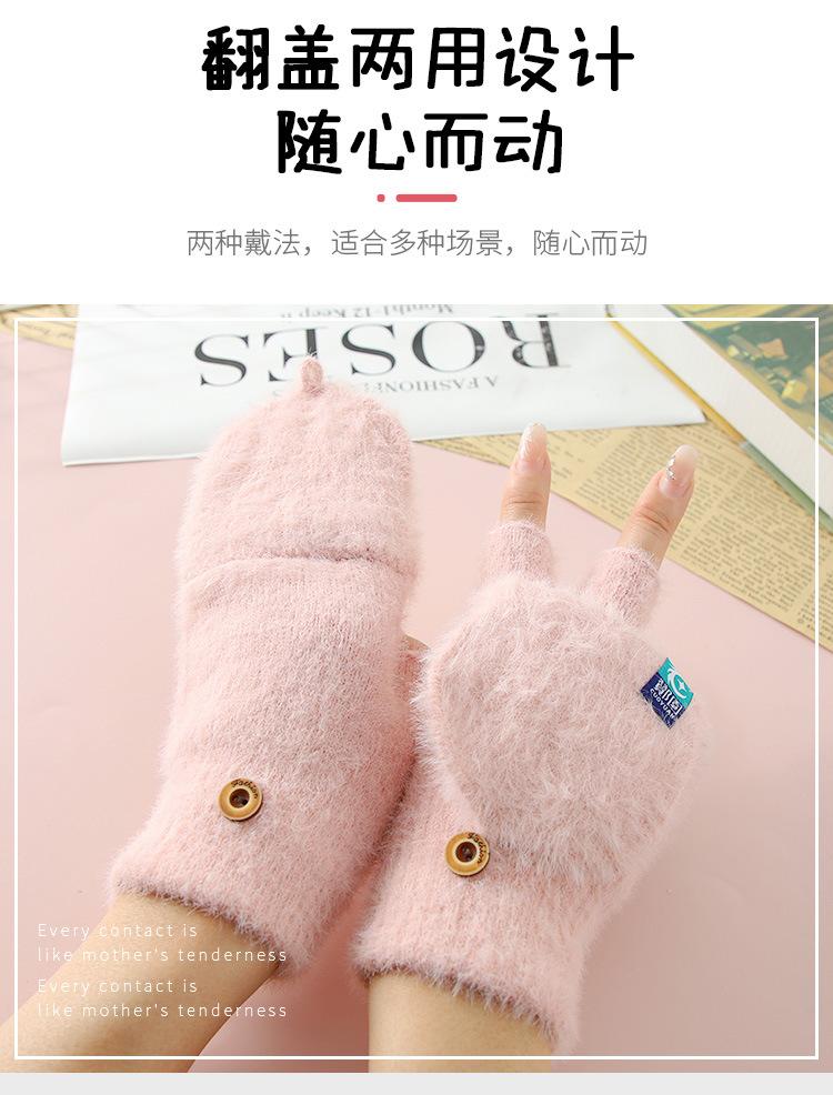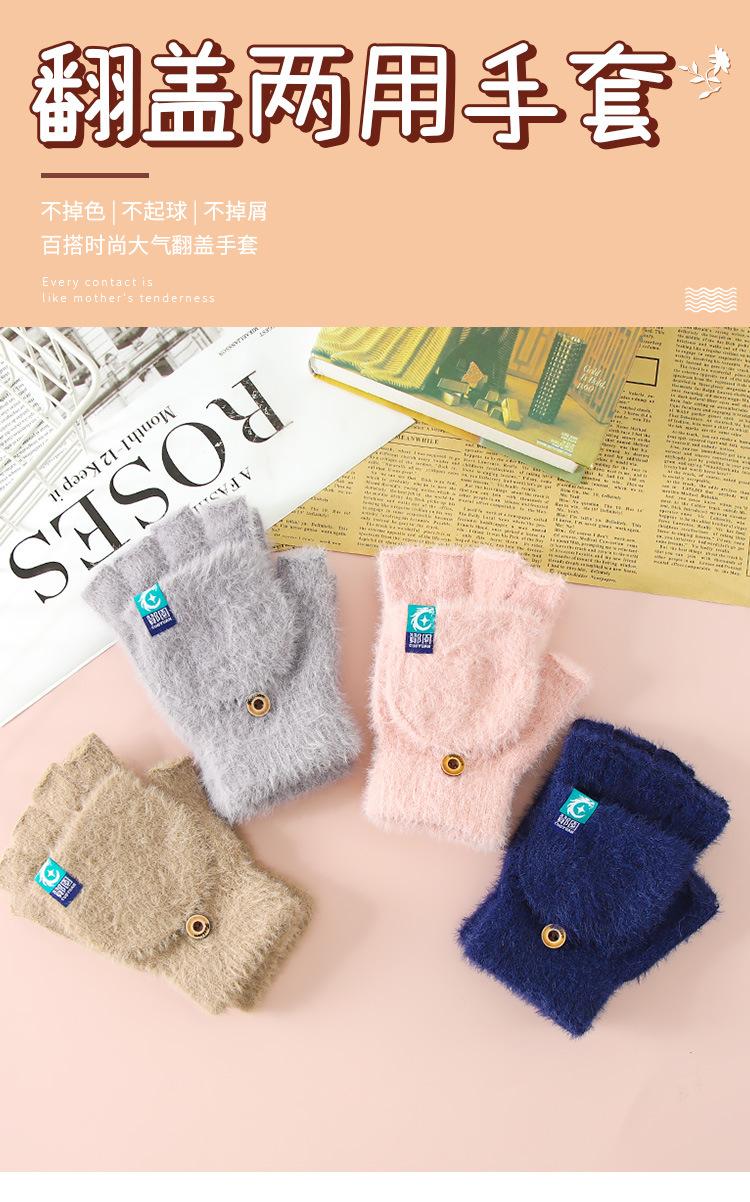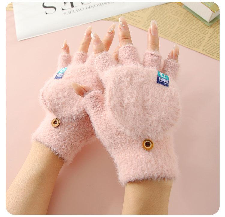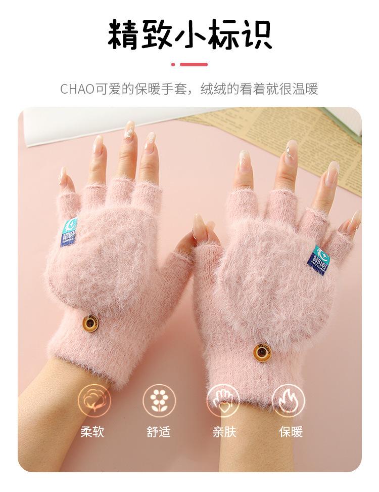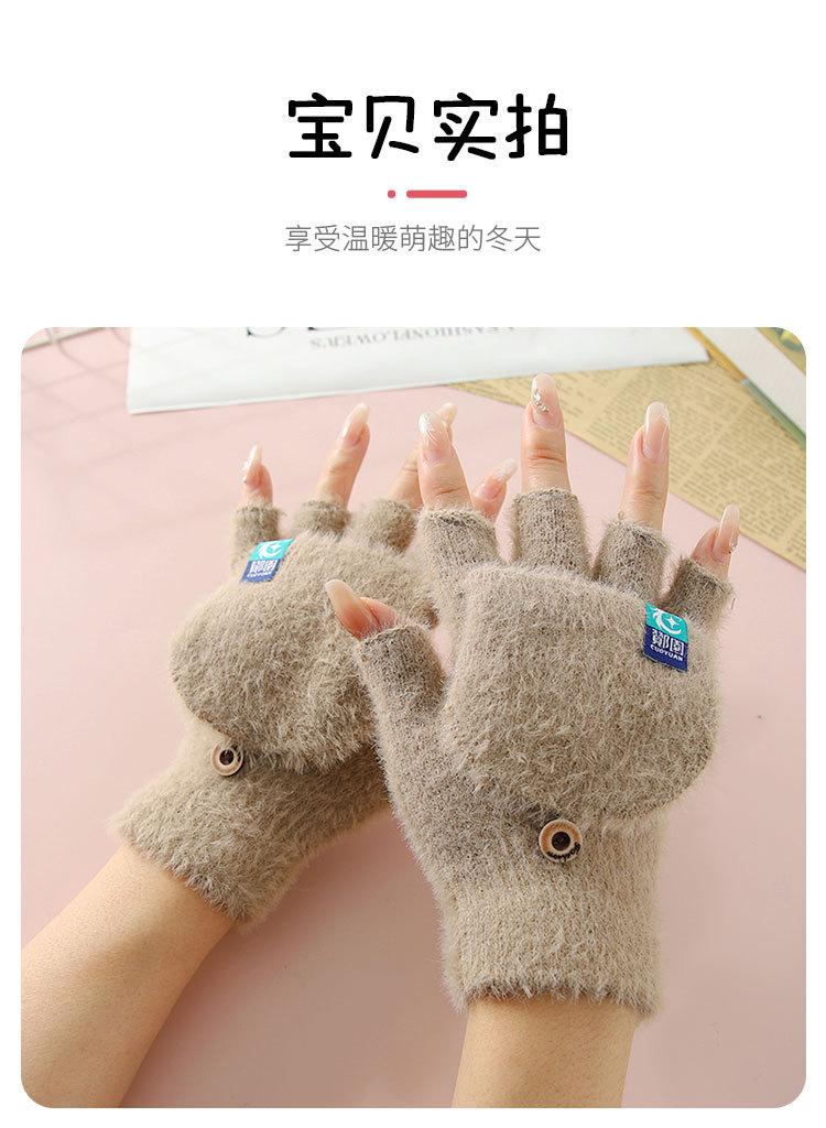Guantes de punto para exteriores con dedos expuestos, gruesos y forrados de vellón cálidos con parte superior abatible para estudiantes y niños en otoño e invierno.