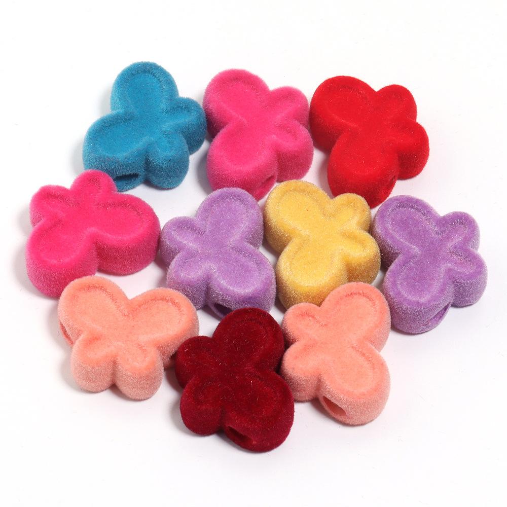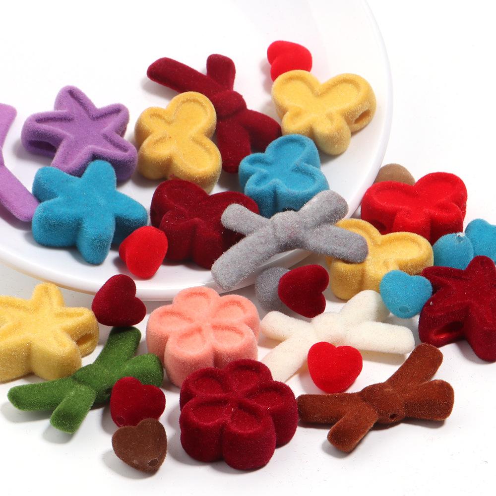 Cuentas acrílicas flocadas de otoño e invierno con forma de mariposa y cruz, con forma de lazo, cuentas sueltas de amor, cuerda para la cabeza, cadena para teléfono móvil, material de joyería