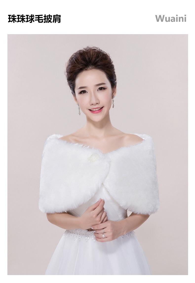 Chal de piel nupcial europeo y americano, capa grande de felpa con bola de perlas, otoño e invierno cálido, capa de piel para vestido de novia cheongsam