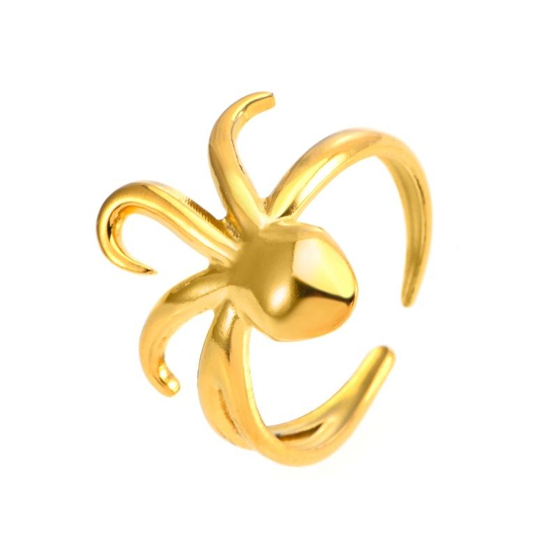 Anillo de Acero Inoxidable de Pulpo Serie Marina Estilo Ins Europeo y Americano Personalizado Vacaciones en la Costa Apertura Acero Titanio Anillo de Oro de 18K