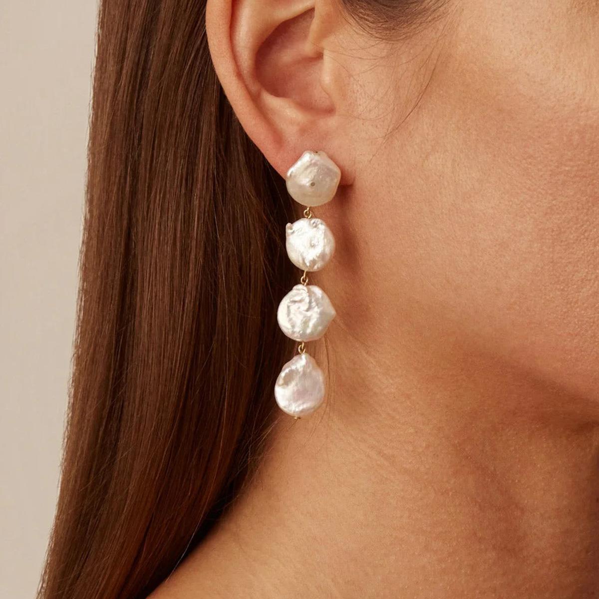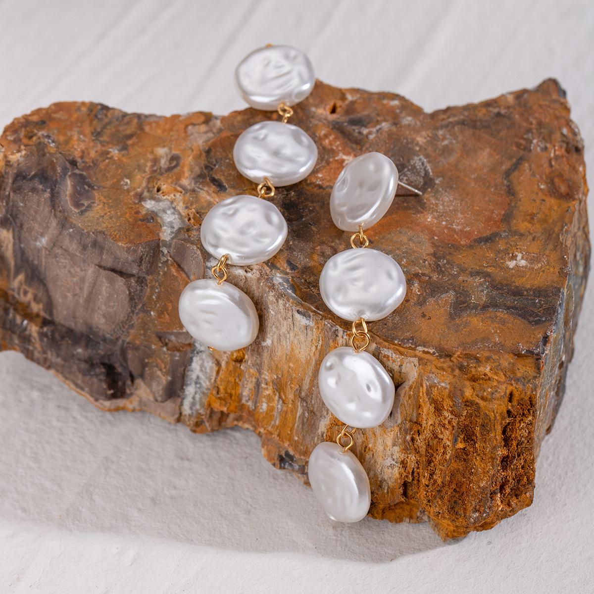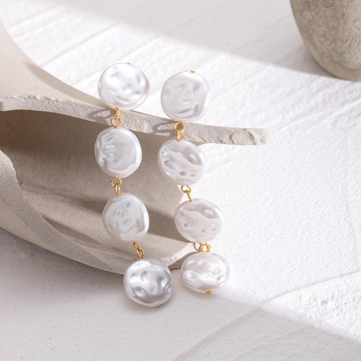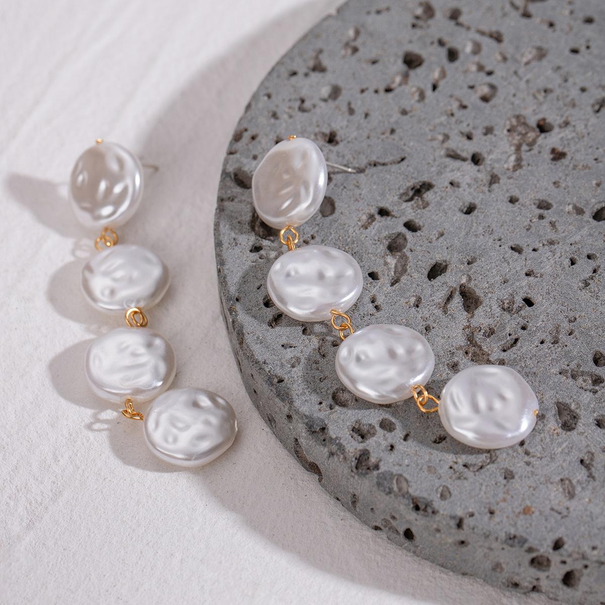 Pendientes Colgantes de Perlas con Diseño Silencioso de Sentido Botón de Perla de Alto Grado Retro Lujo Ligero Colgantes para la Oreja Joyería Europea y Americana Transfronteriza
