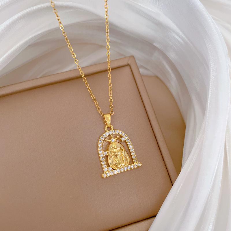 [Acero titanio] Collar de diamantes de imitación para mujer, elegante y lujoso, con cadena de clavícula que combina con todo, de acero titanio.