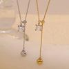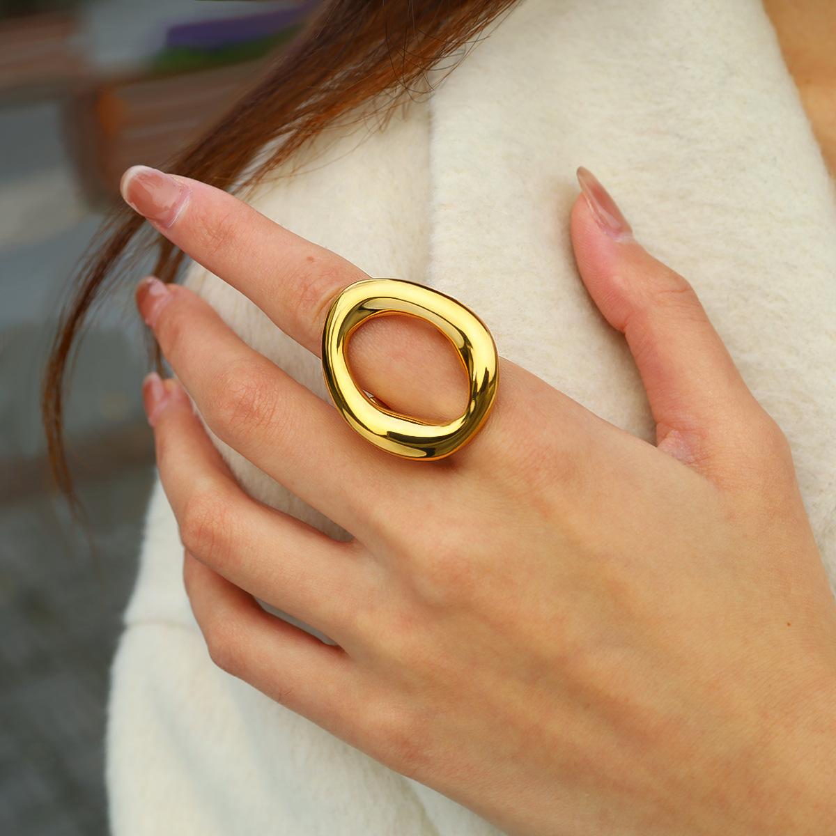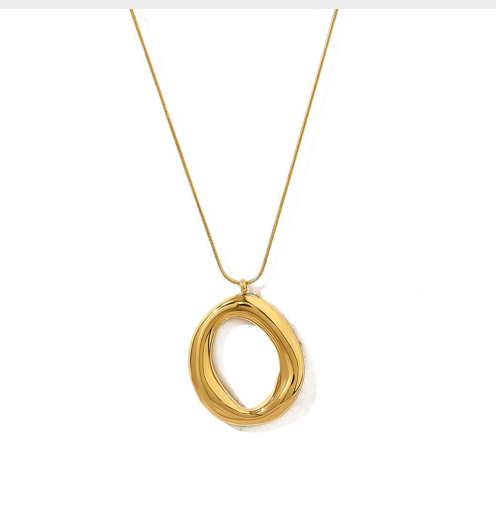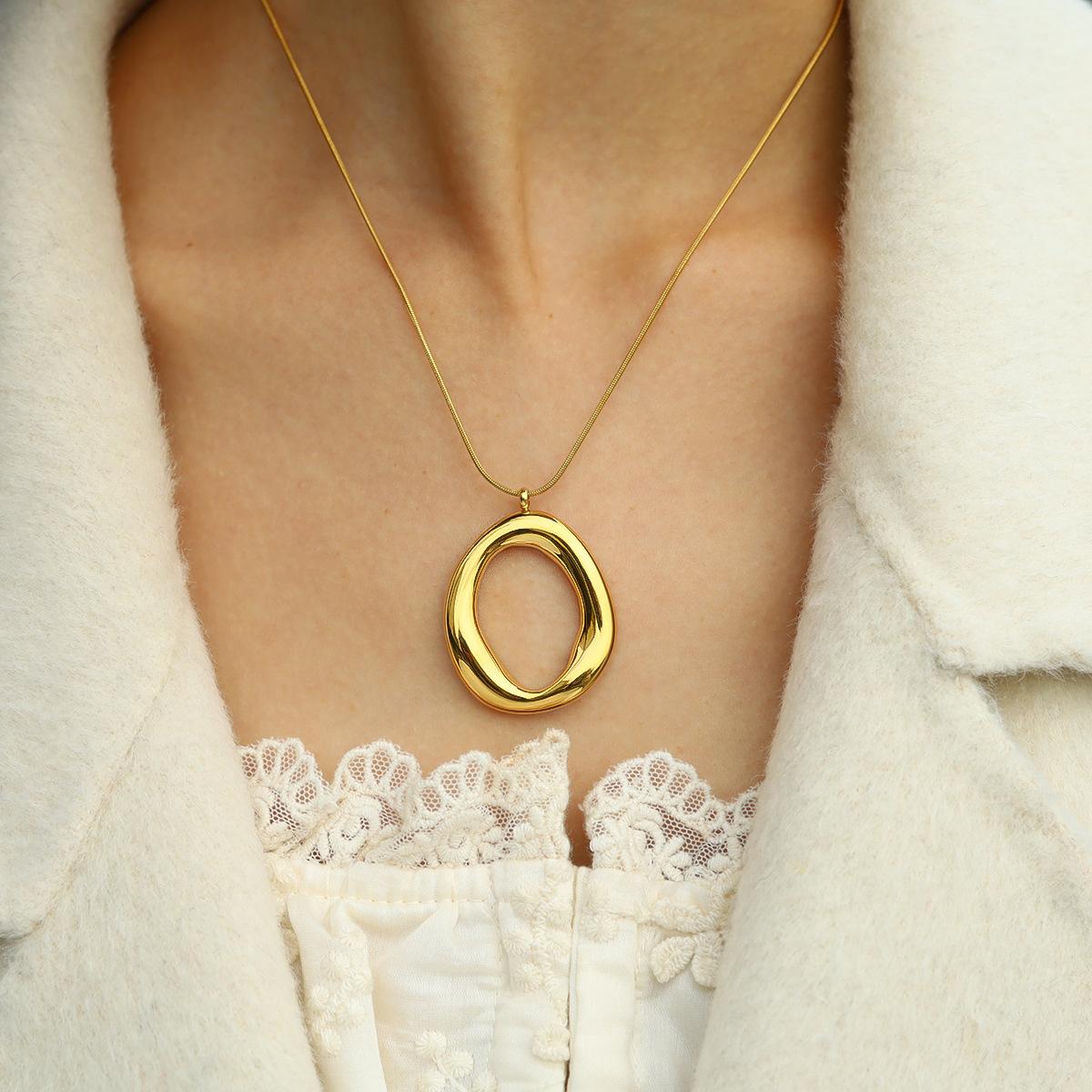 Collar con colgante geométrico de temperamento de nicho de moda europea y americana de acero inoxidable chapado en oro de 18 quilates, simple y liso con anillo en O.