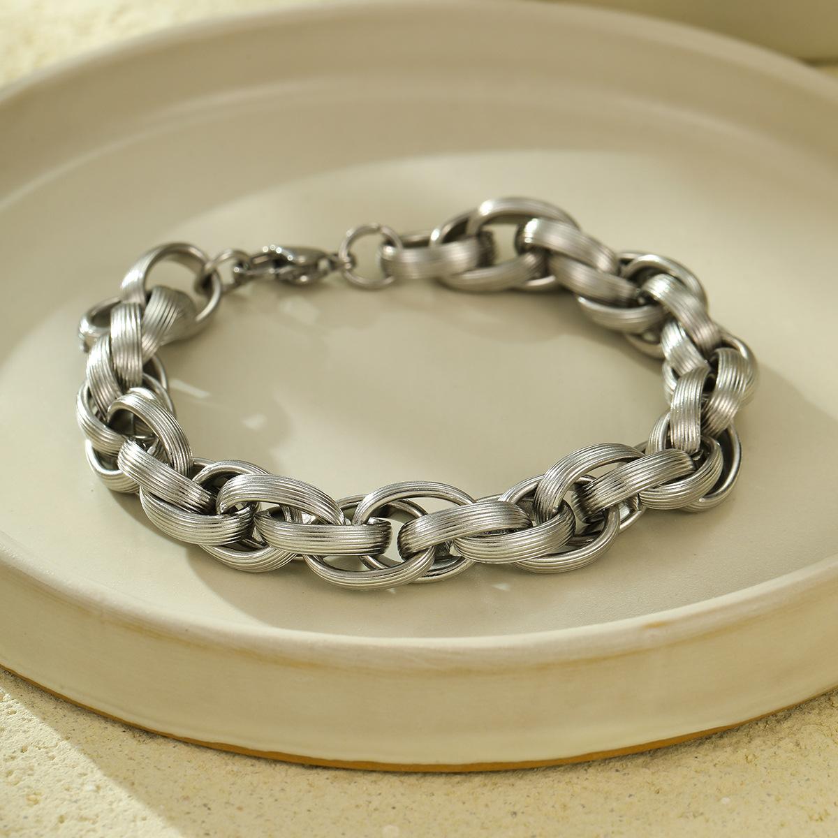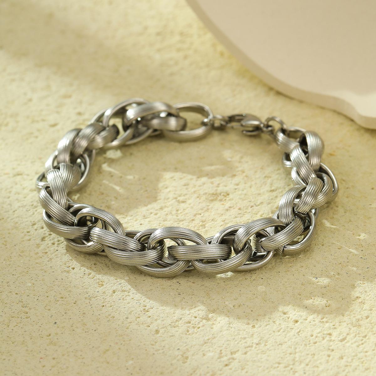 Moda Popular Nicho Transfronteriza Acero Inoxidable Trenzado Envuelto con Estilo Hip-Hop Frío Pulsera de Acero de Titanio para Hombres y Mujeres