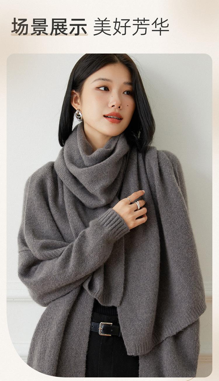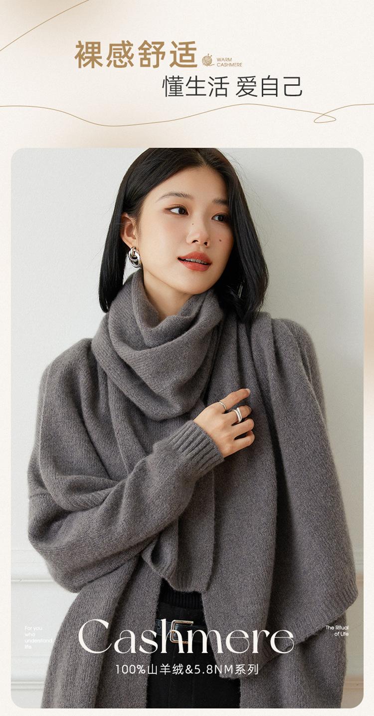 Bufanda de Punto para Mujer de Cachemira 100% Pura Nueva Casual Elegante para Ir al Trabajo Color Sólido Suave Cera Cómoda Moda Cálido Chal