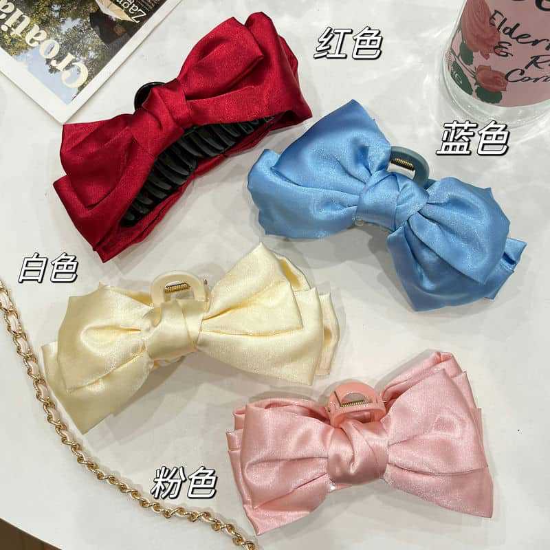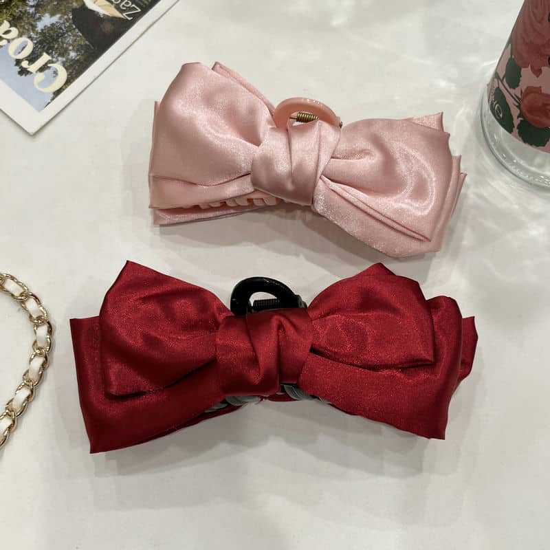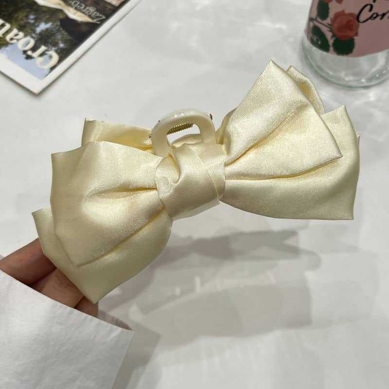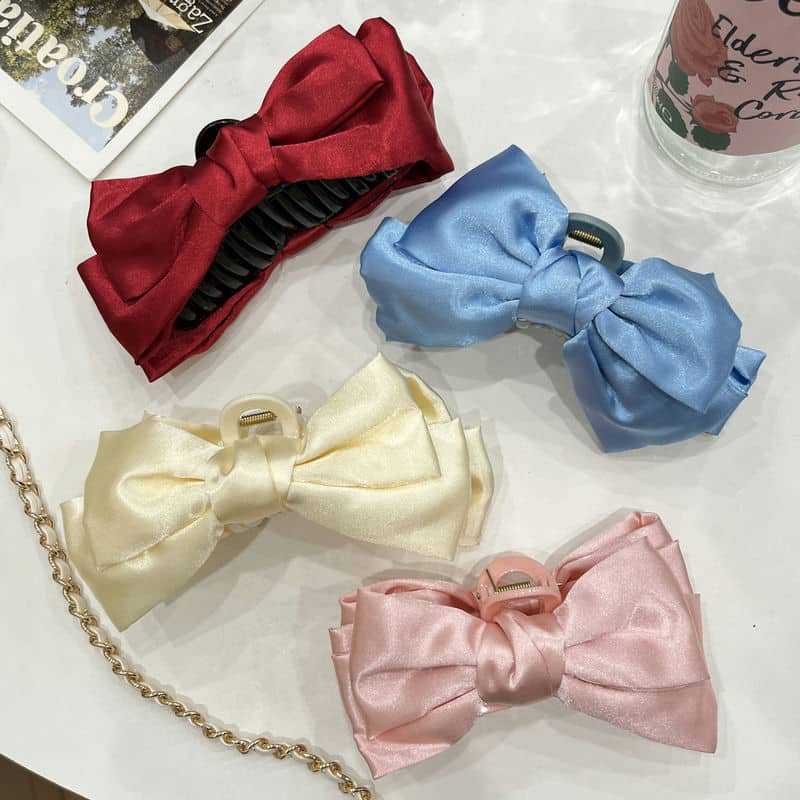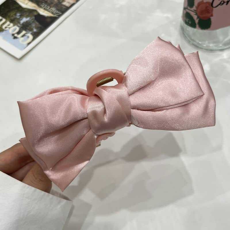 Pinza para el cabello de lazo de satén suave estilo francés para mujer, accesorio para el cabello con pinza de garra para la parte posterior de la cabeza