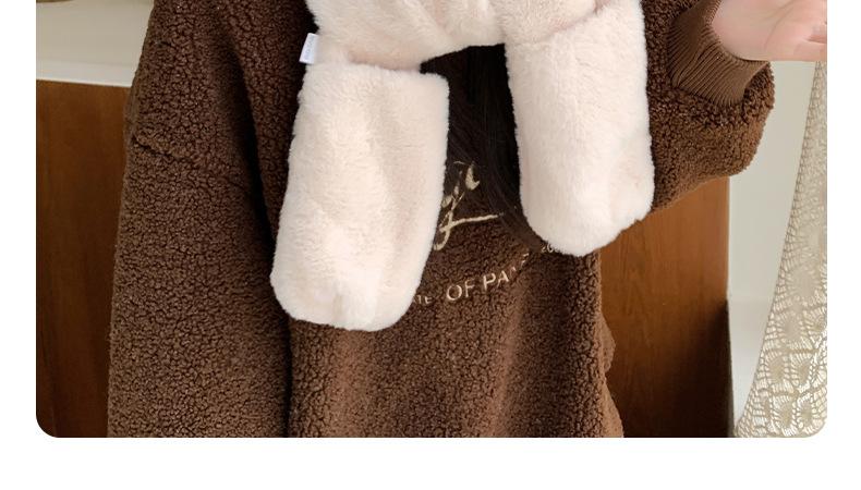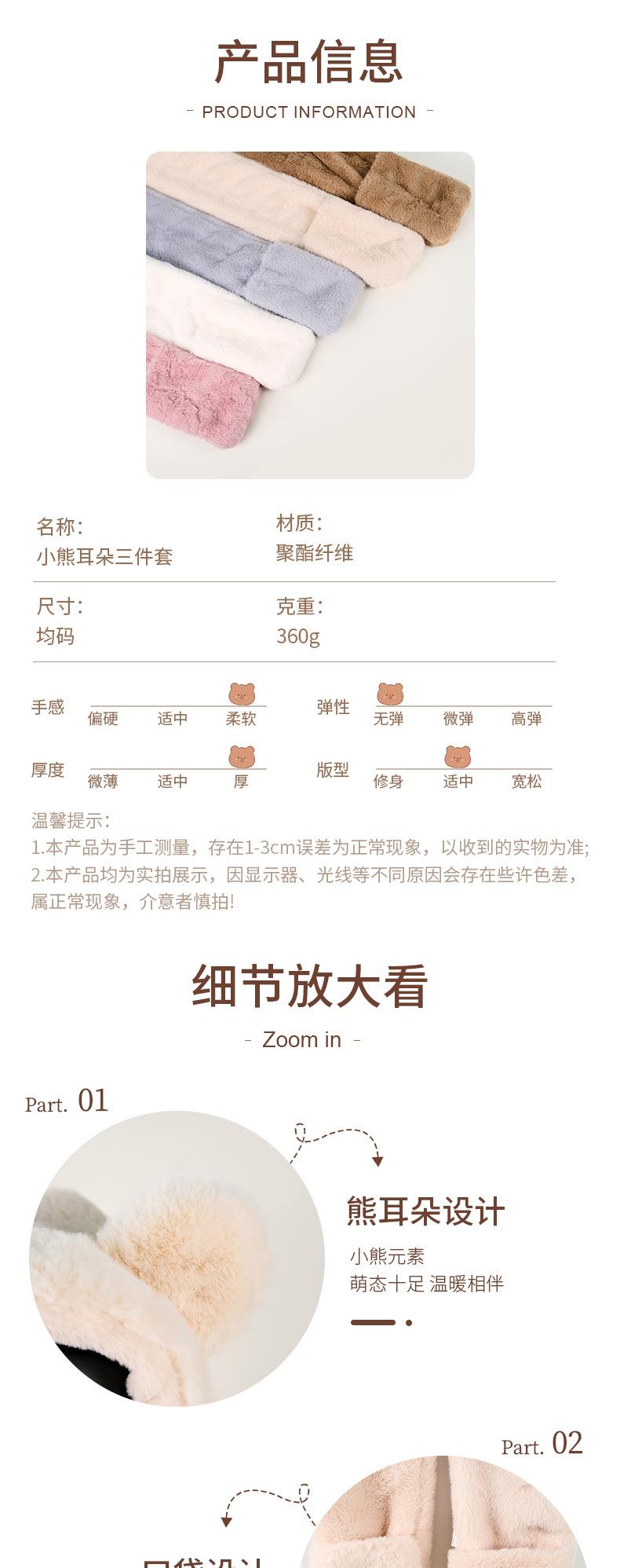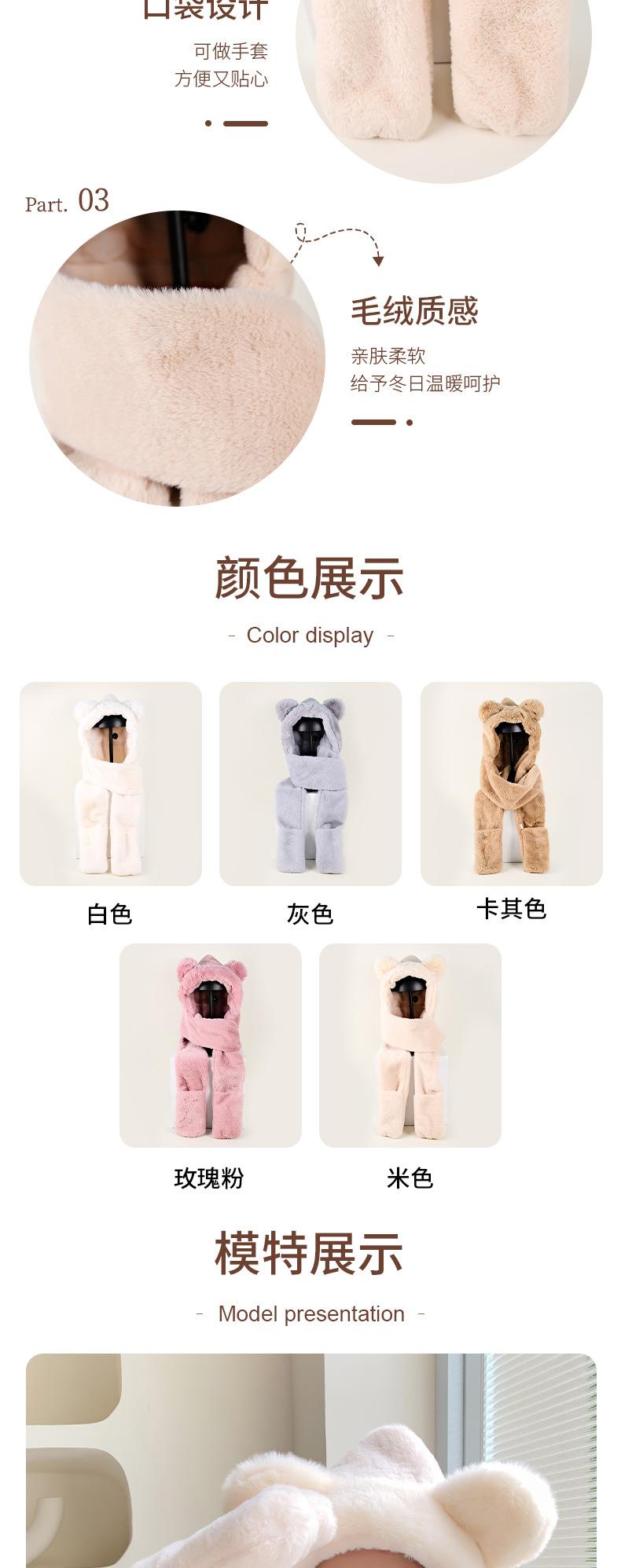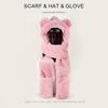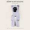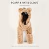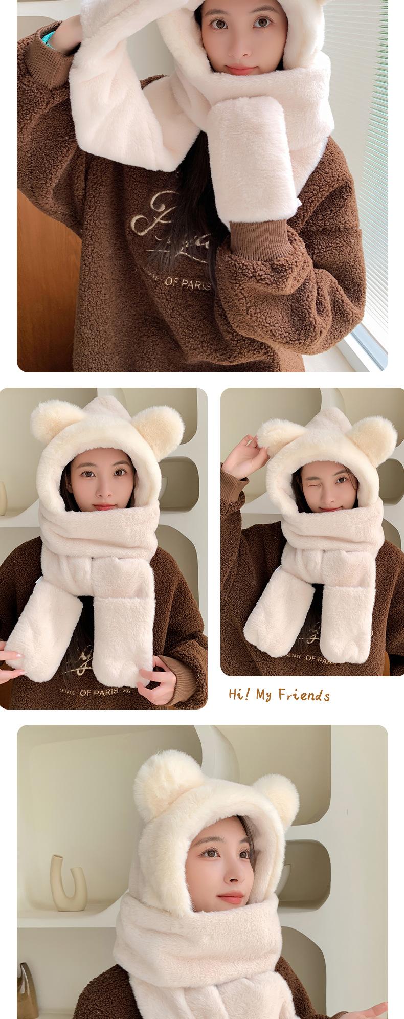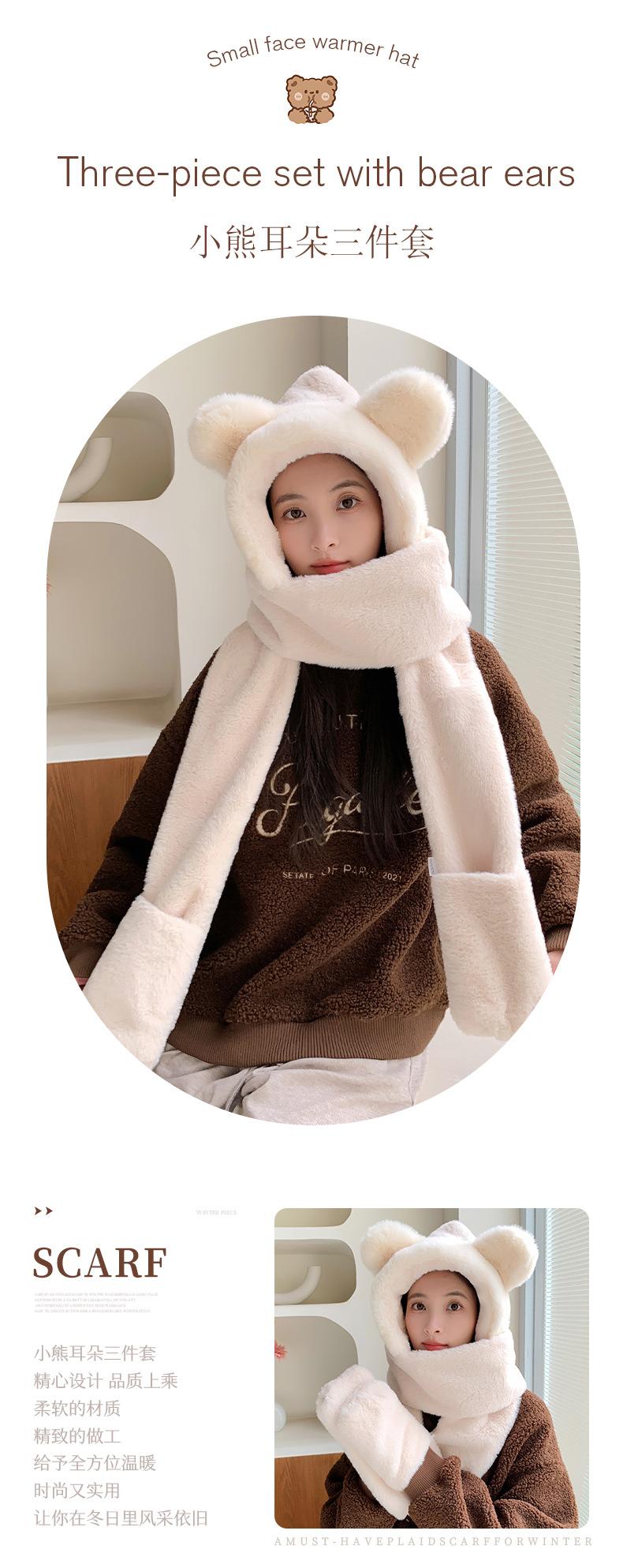 Conjunto de tres piezas de invierno con gorro, bufanda y guantes con orejas de oso para mujer, ideal para ciclismo al aire libre, resistente al frío y cálido.