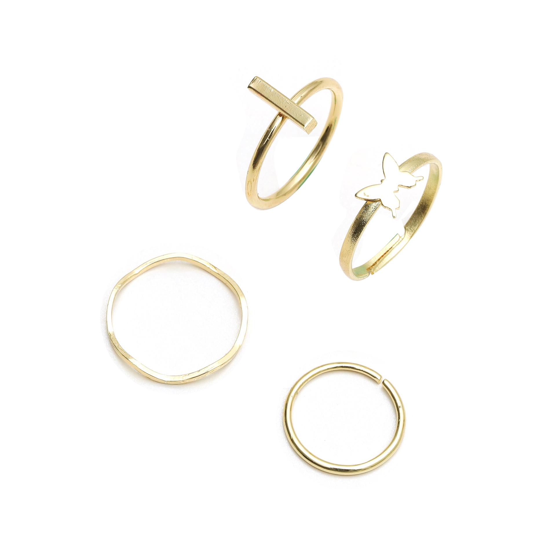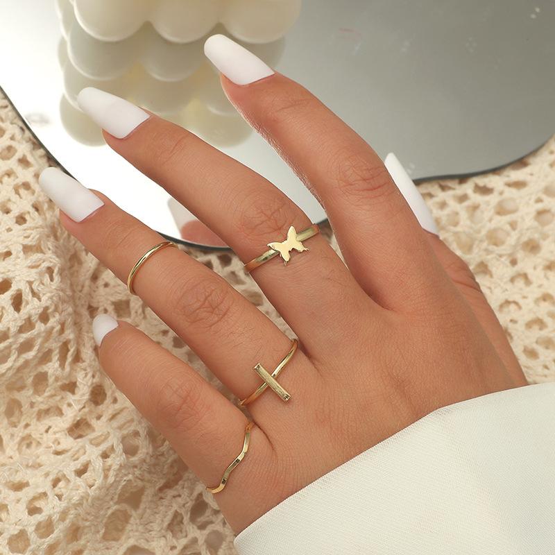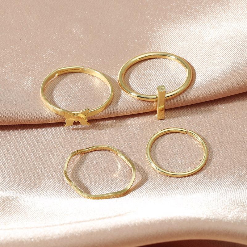 Anillo combinado de viento frío simple de personalidad de moda Anillo de 4 piezas geométrico de tendencia de temperamento nuevo japonés y coreano