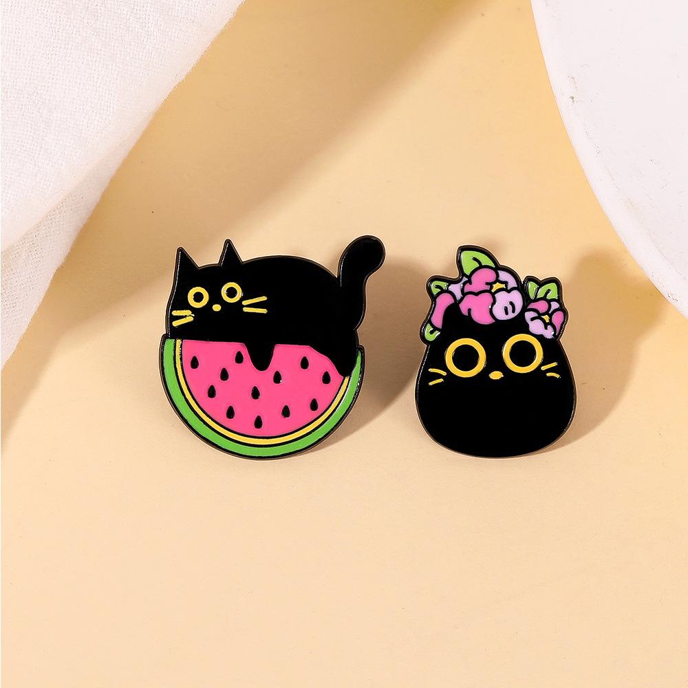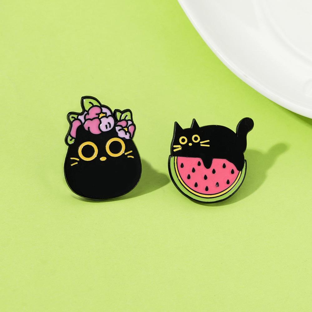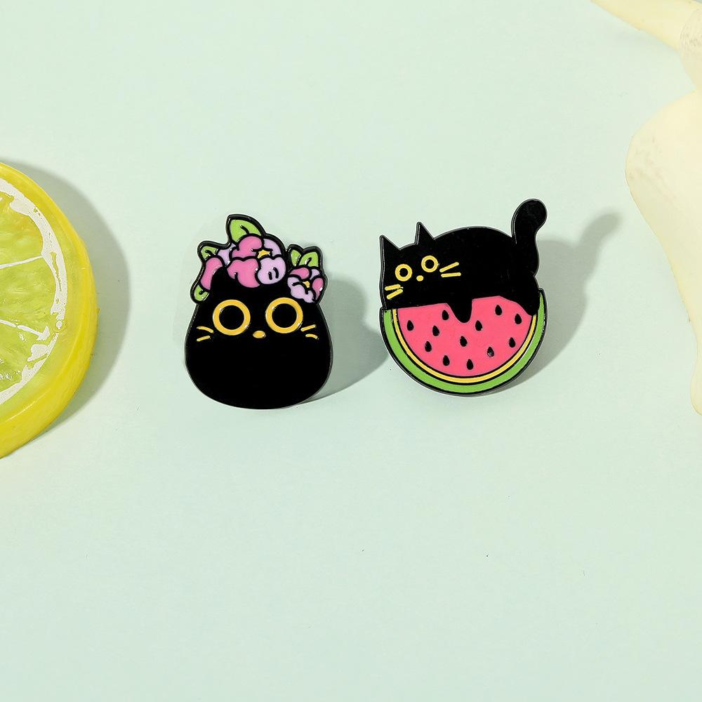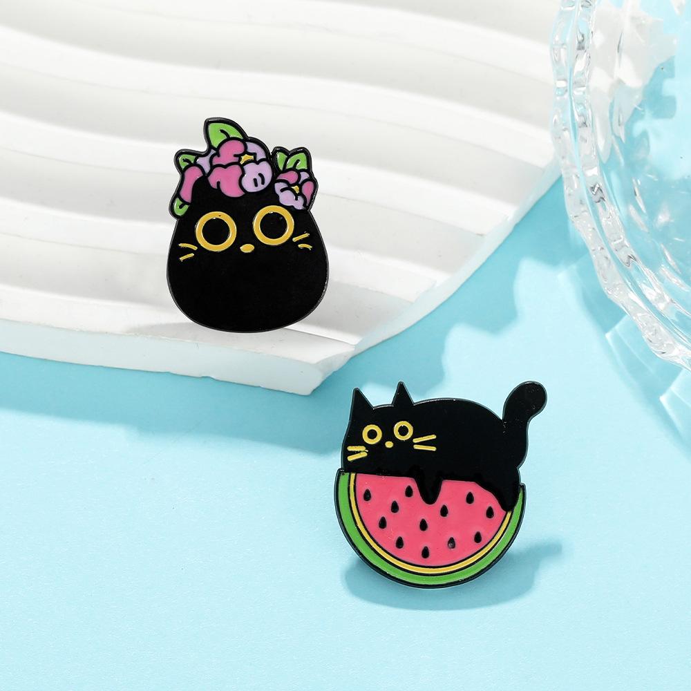 Broche de aleación con diseño de animales y frutas de dibujos animados creativos transfronterizos de Europa y Estados Unidos, insignia de metal de la serie Cute Cat, venta al por mayor