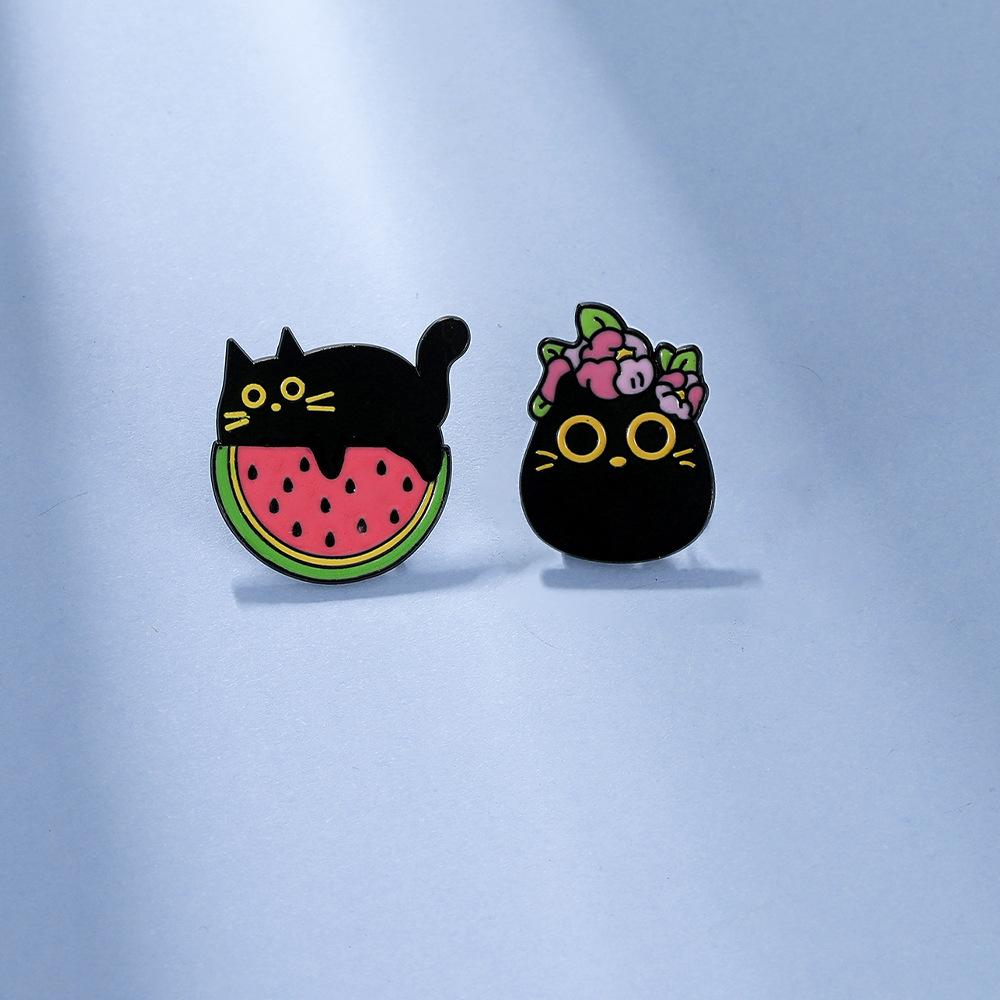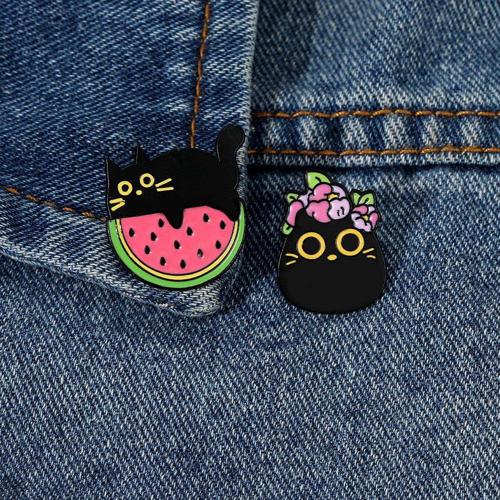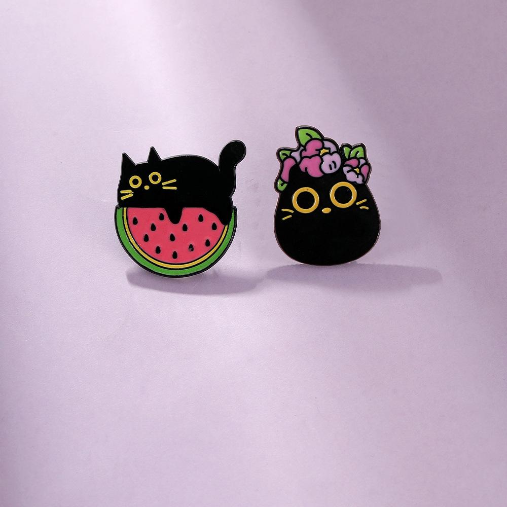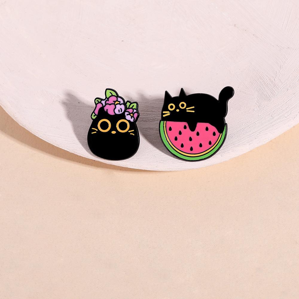 Broche de aleación con diseño de animales y frutas de dibujos animados creativos transfronterizos de Europa y Estados Unidos, insignia de metal de la serie Cute Cat, venta al por mayor
