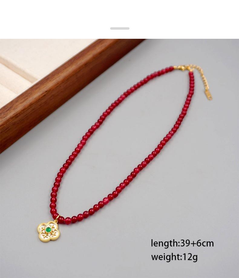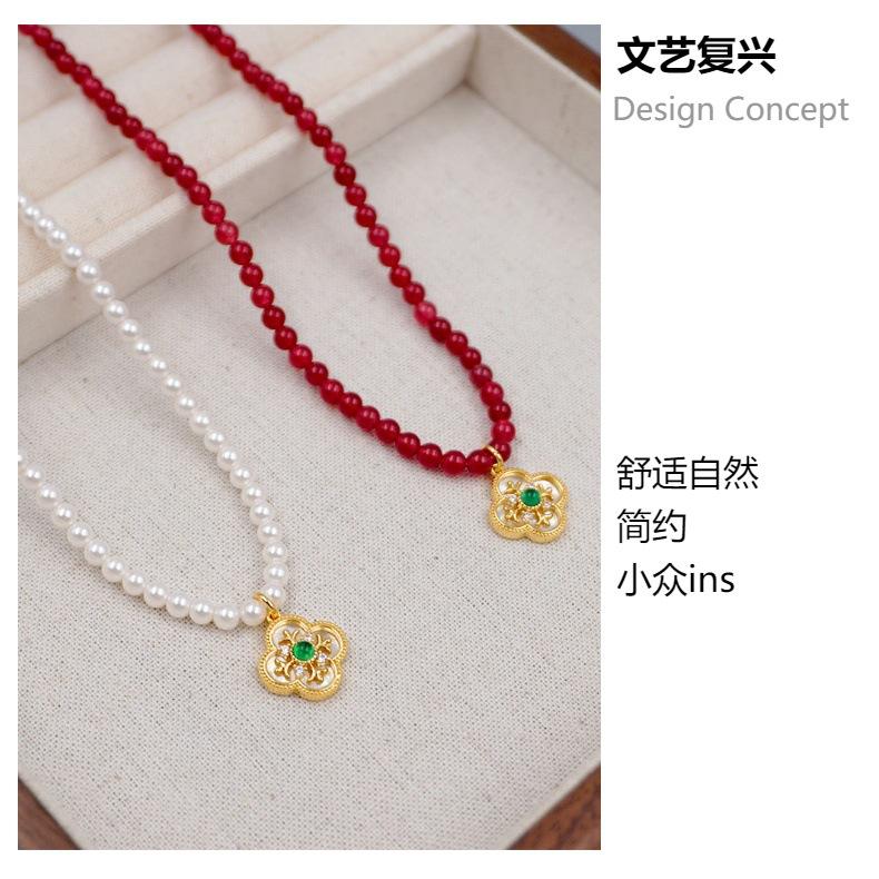 Material: perla de imitación + ágata roja + acero de titanio + cobre