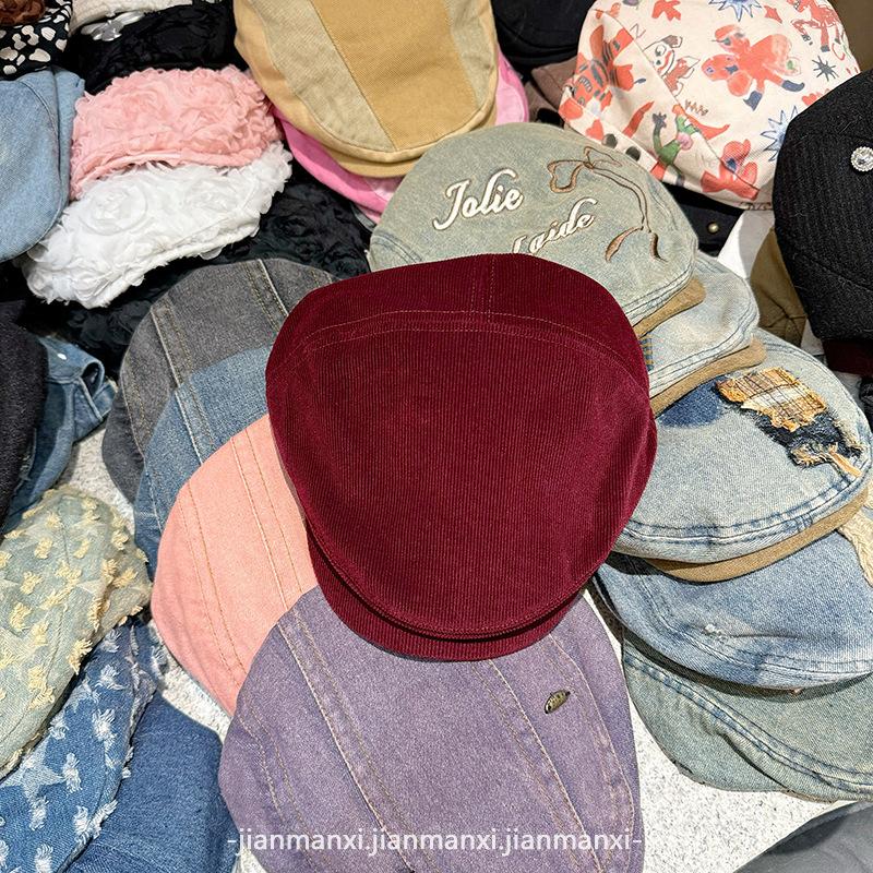 Sombrero Avanzado Vintage de Color Sólido Estilo Japonés Moda Femenina Gamuza Antidesgaste Boina Primavera y Otoño Rostro Mostrado Sombrero de Brote Pequeño