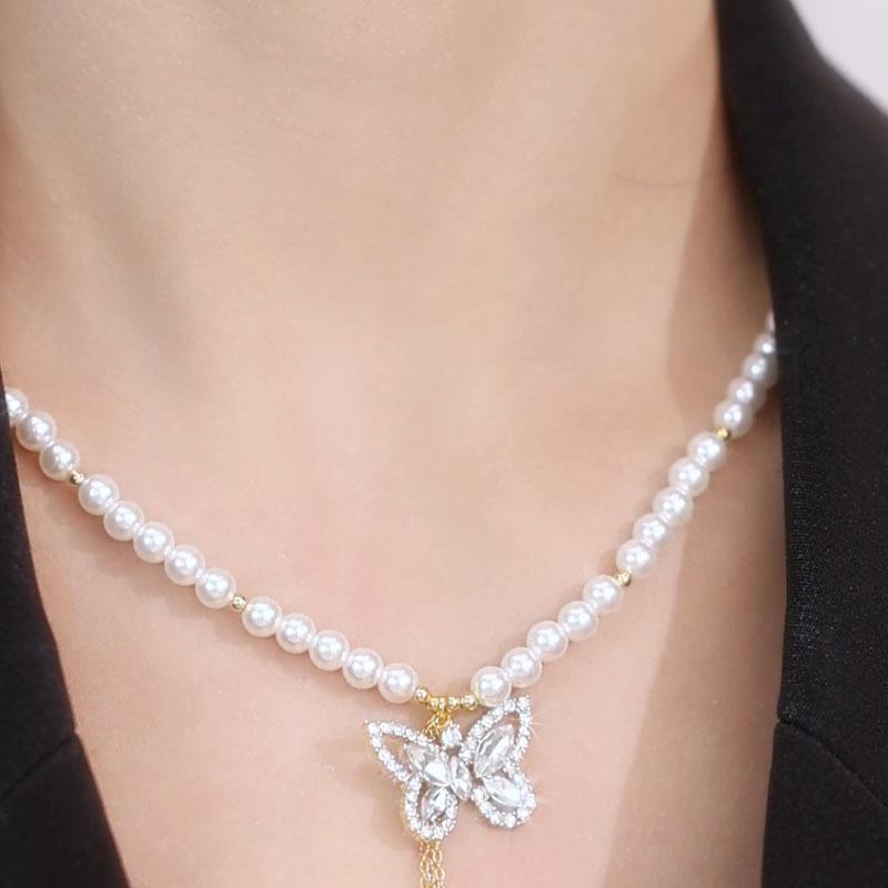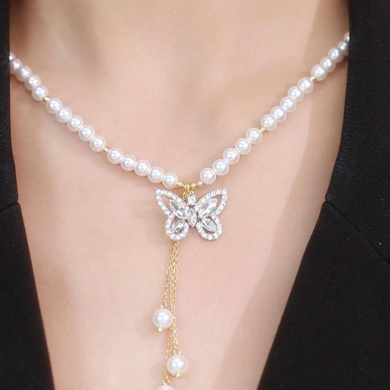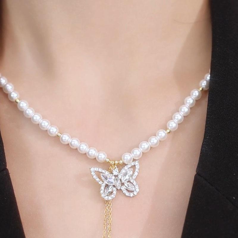 Collar de perlas para mujer 2024, nuevo collar de nicho de lujo con borlas y lazo, collar de clavícula de invierno.