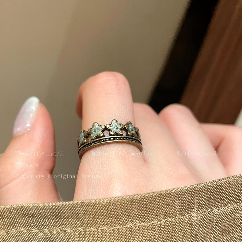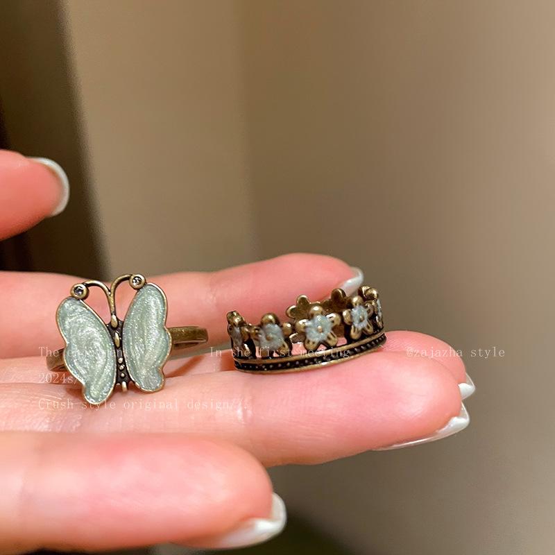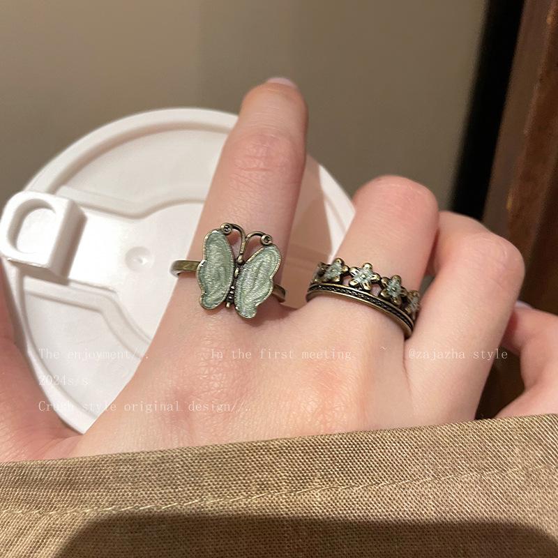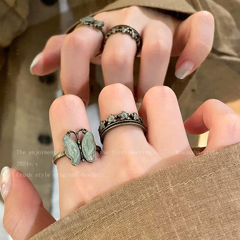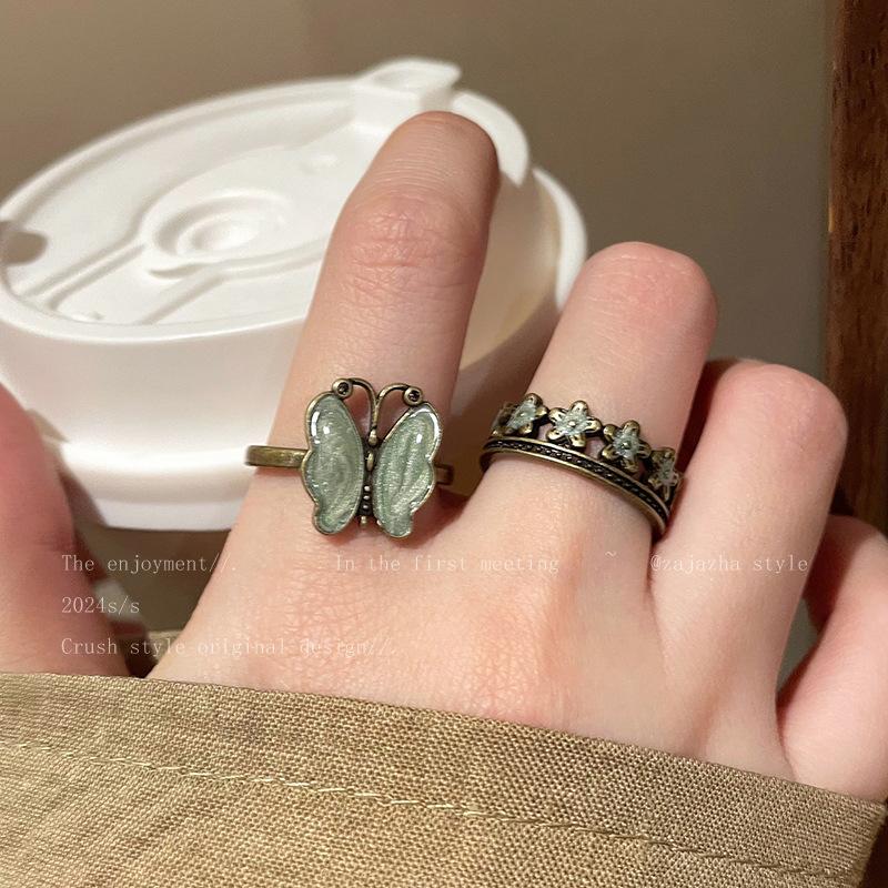 Anillo de mariposa de esmalte de alta calidad, de lujo, ligero y vintage de mediana edad, diseño único y distintivo, anillo retro desgastado.