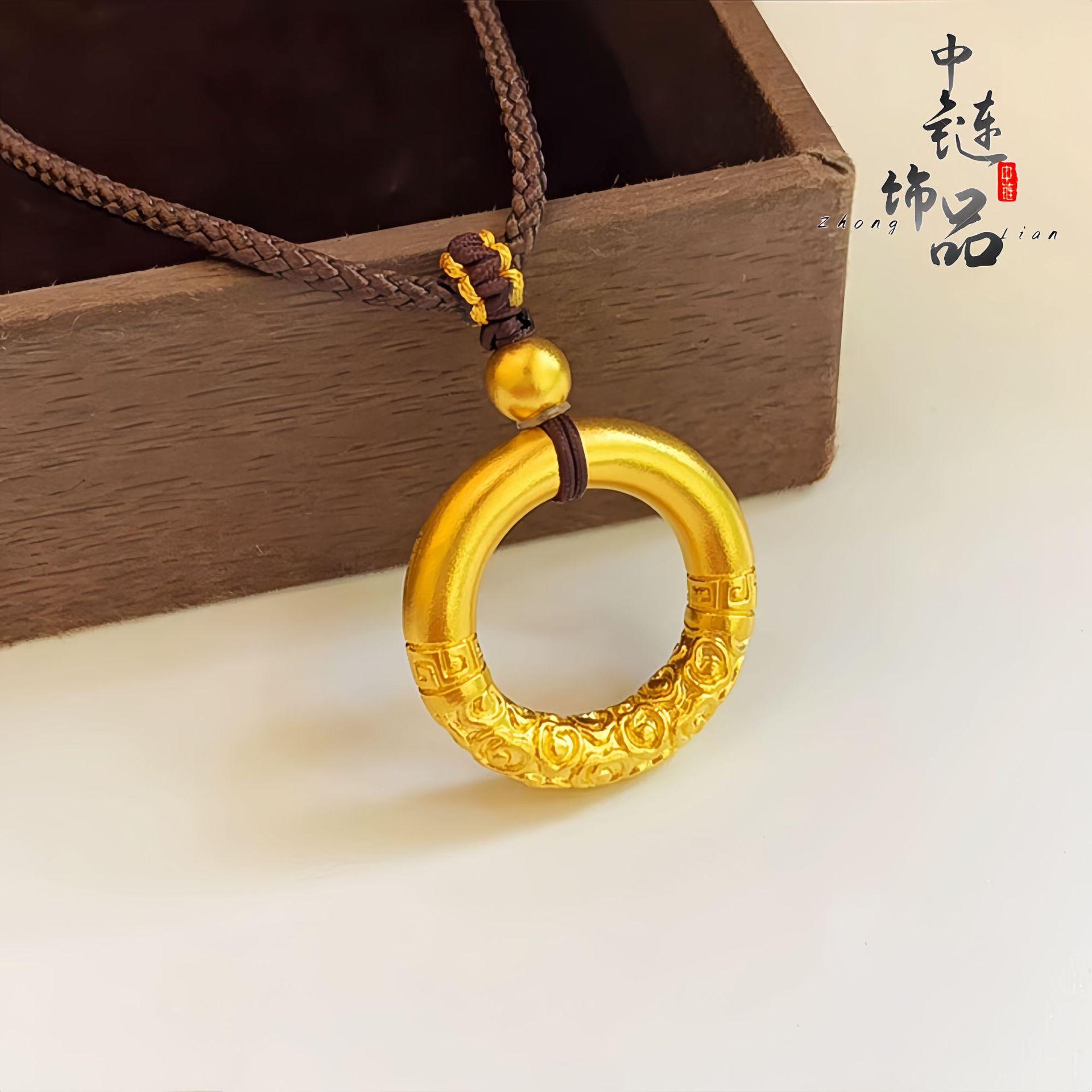 Colgante de aro tejido de oro Xiangyun Ruyi de arena fina con método antiguo, joyería de oro y cobre, hebilla segura de oro de imitación
