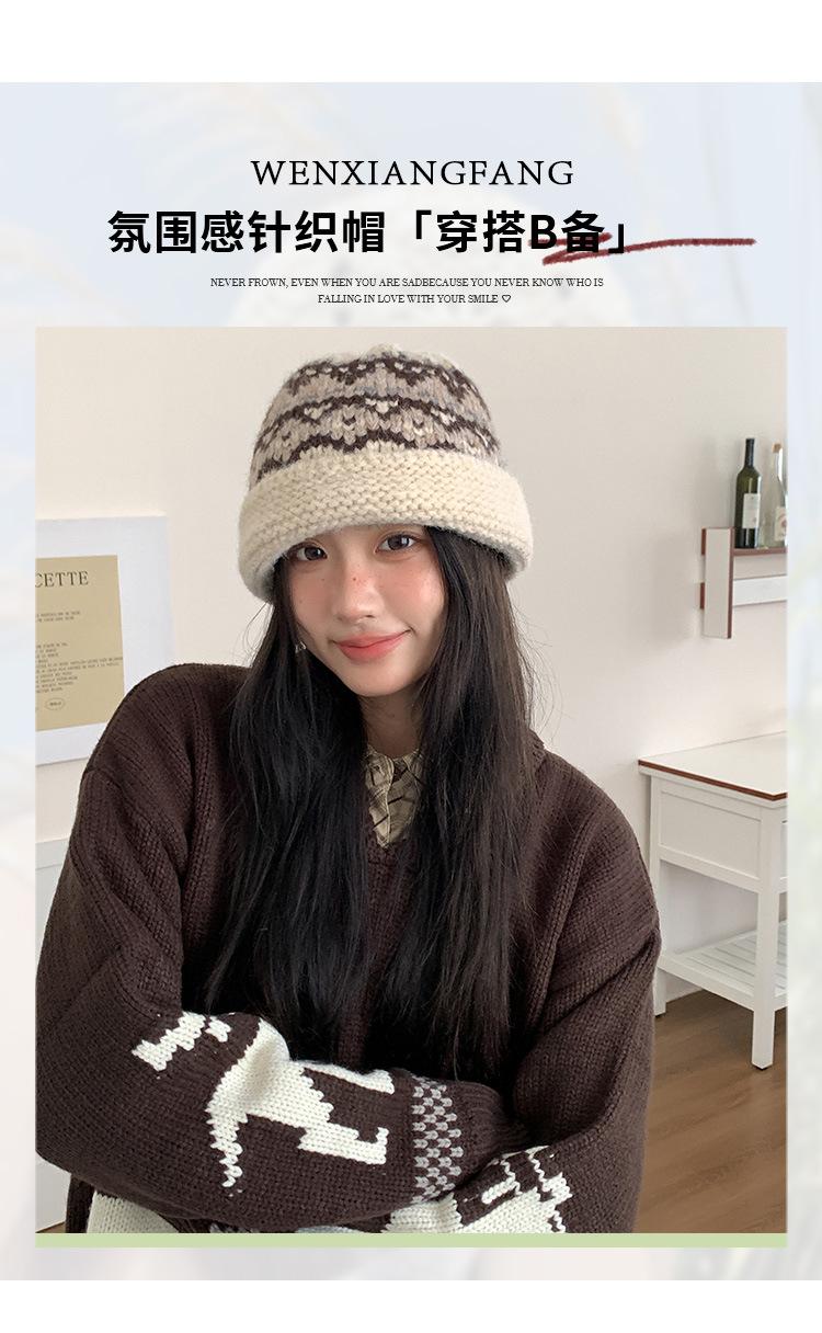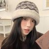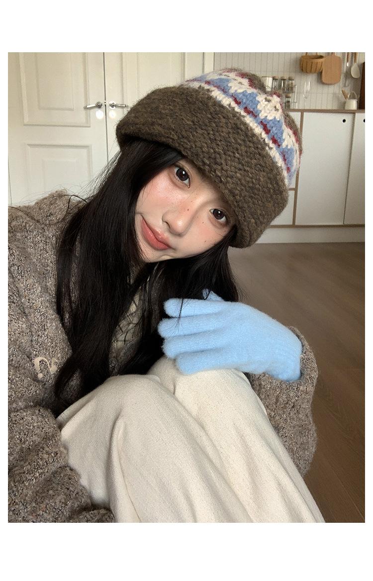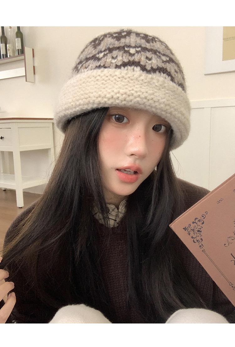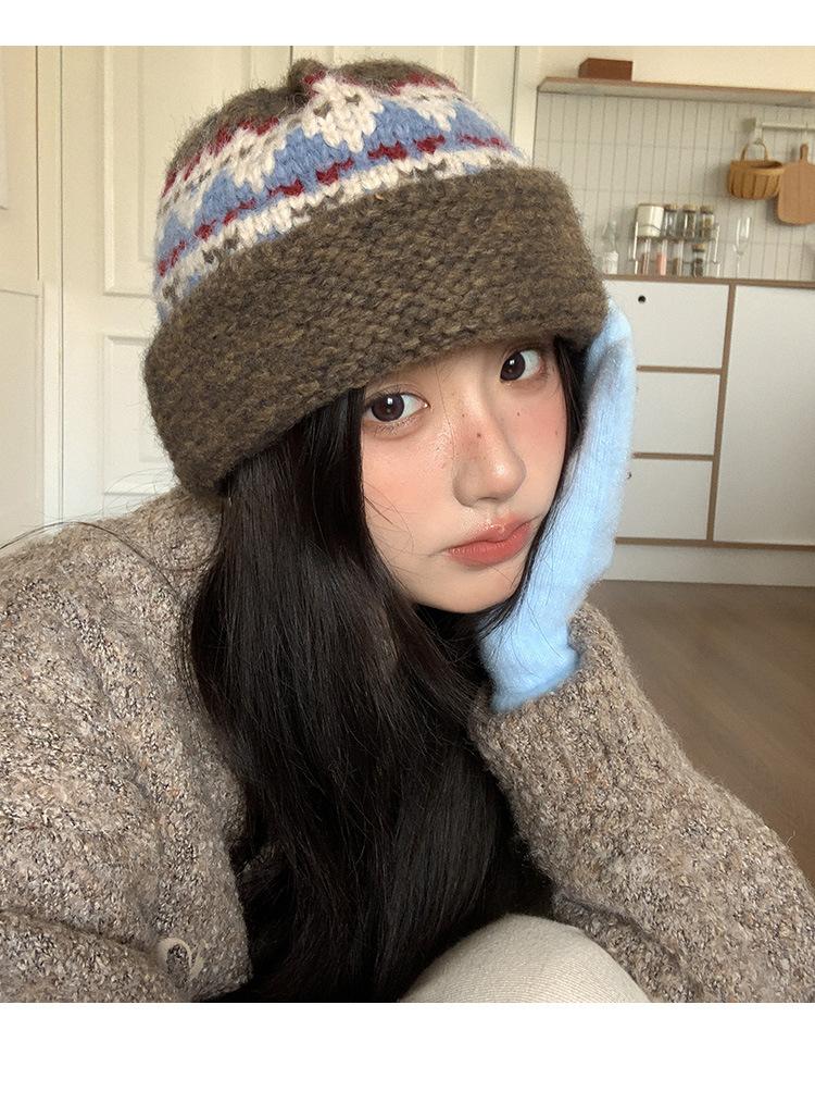 Sombrero de Lana Tejido Estilo Fairisland para Mujer Otoño e Invierno Vintage Grueso Cálido Protección para las Orejas Sombrero para la Cara Pequeño Sombrero Baotou Moda