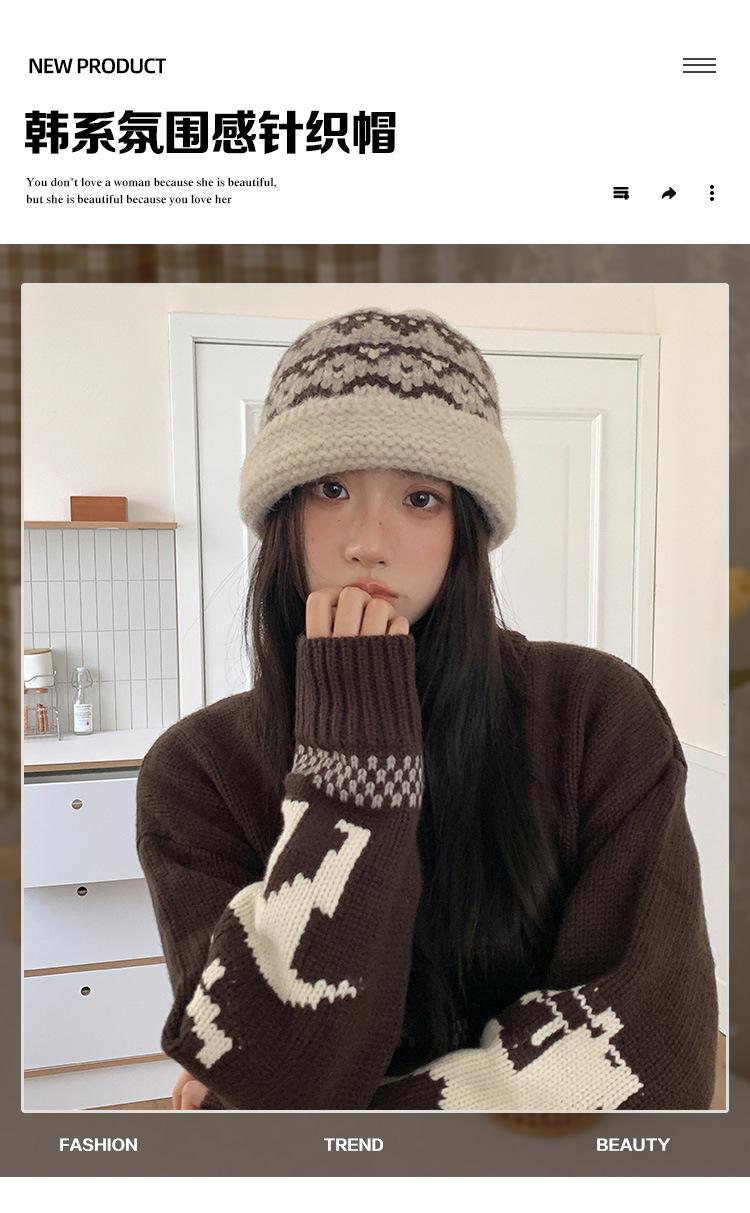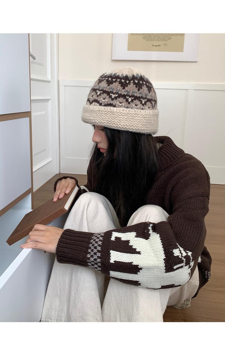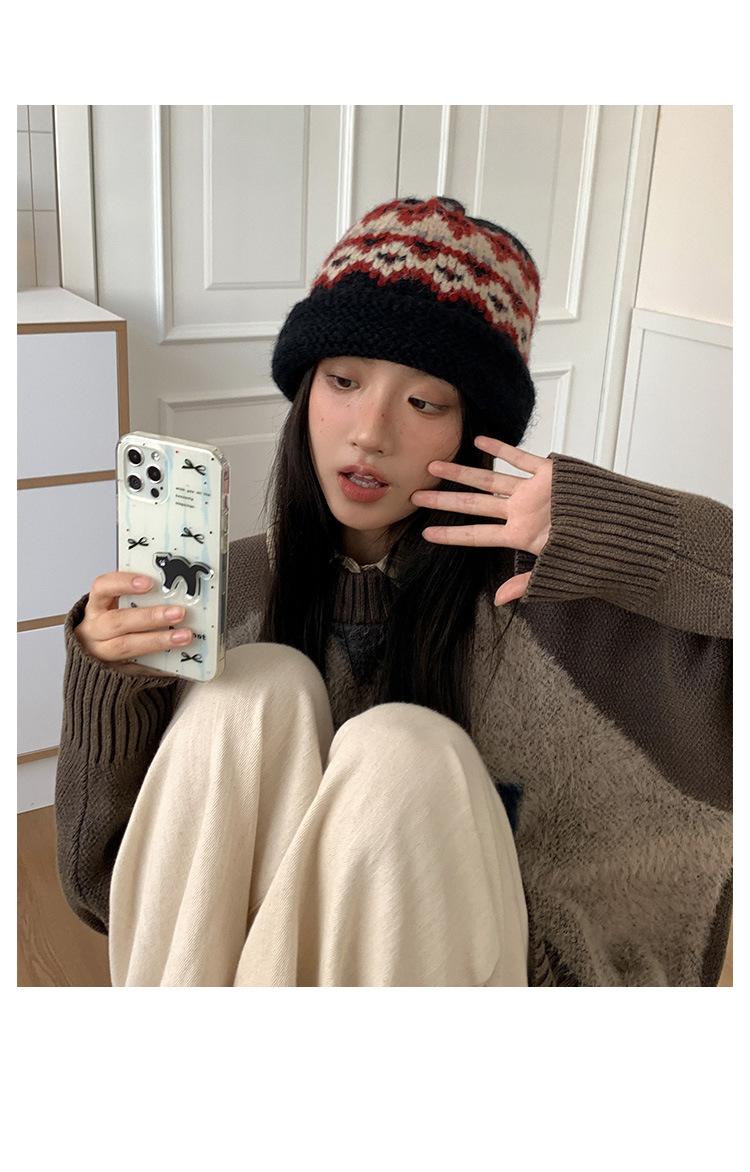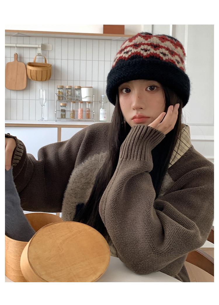Sombrero de Lana Tejido Estilo Fairisland para Mujer Otoño e Invierno Vintage Grueso Cálido Protección para las Orejas Sombrero para la Cara Pequeño Sombrero Baotou Moda