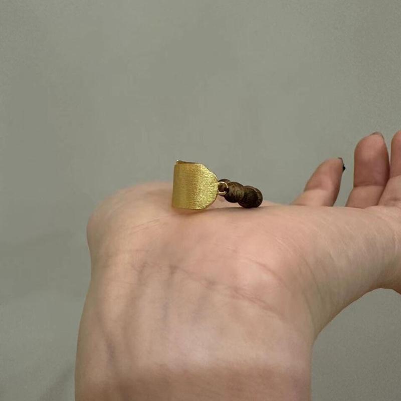 Nuevo anillo de estilo chino con cuentas geométricas de trefilado dorado, anillo elástico vintage de nicho, diseño personalizado, anillo de dedo simple