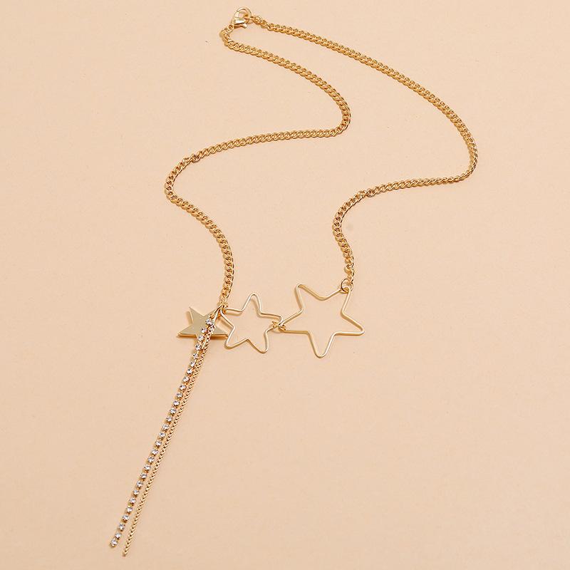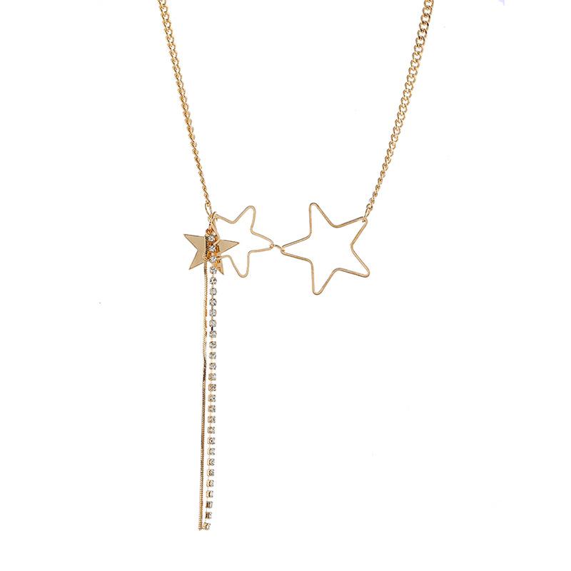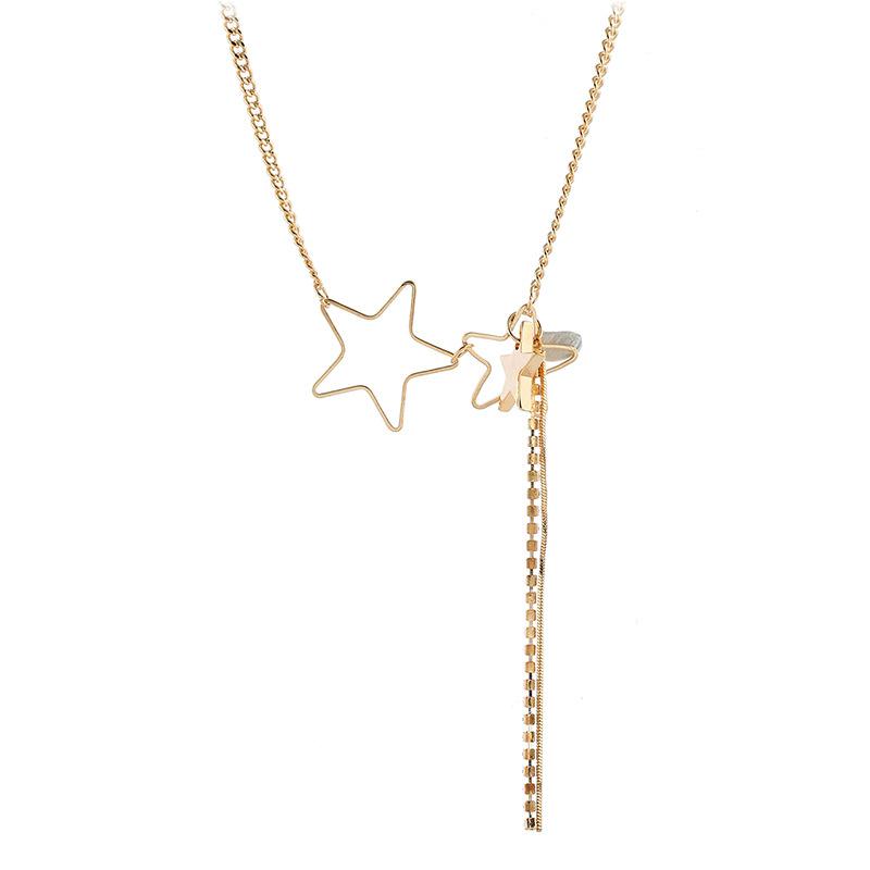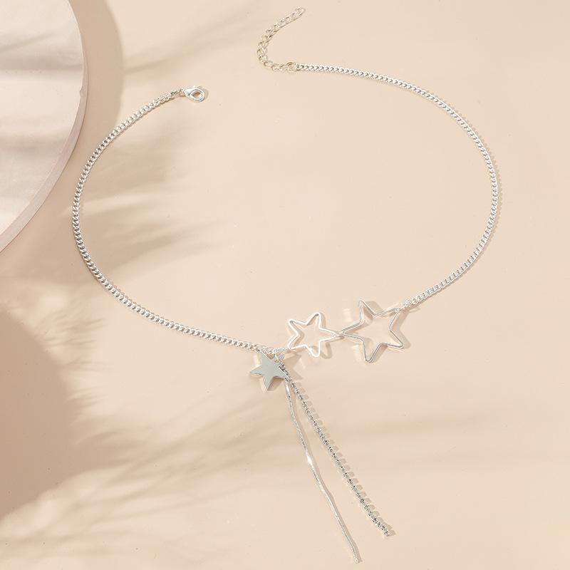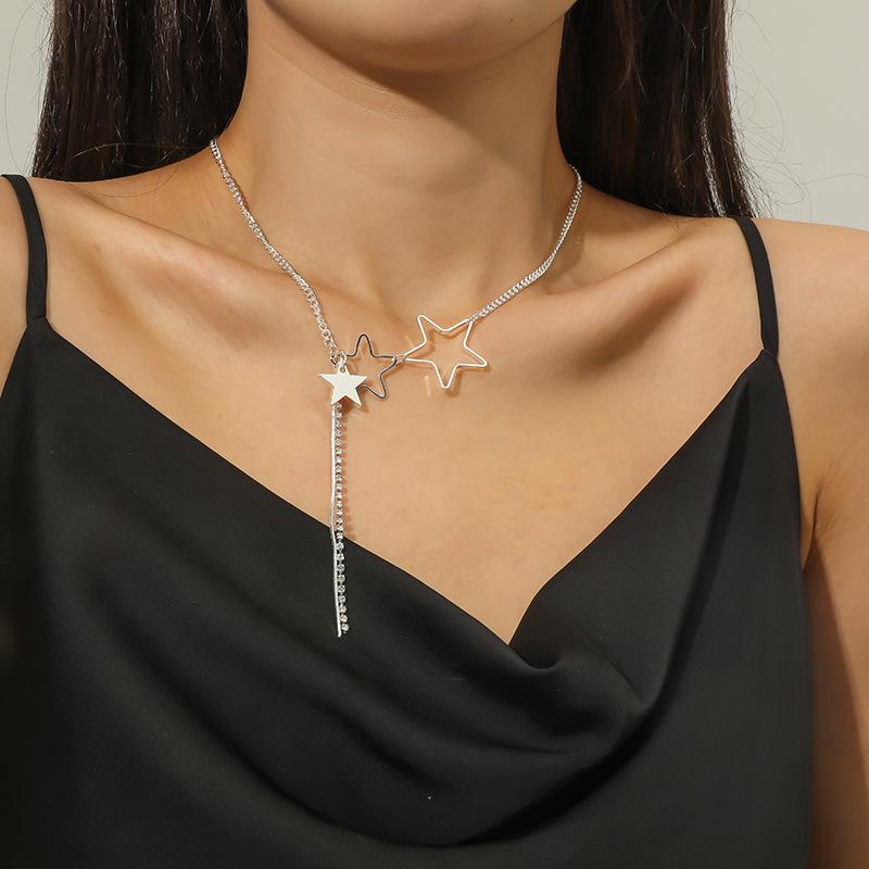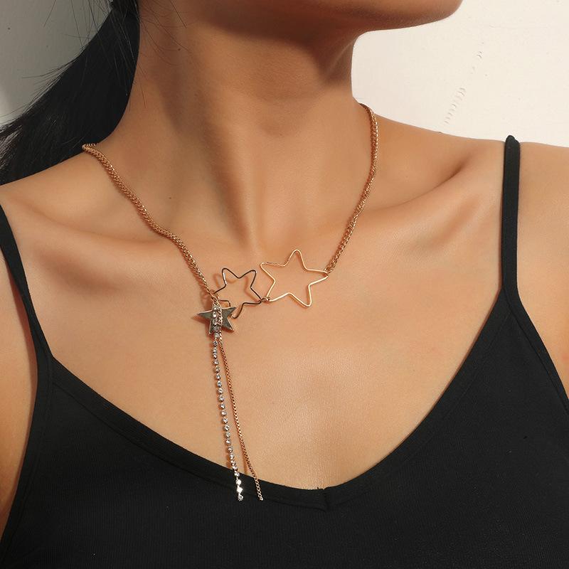 Collar con temperamento de estrella de cinco puntas hueca múltiple de joyería transfronteriza europea y americana, nuevo collar de estrella creativo de verano, joyería