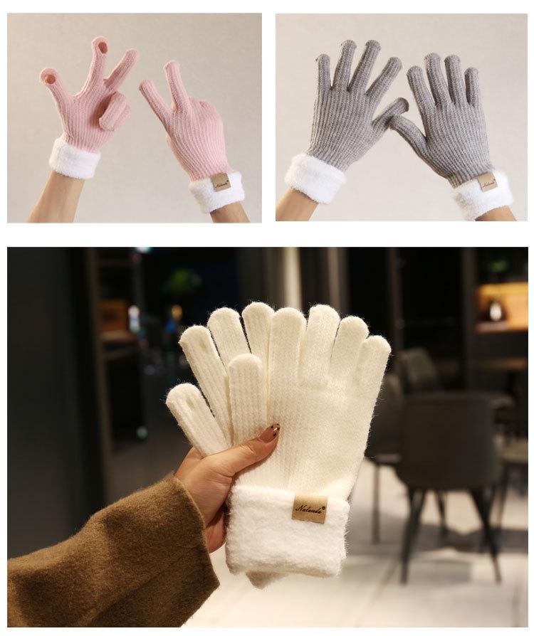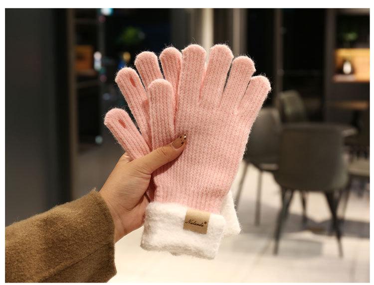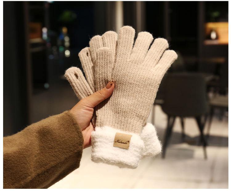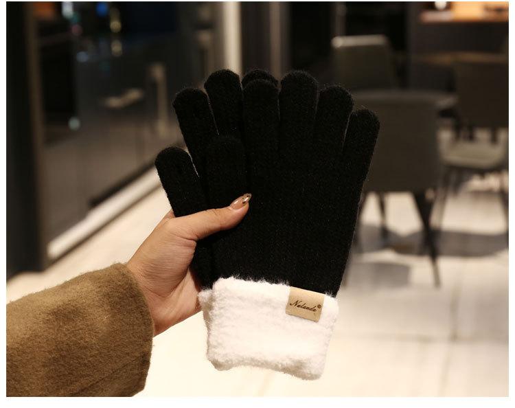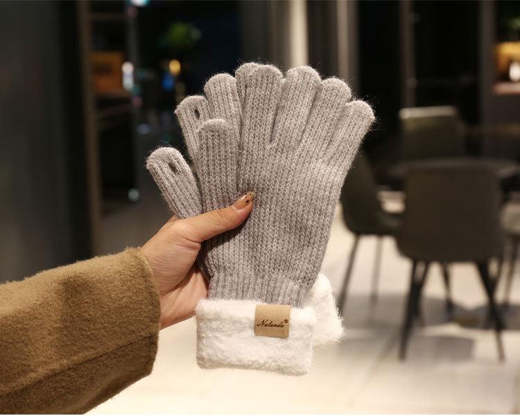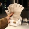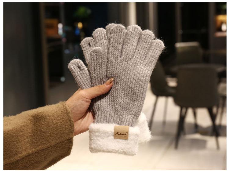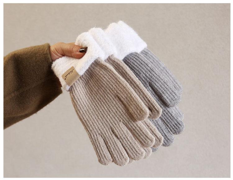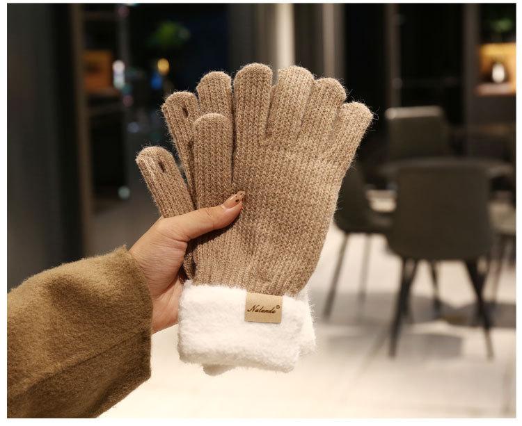 Nuevos Guantes Cálidos Gruesos para Mujer Invierno Sencillos de Felpa Empalmados Versátiles sin Dedos con Pantalla Táctil Guantes de Punto
