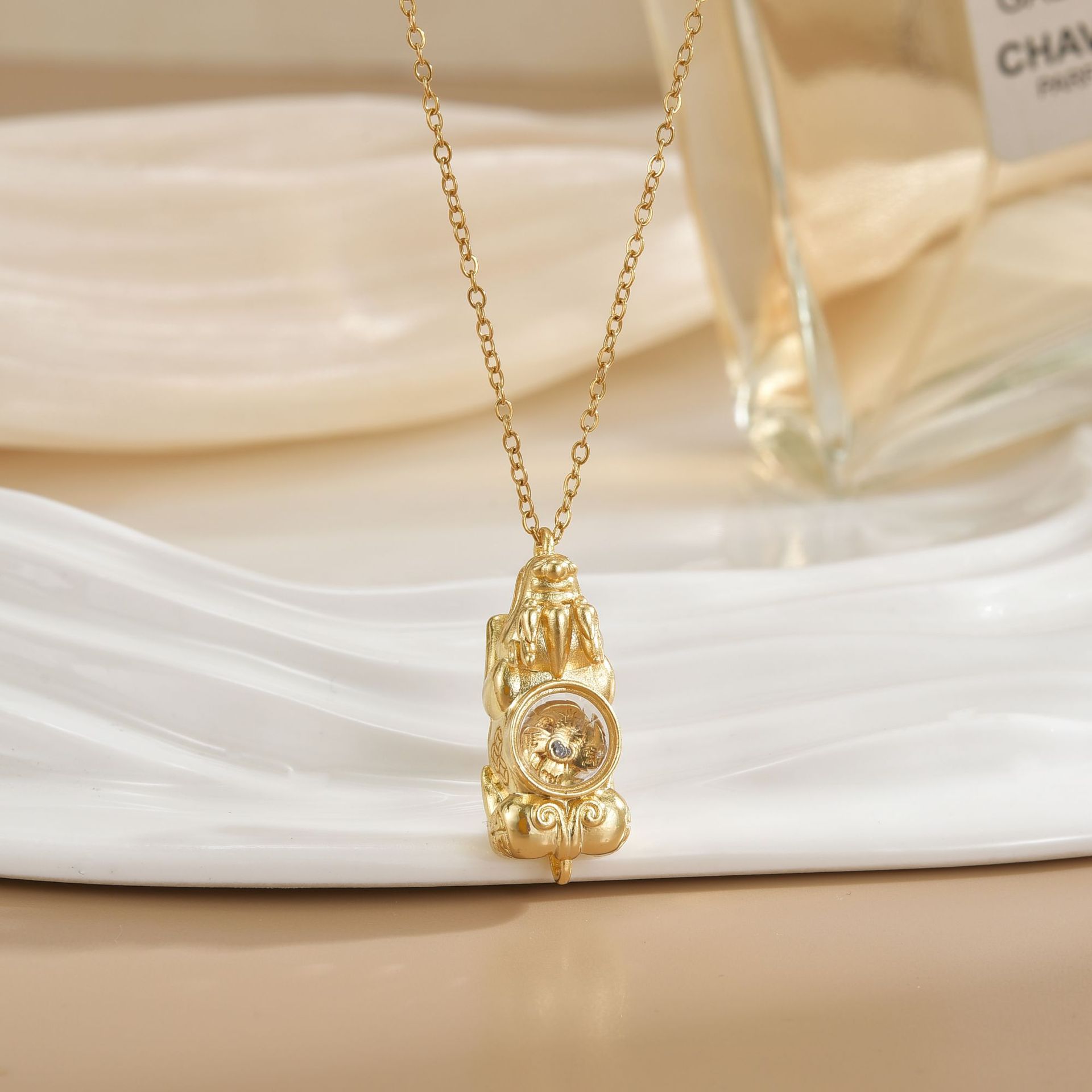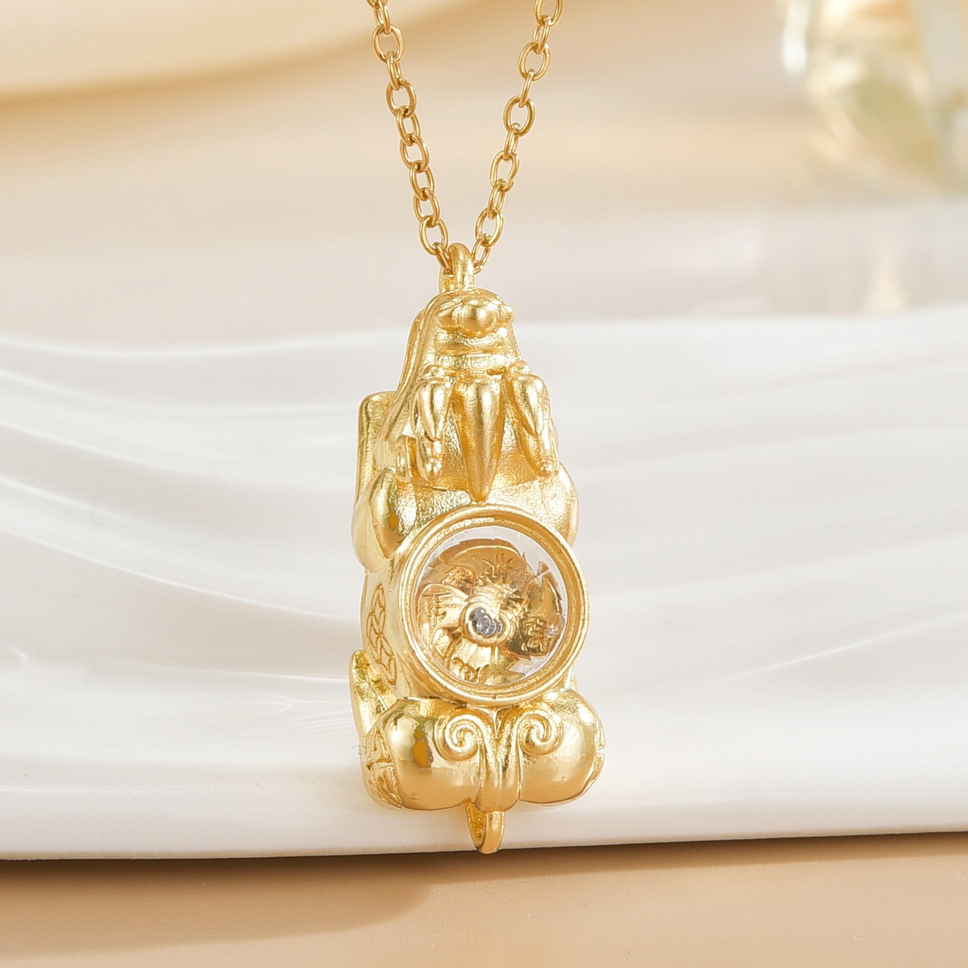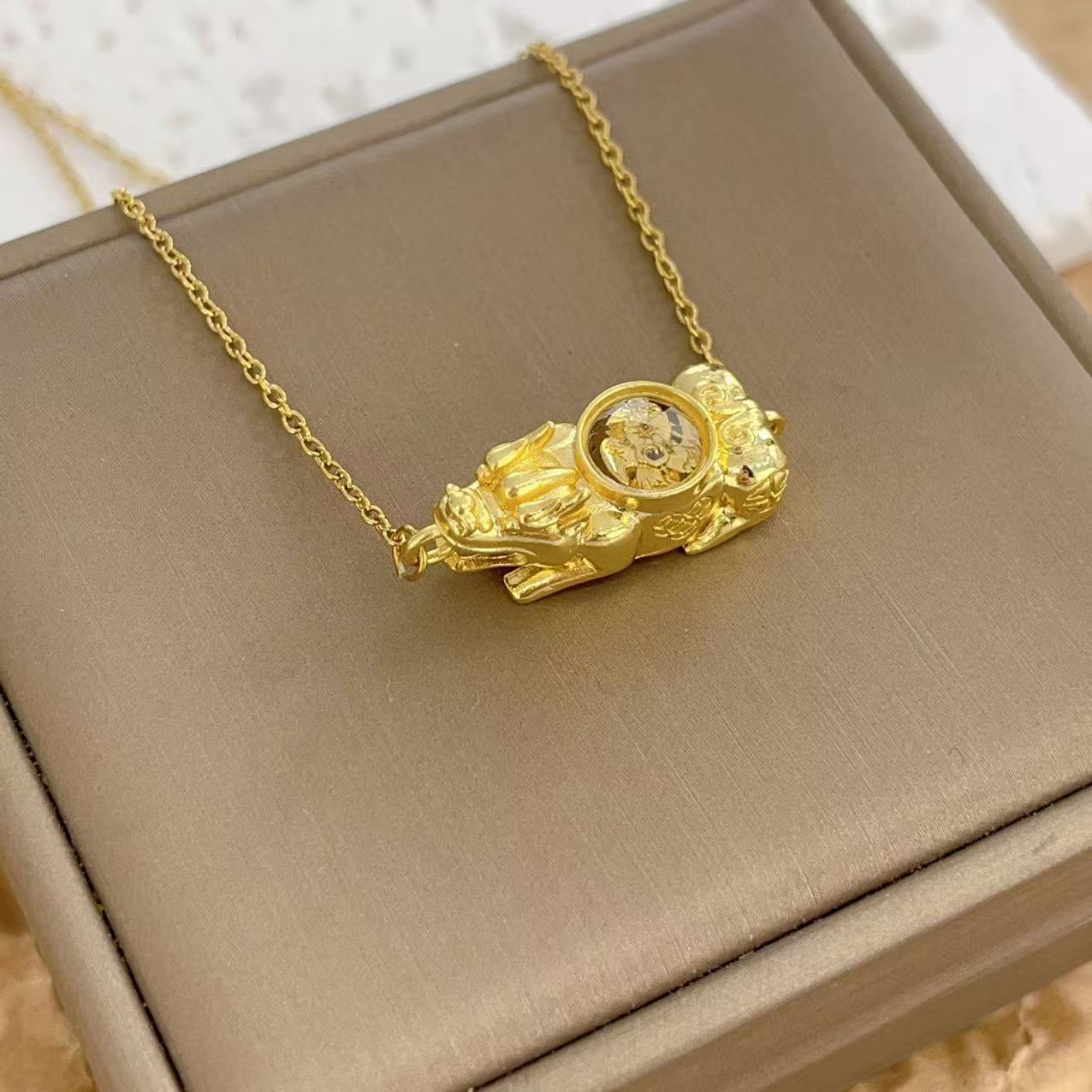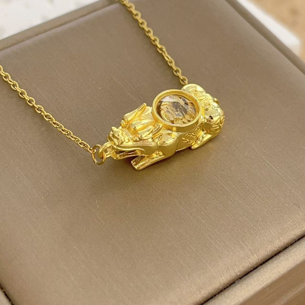 Collar Wei Xue del mismo estilo, chapado en oro auténtico, con fuerte conservación del color, colgante de viento y agua Pixiu con colgante de diamantes, cadena de clavícula de lujo ligera y moderna.