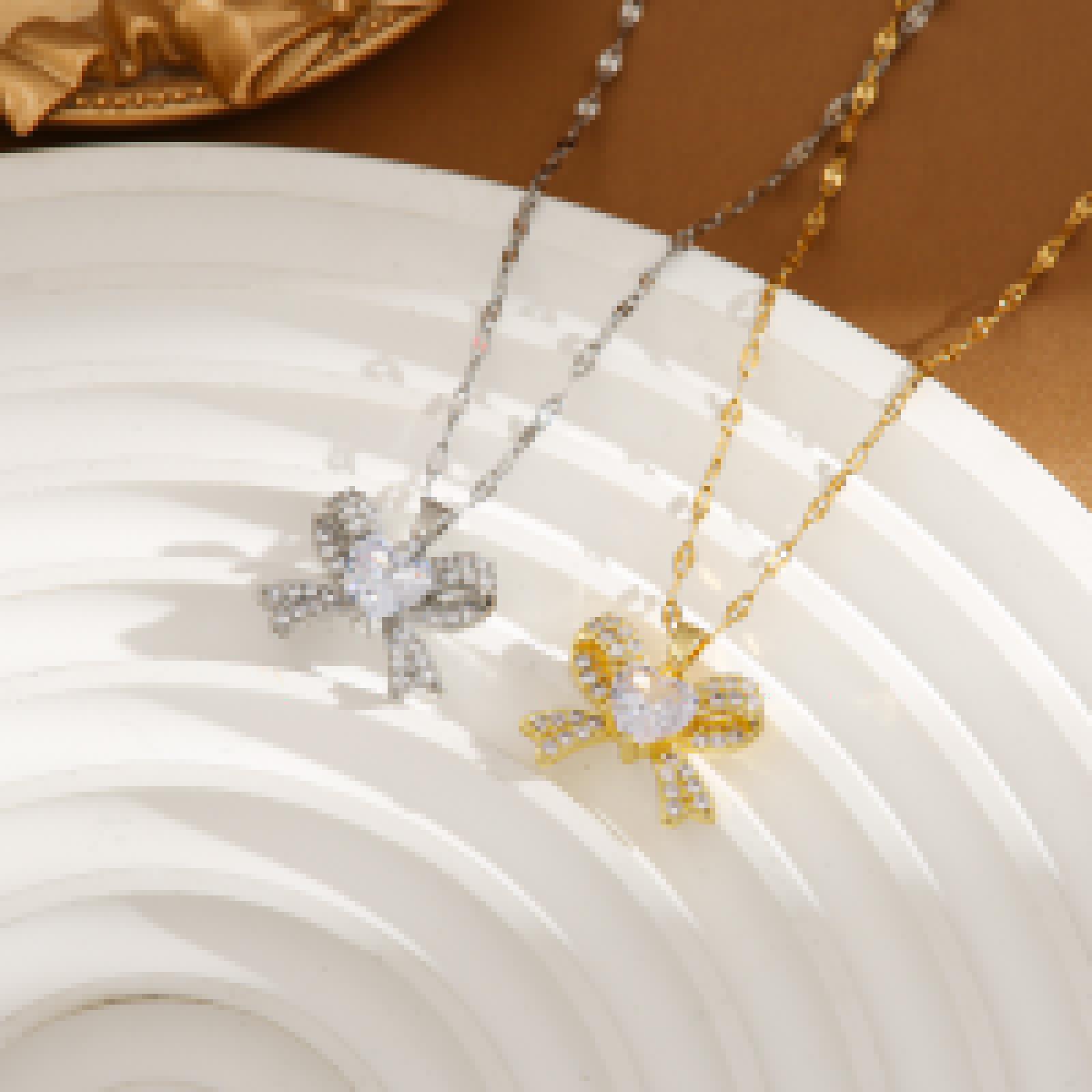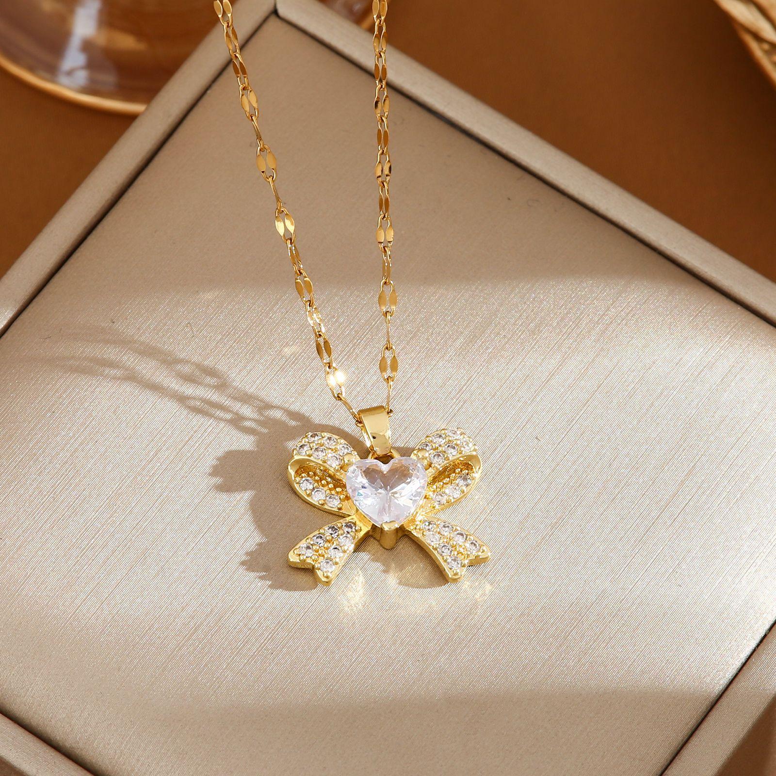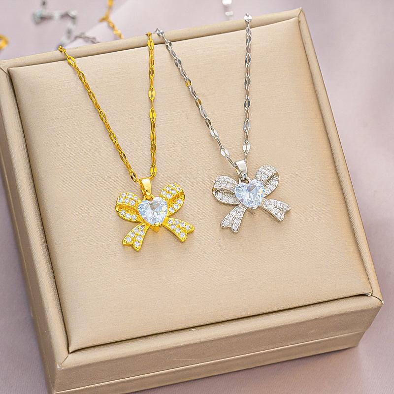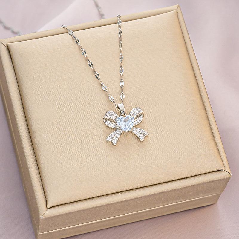 Colgante de lazo de diamantes para damas transfronterizas europeas y americanas, moda simple, Joker, circonita, cadena de clavícula de acero de titanio, fabricantes al por mayor