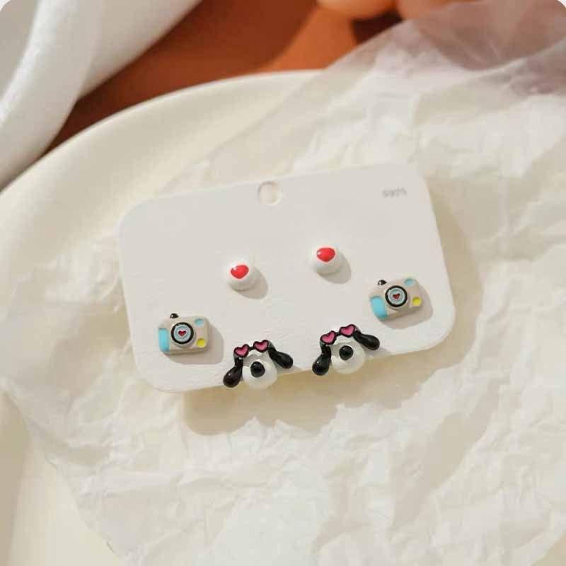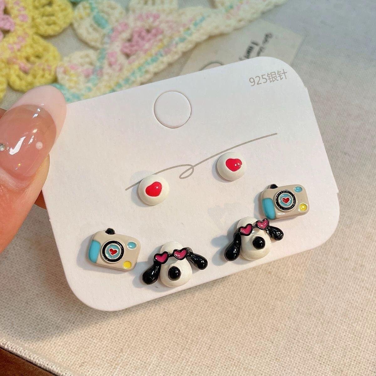 Pendientes de dibujos animados con forma de monstruo y aguja de plata, diseño infantil, para estudiantes pequeños