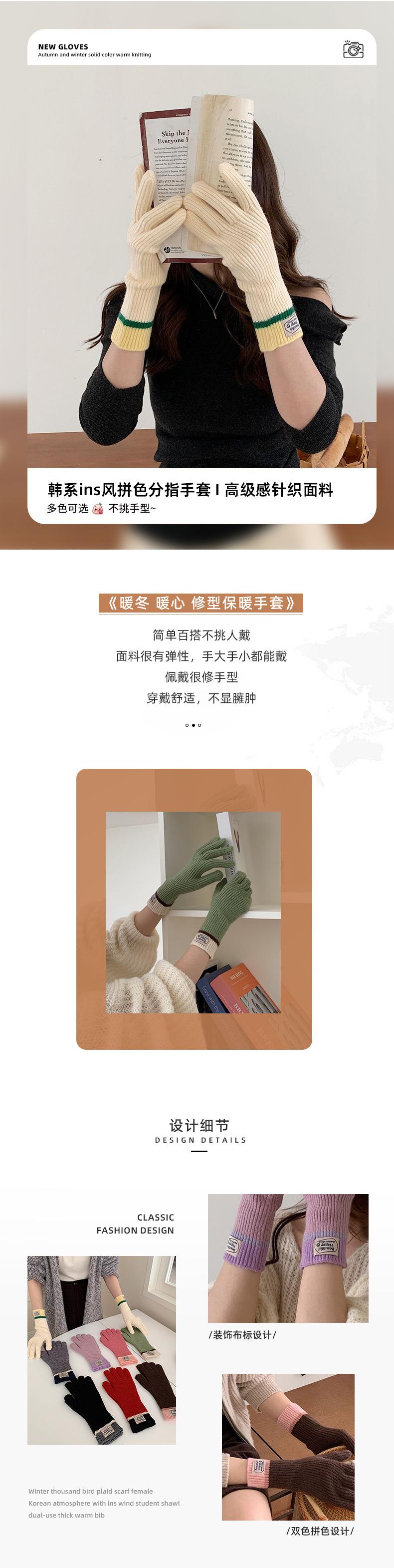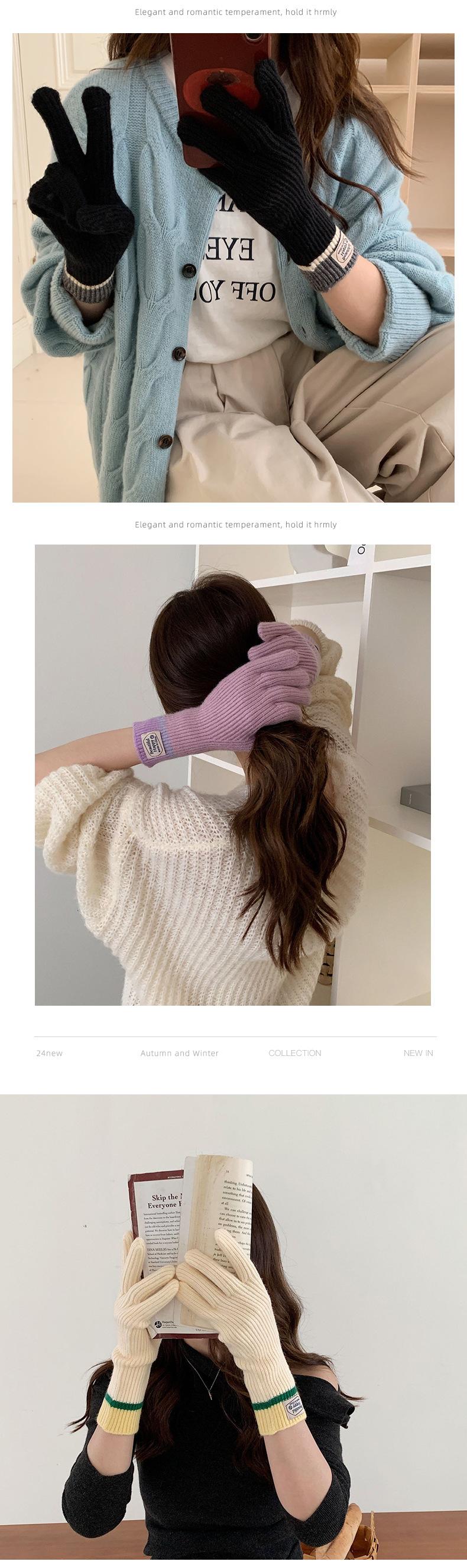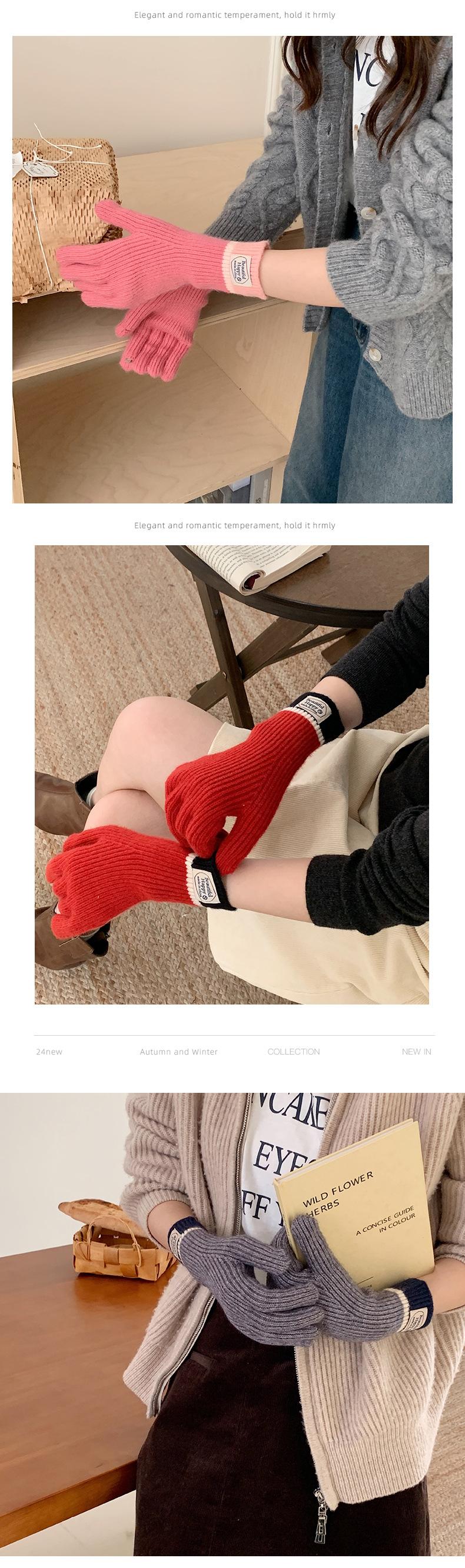 Guantes cálidos de lana para pantalla táctil, nuevos de Corea, para otoño e invierno, con etiqueta de moda, resistentes al viento y al frío.