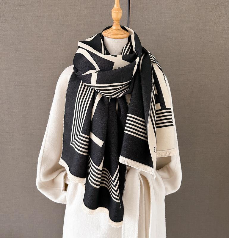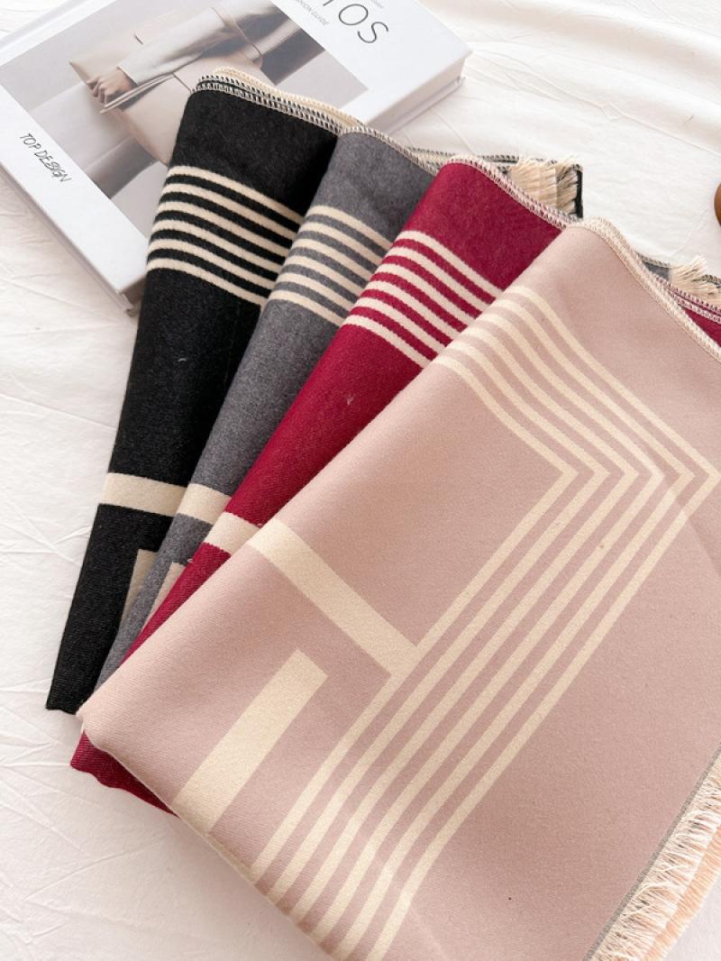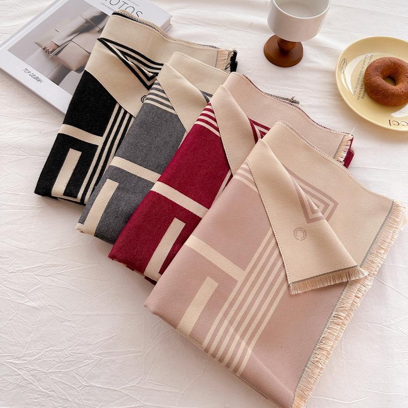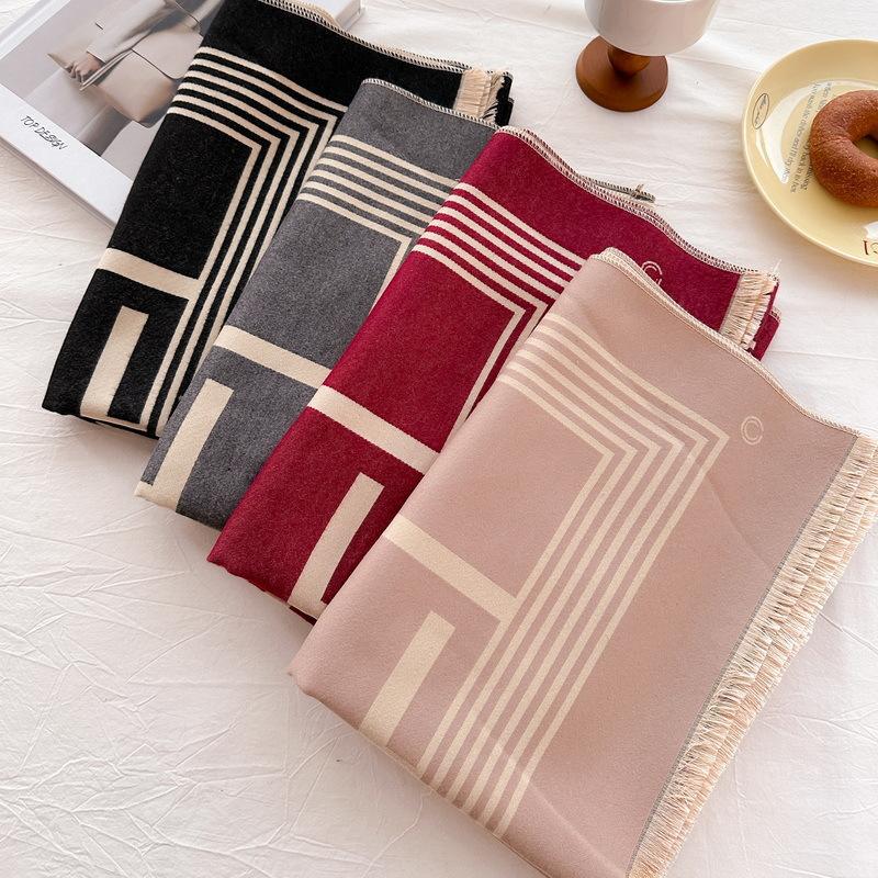Bufanda cálida de cachemira estilo coreano para mujer, otoño e invierno, gruesa, de doble cara, con borlas para estudiantes, chal de doble uso