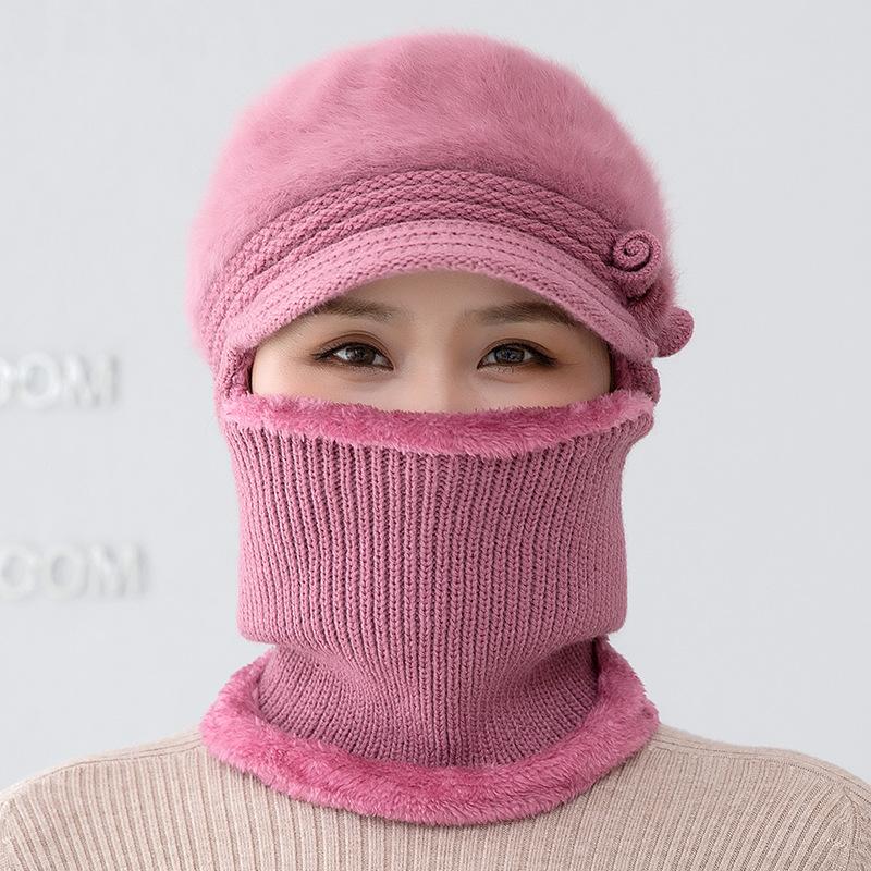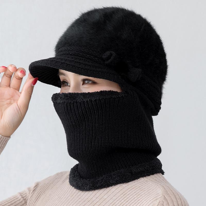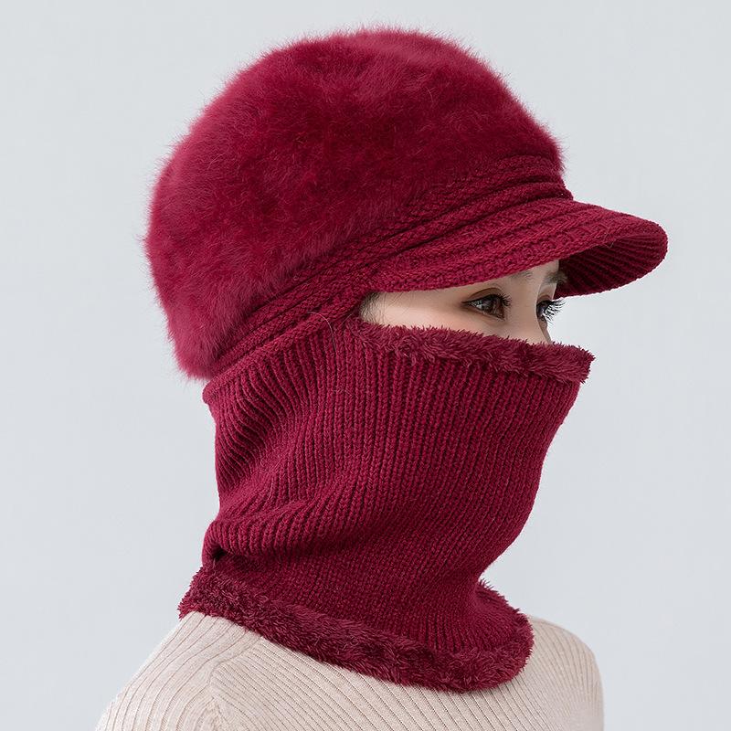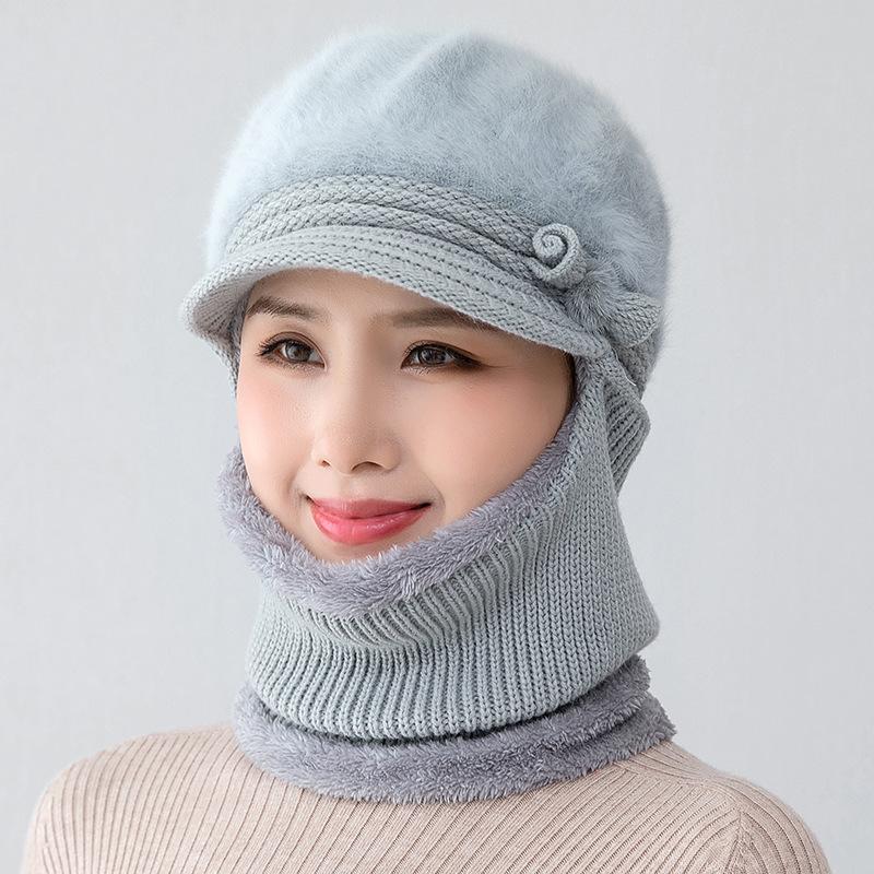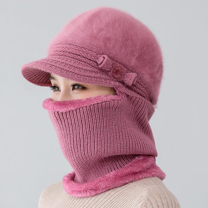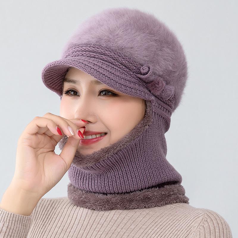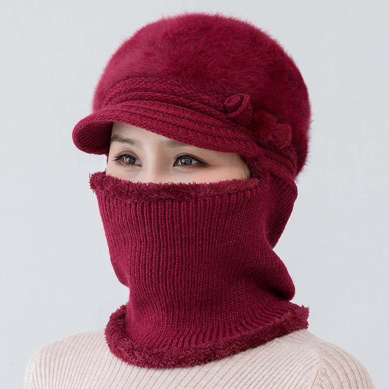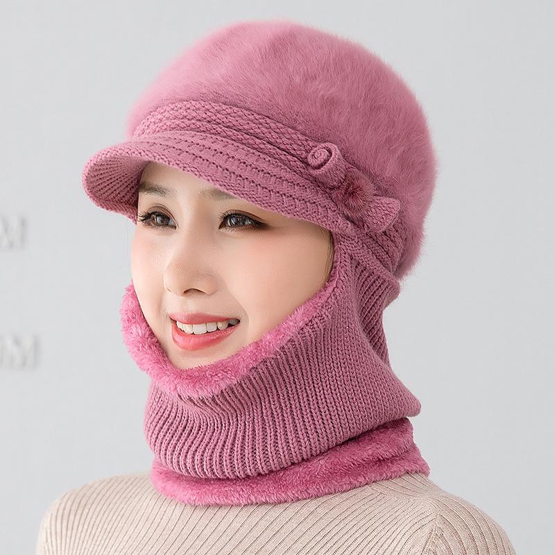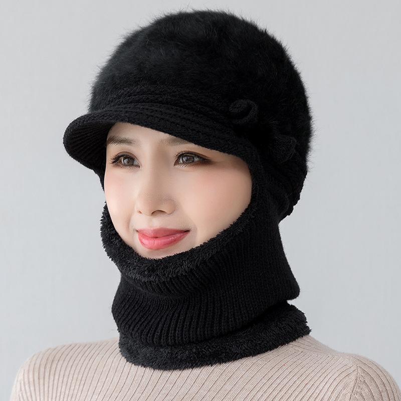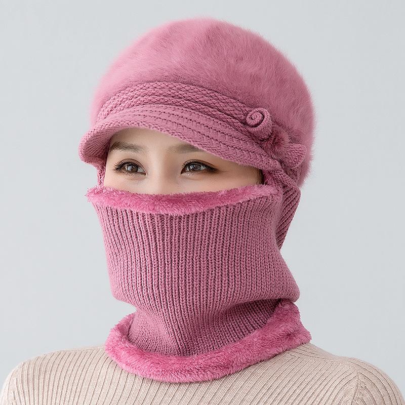 Gorro de punto unido de pelo de conejo de invierno para ciclismo al aire libre, protección de cuello y protección de orejas, forrado de vellón, gorro de lana para personas de mediana edad y mayores, gorro de abuela