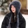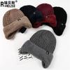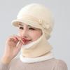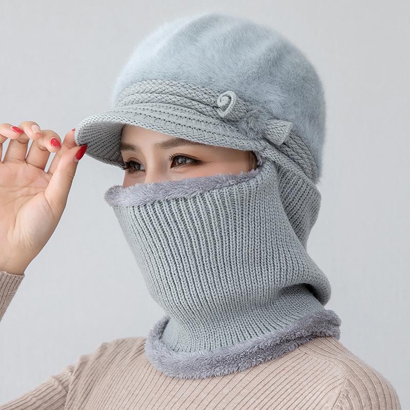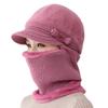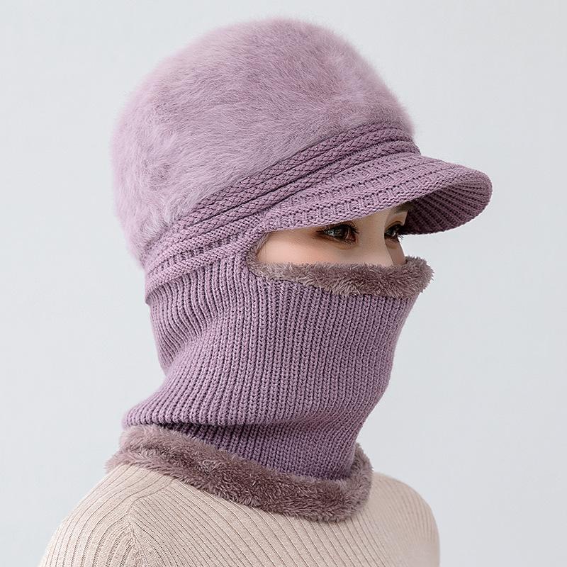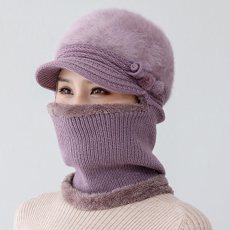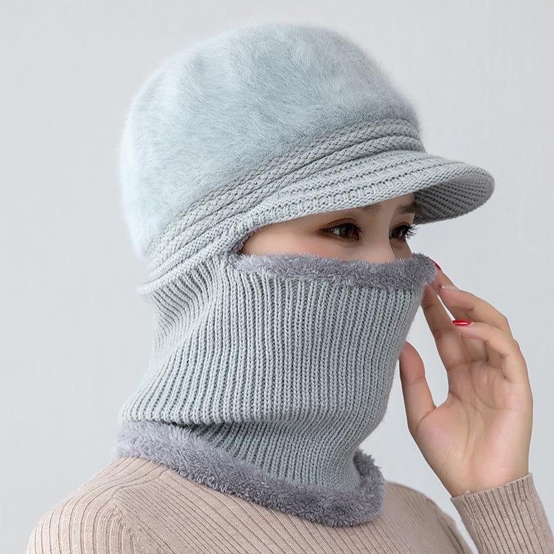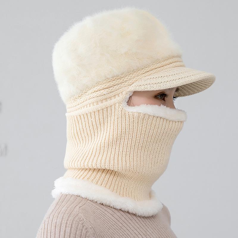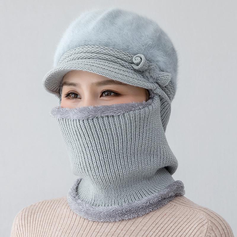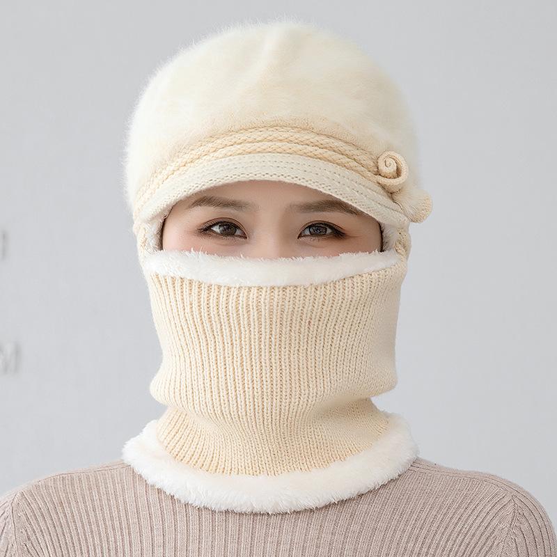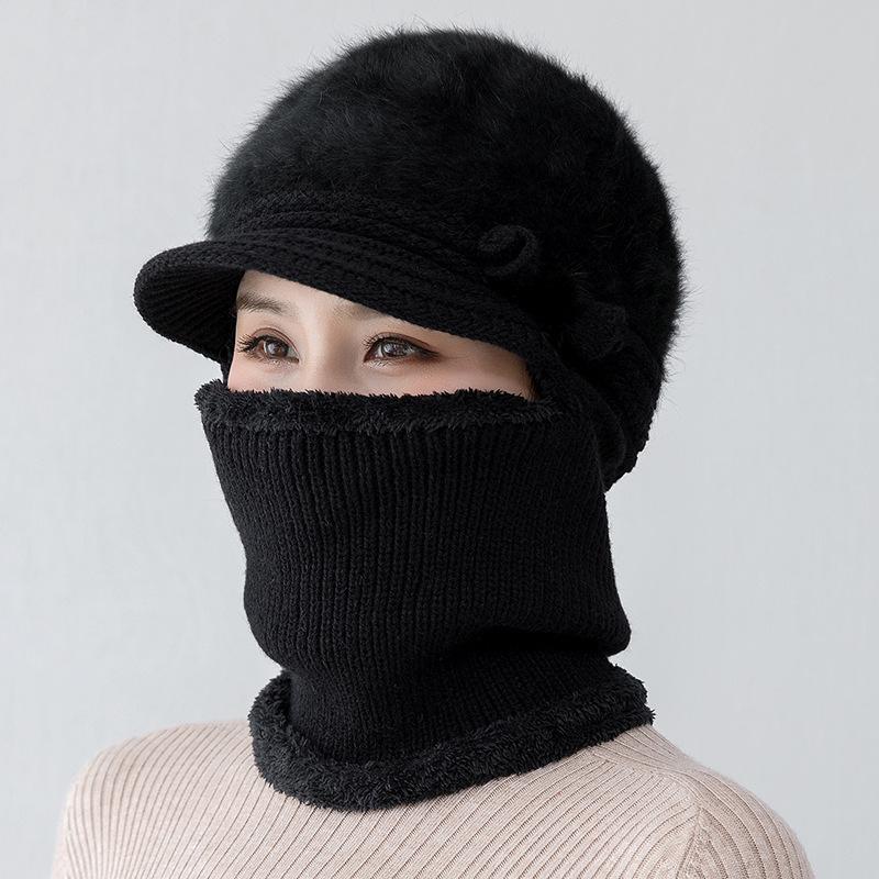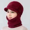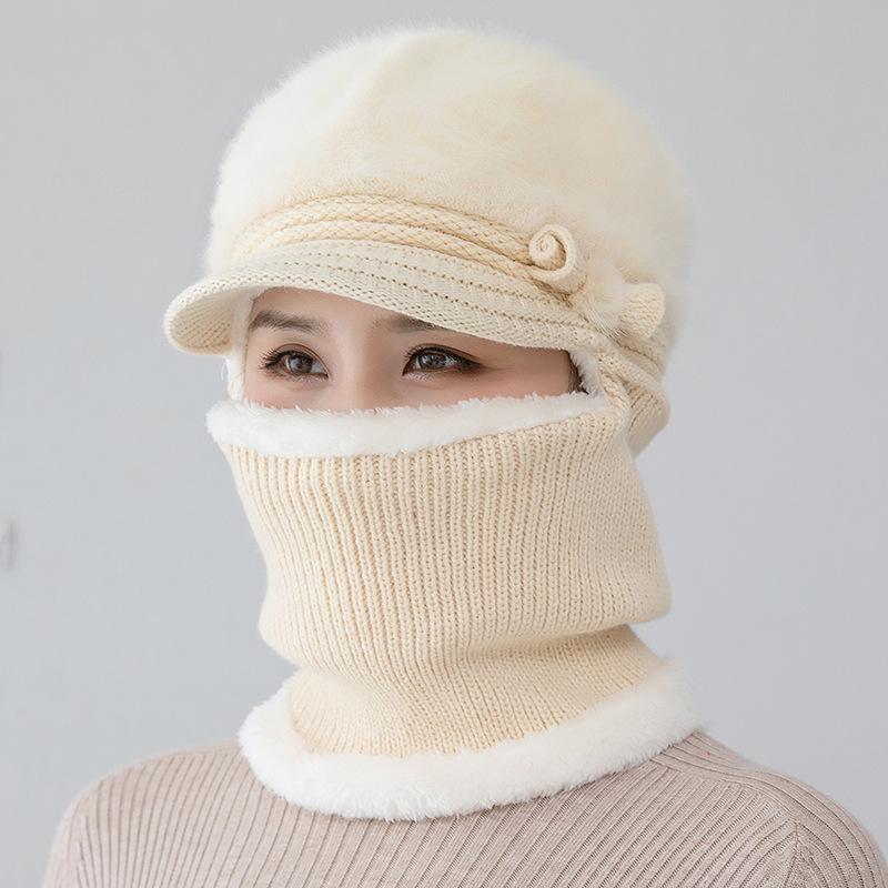 Gorro de punto unido de pelo de conejo de invierno para ciclismo al aire libre, protección de cuello y protección de orejas, forrado de vellón, gorro de lana para personas de mediana edad y mayores, gorro de abuela