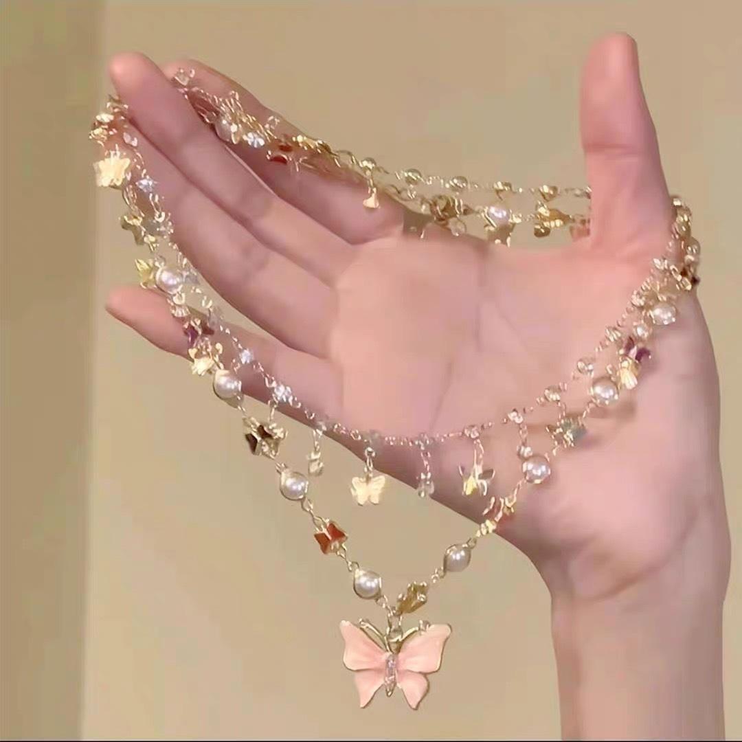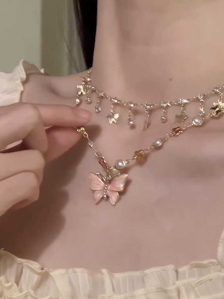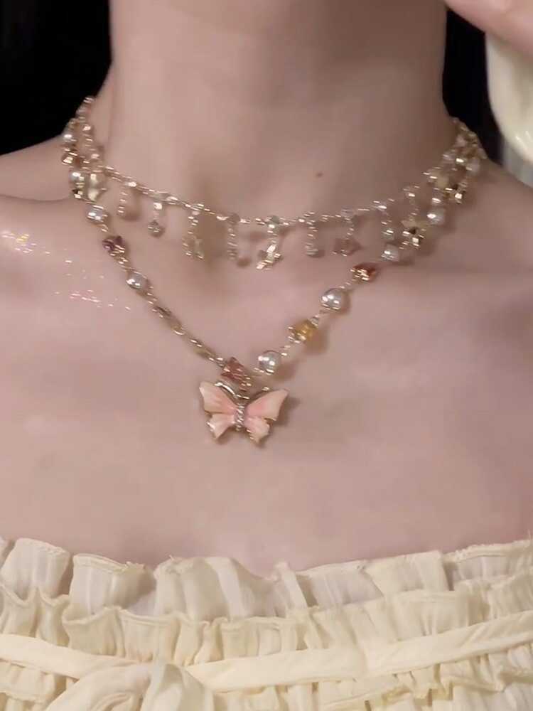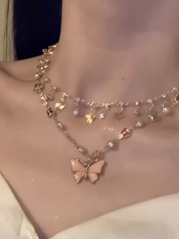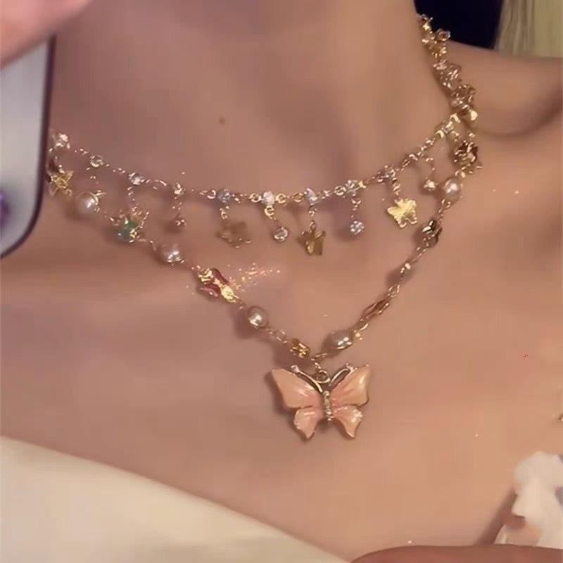 Collar con borlas de mariposa de colores apiladas, cadena de clavícula con borlas, nicho ligero, de lujo, con un diseño de alta calidad, 2024