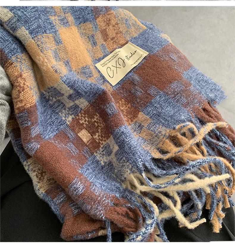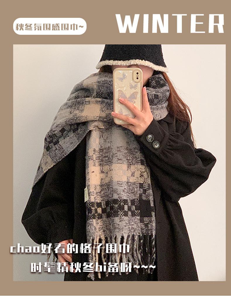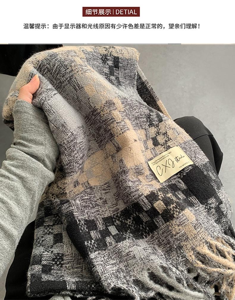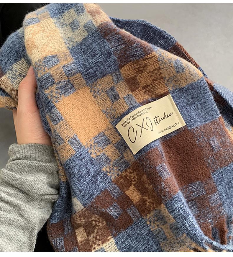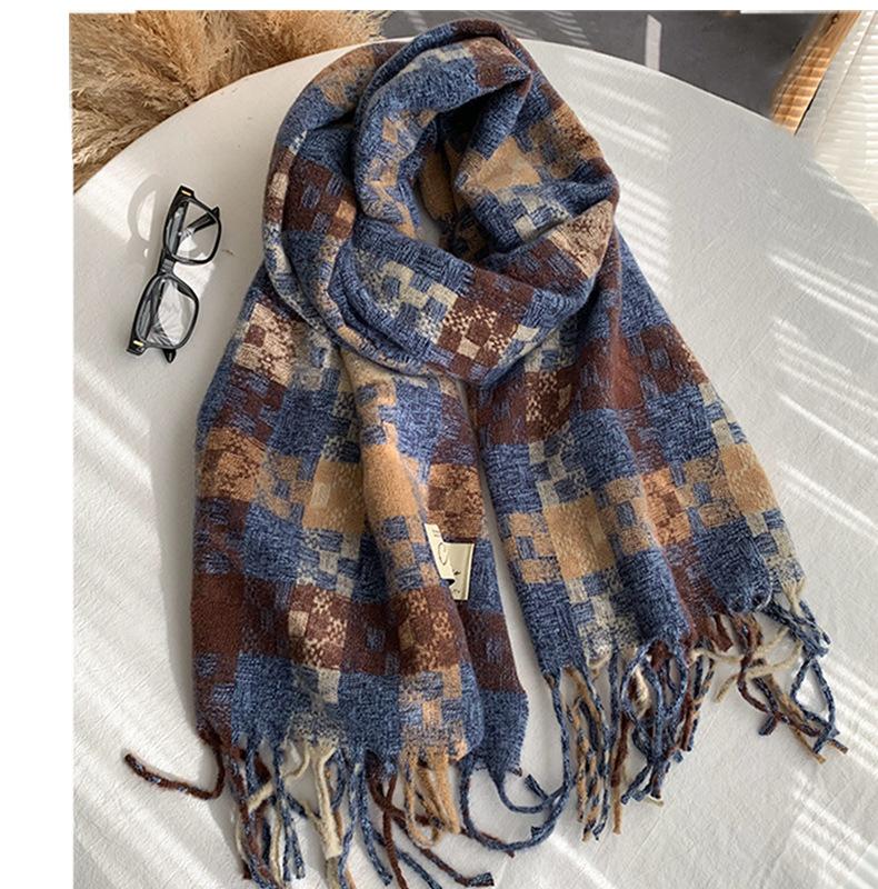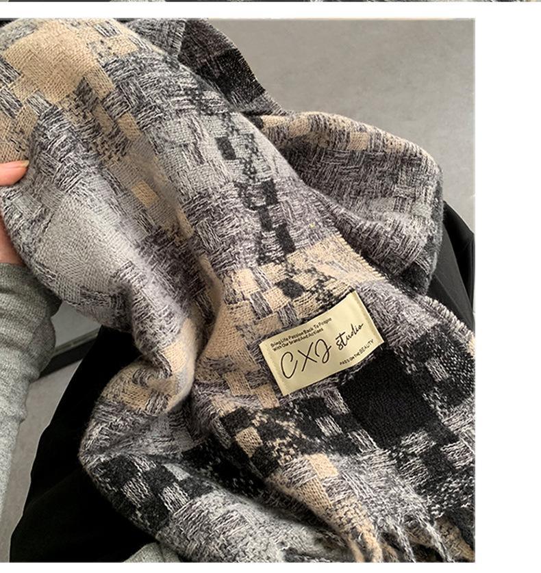 Bufanda a cuadros con bloques de color para mujer, estilo de alta gama para invierno, nueva 2025, versátil, atmosférica, cálida para el cuello, venta al por mayor