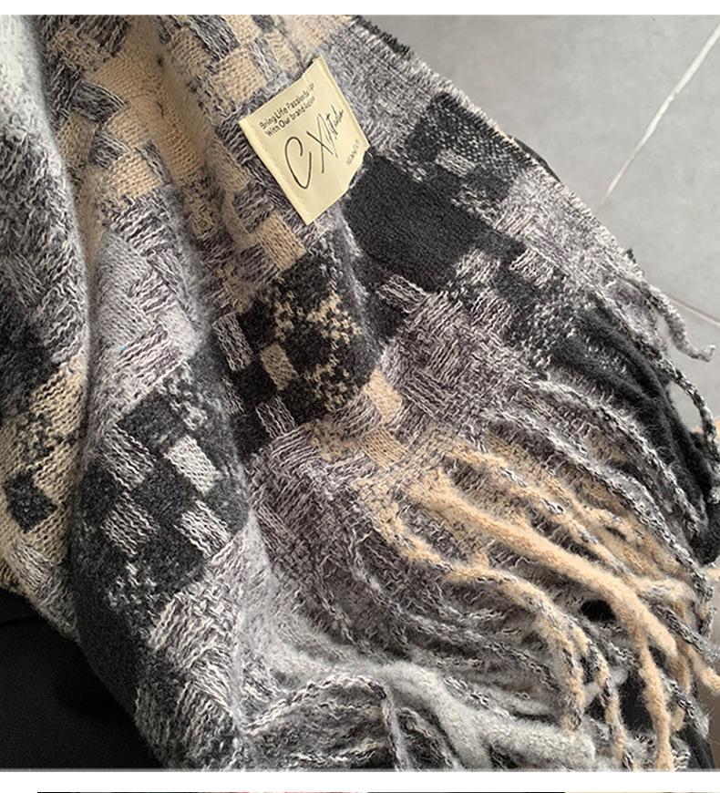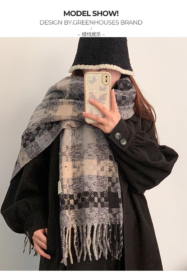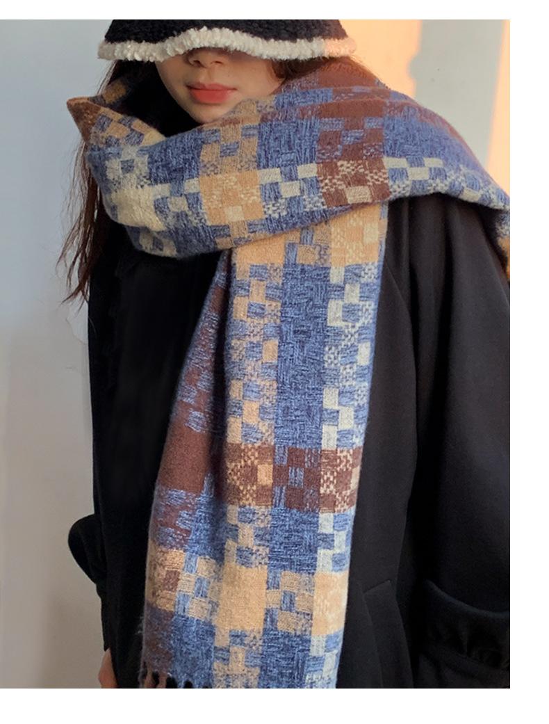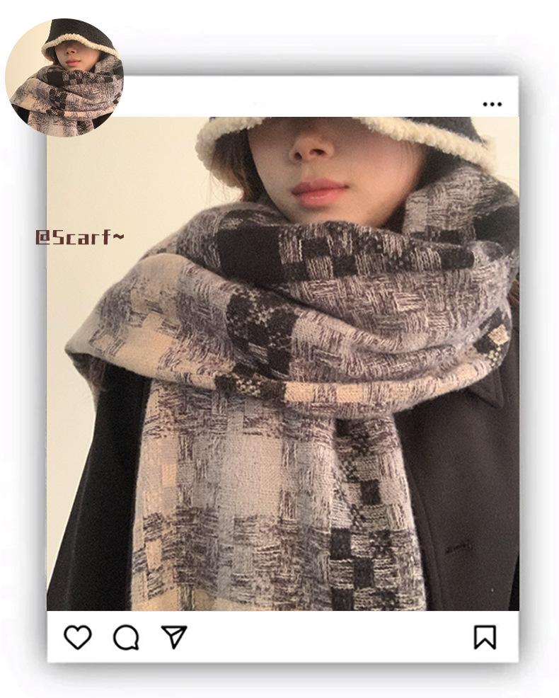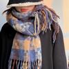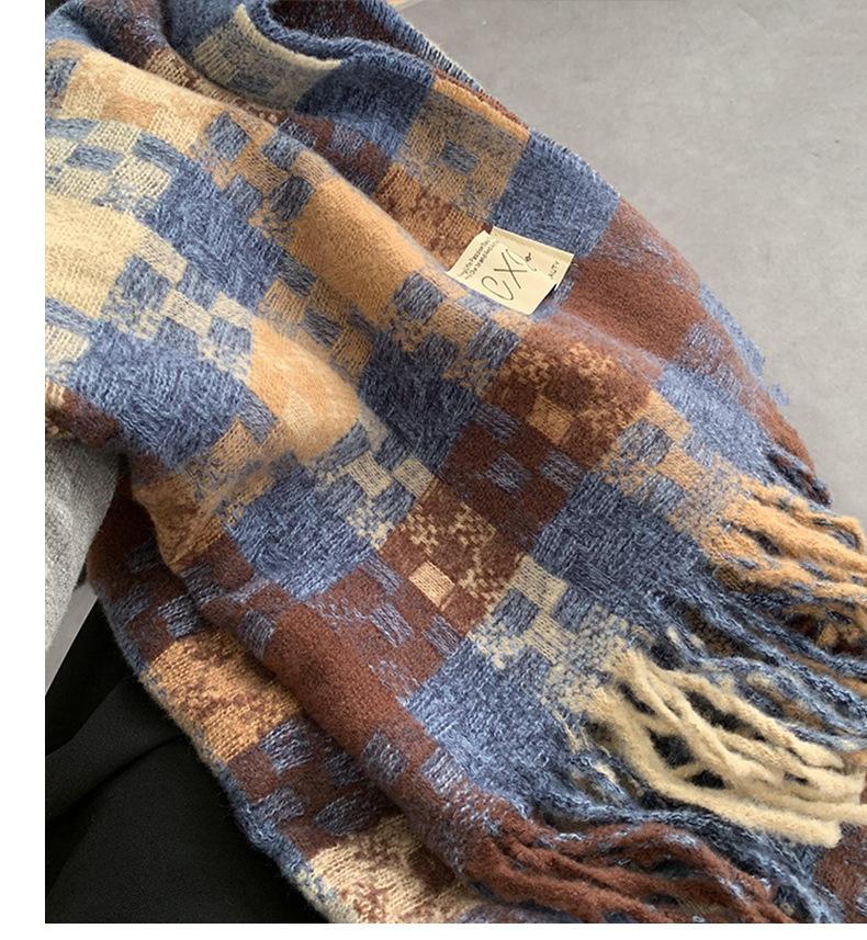 Bufanda a cuadros con bloques de color para mujer, estilo de alta gama para invierno, nueva 2025, versátil, atmosférica, cálida para el cuello, venta al por mayor