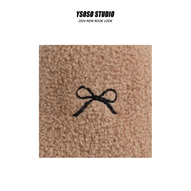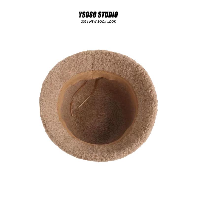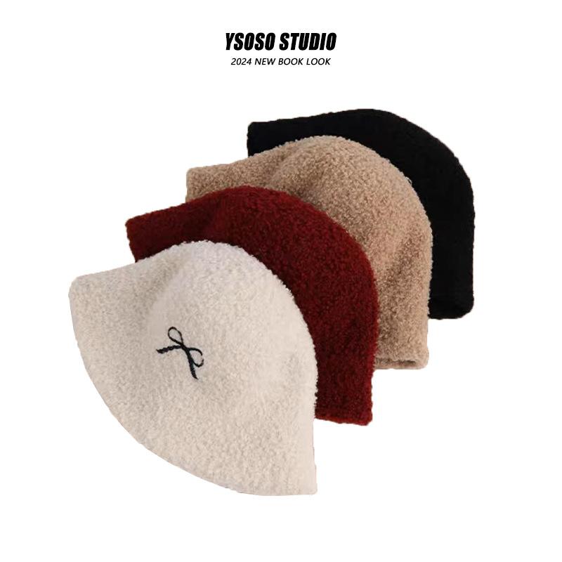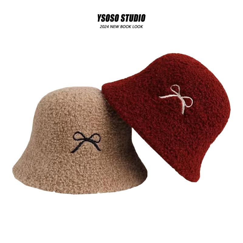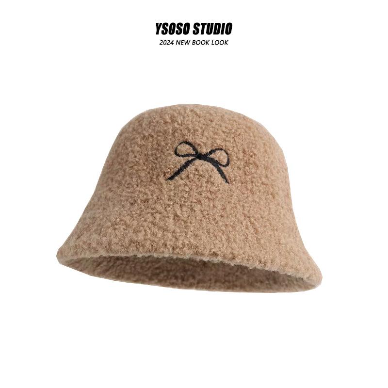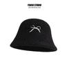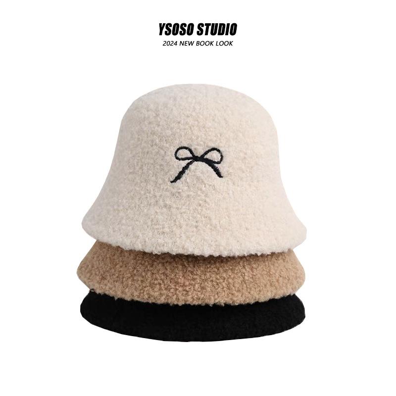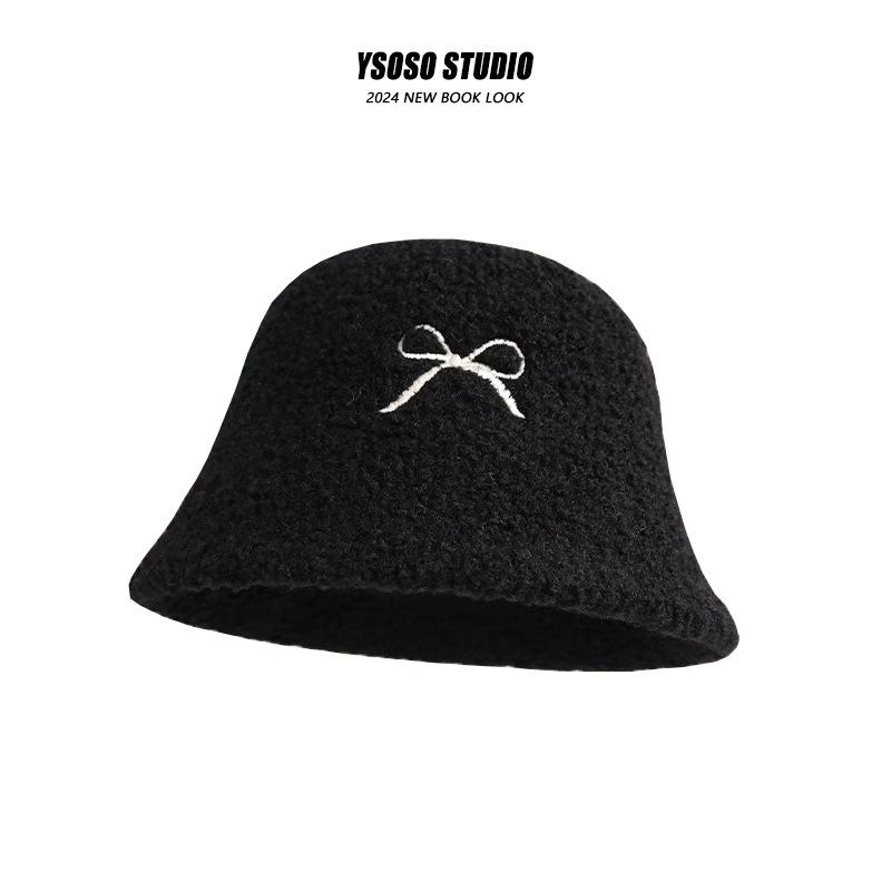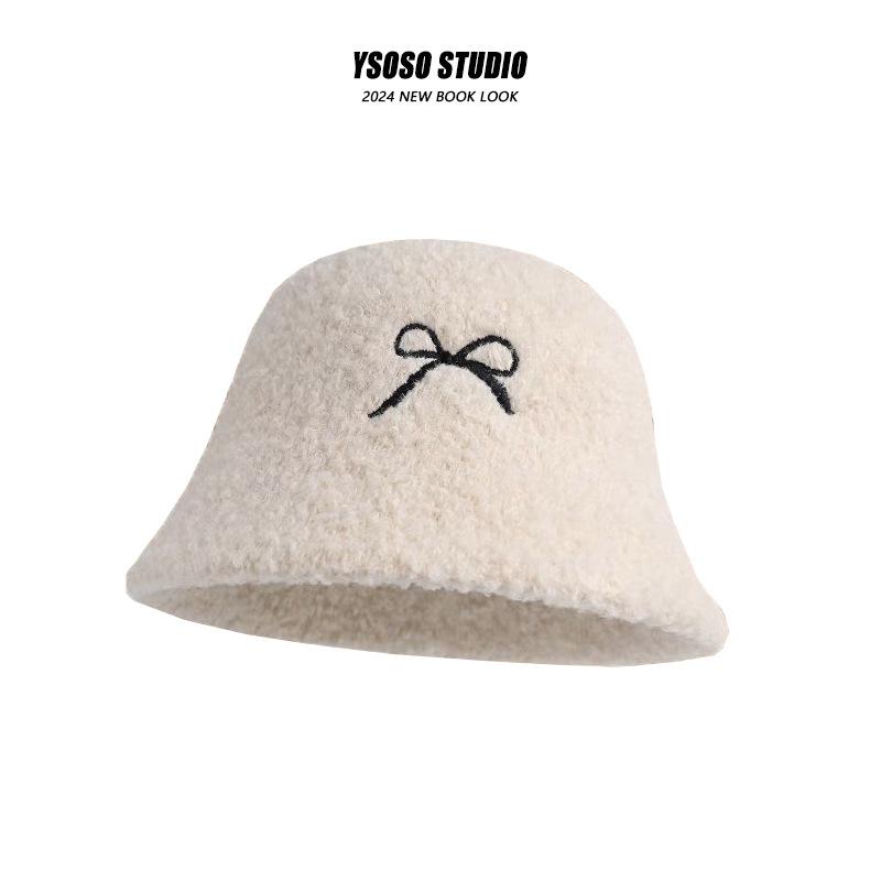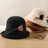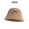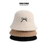 Sombrero de pescador de lana de cordero con lazo bordado para mujer, estilo coreano, sencillo, combinable y elegante, para invierno