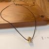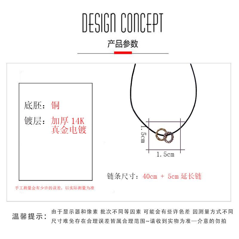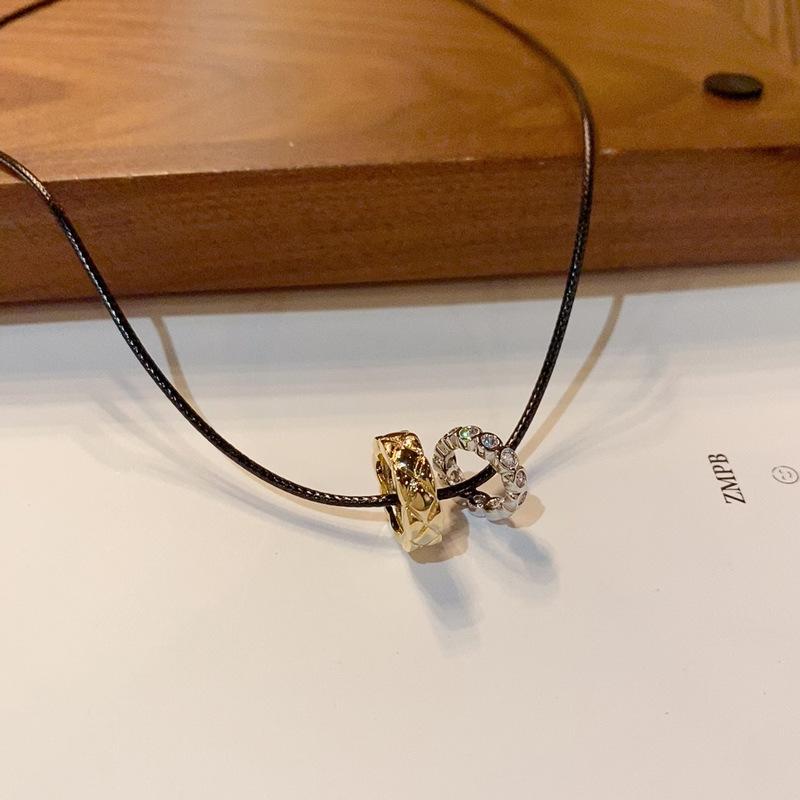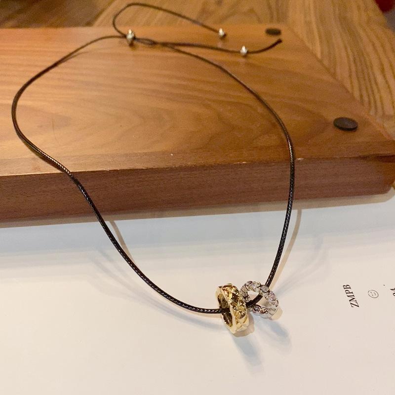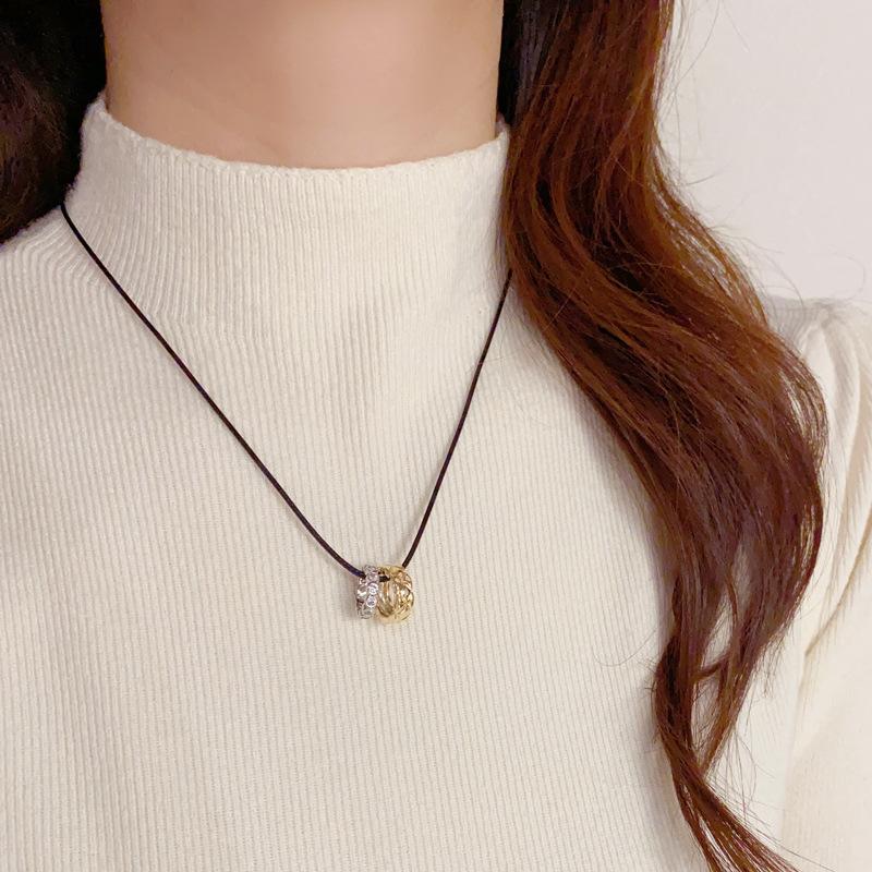 Anillo de oro y plata sencillo de moda elegante para otoño e invierno, collar de cuerda negra, accesorios de cadena de clavícula de diseño único y ligero de lujo.