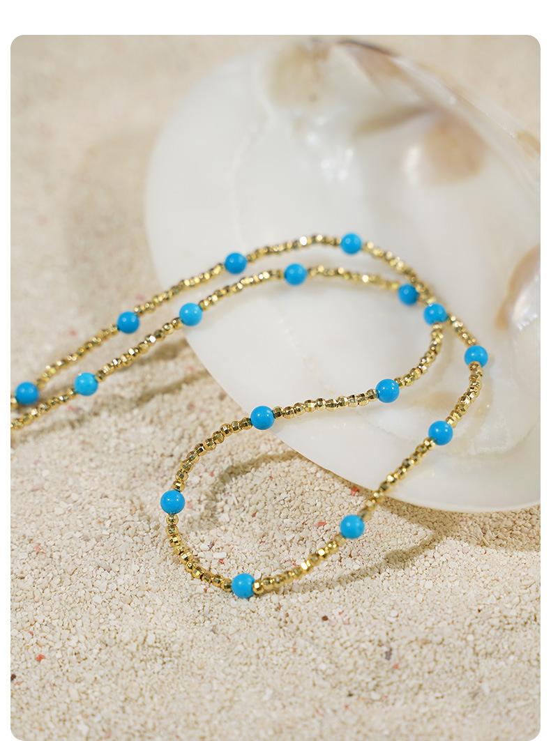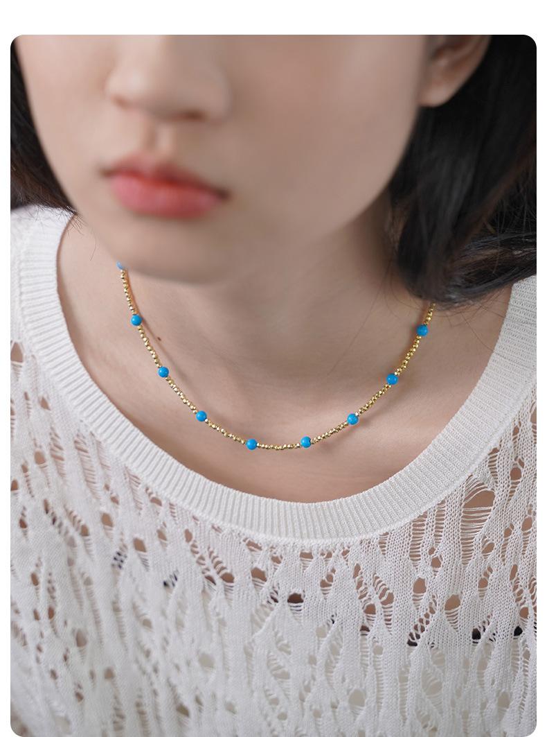 Venta Caliente Transfronteriza Accesorios Collar Bohemio Otoño para Mujer Ola Marina Belleza Azul Pino Turquesa Moda Simple Europa y América