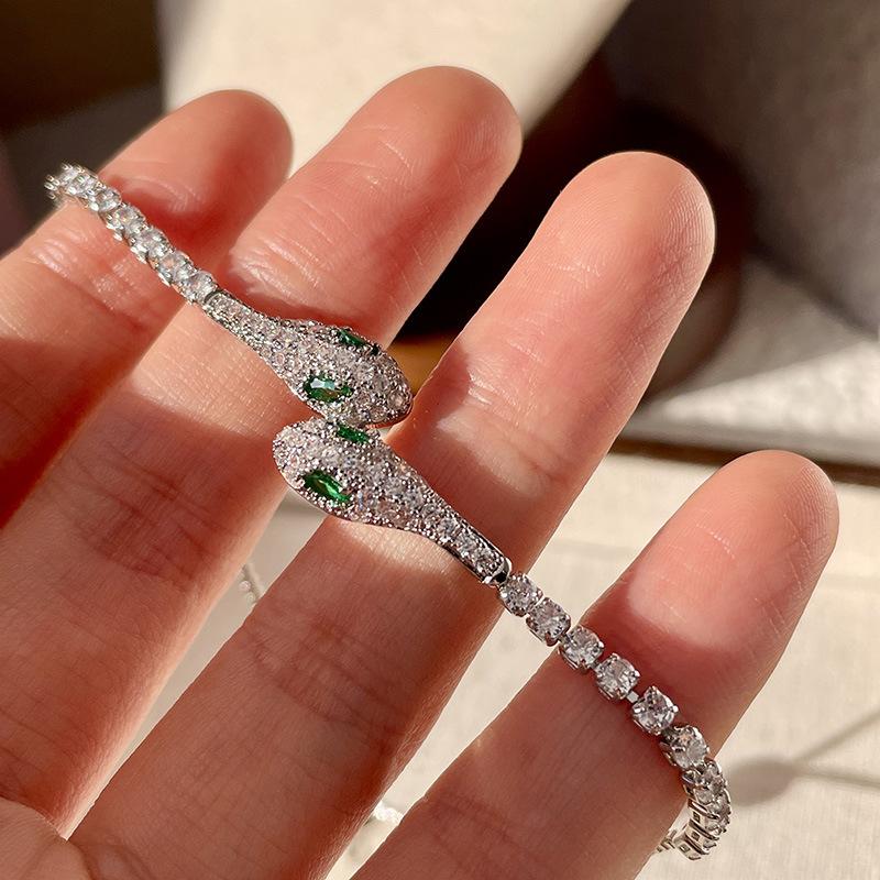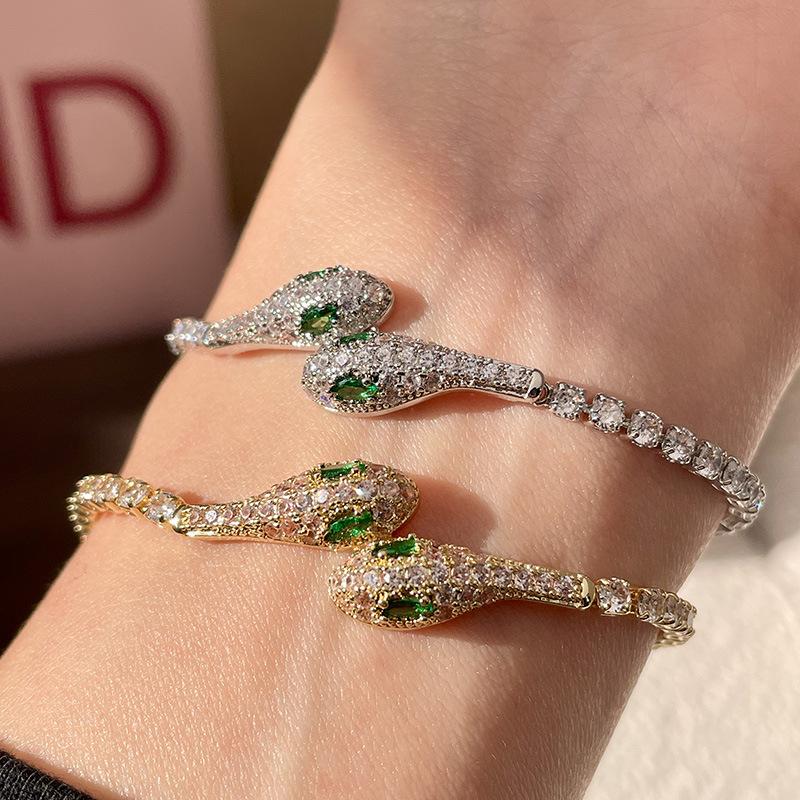 A gold base zircon snake bracelet (pull adjustment), B silver base zircon snake bracelet (pull adjustment)