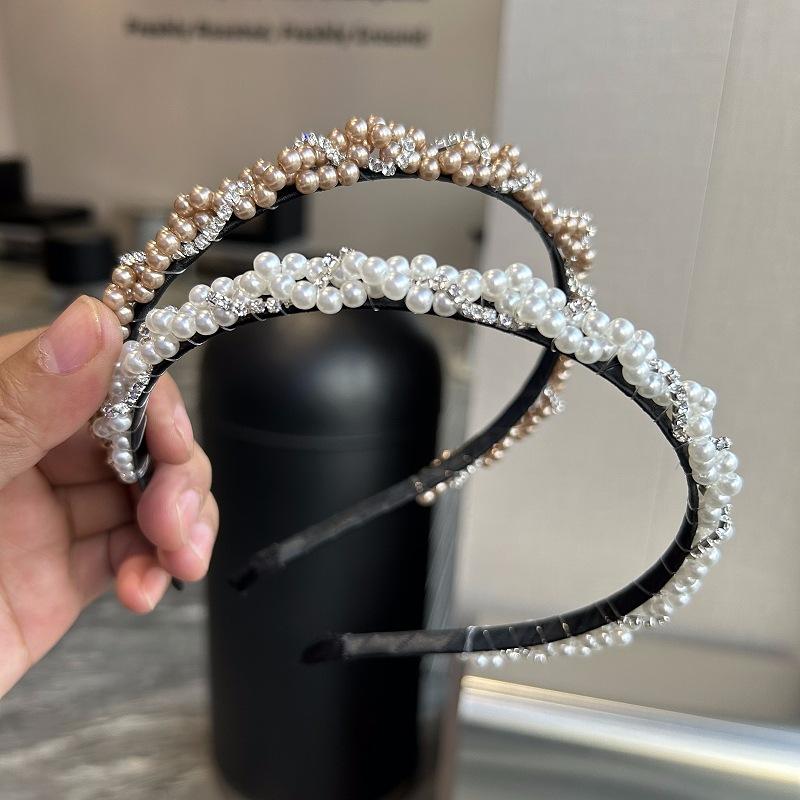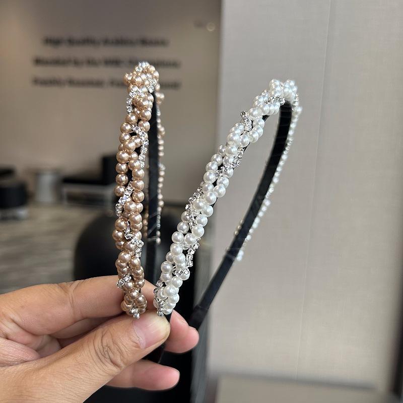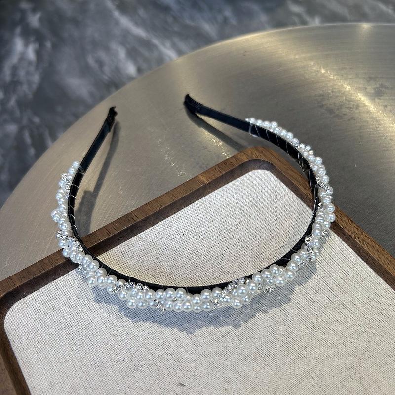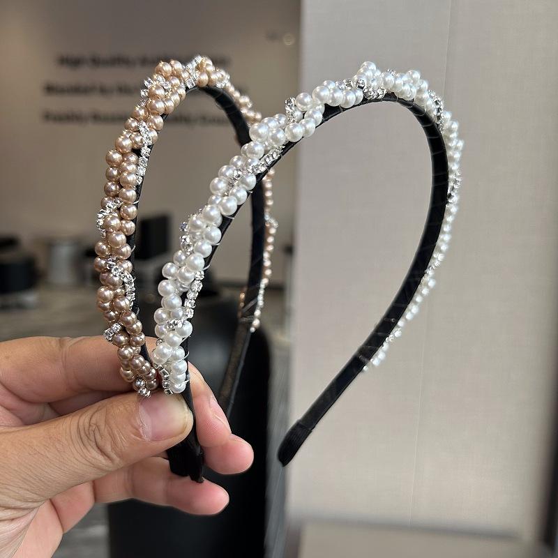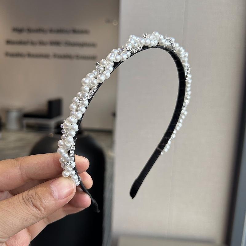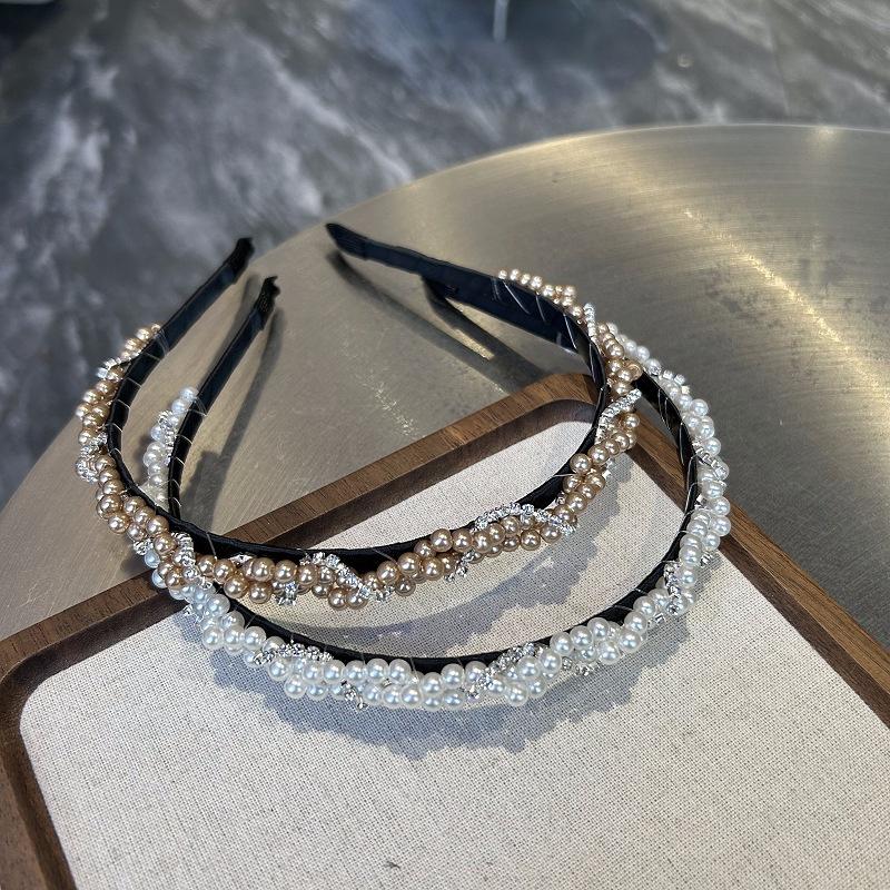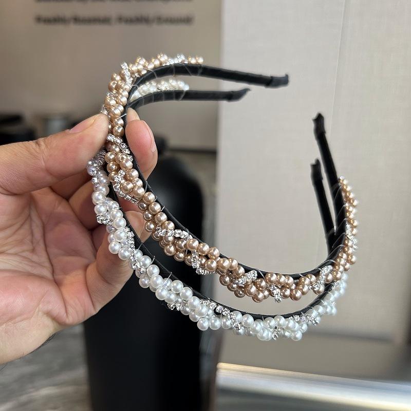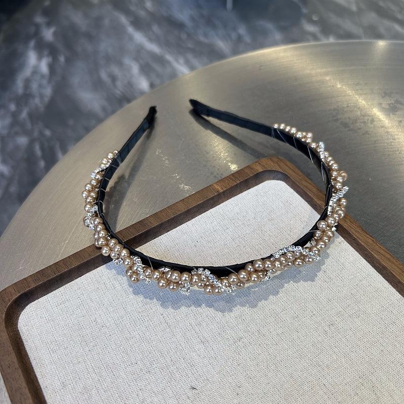 Diadema trenzada con perlas y diamantes de imitación, elegante y sencilla, accesorios para el cabello de alta calidad, tocados para salir.