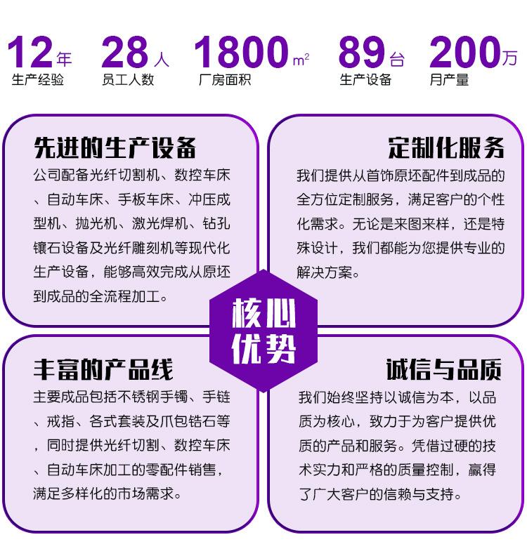 Dongguan Shishi Xiangyi Jewelry Co., Ltd. es una moderna empresa manufacturera especializada en el diseño y la producción de joyería de acero inoxidable. La empresa comenzó como un pequeño taller de procesamiento. Tras años de desarrollo e innovación, se ha convertido en un fabricante líder de joyería de acero inoxidable. Nos centramos en la investigación, el desarrollo y la producción de collares, anillos, aretes, pulseras, colgantes, piercings y otros productos de acero inoxidable. Contamos con una amplia experiencia en el sector y un completo sistema de gestión de calidad para garantizar que cada producto cumpla con altos estándares de calidad.