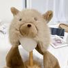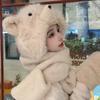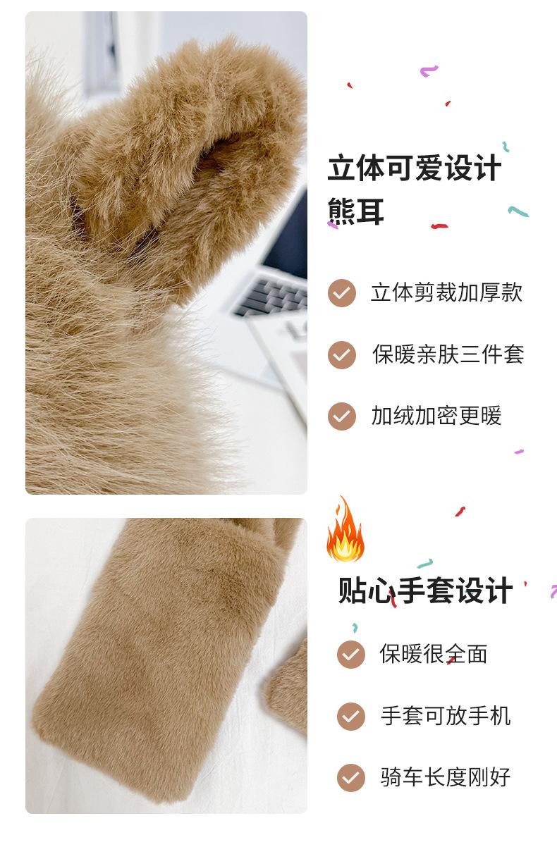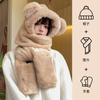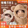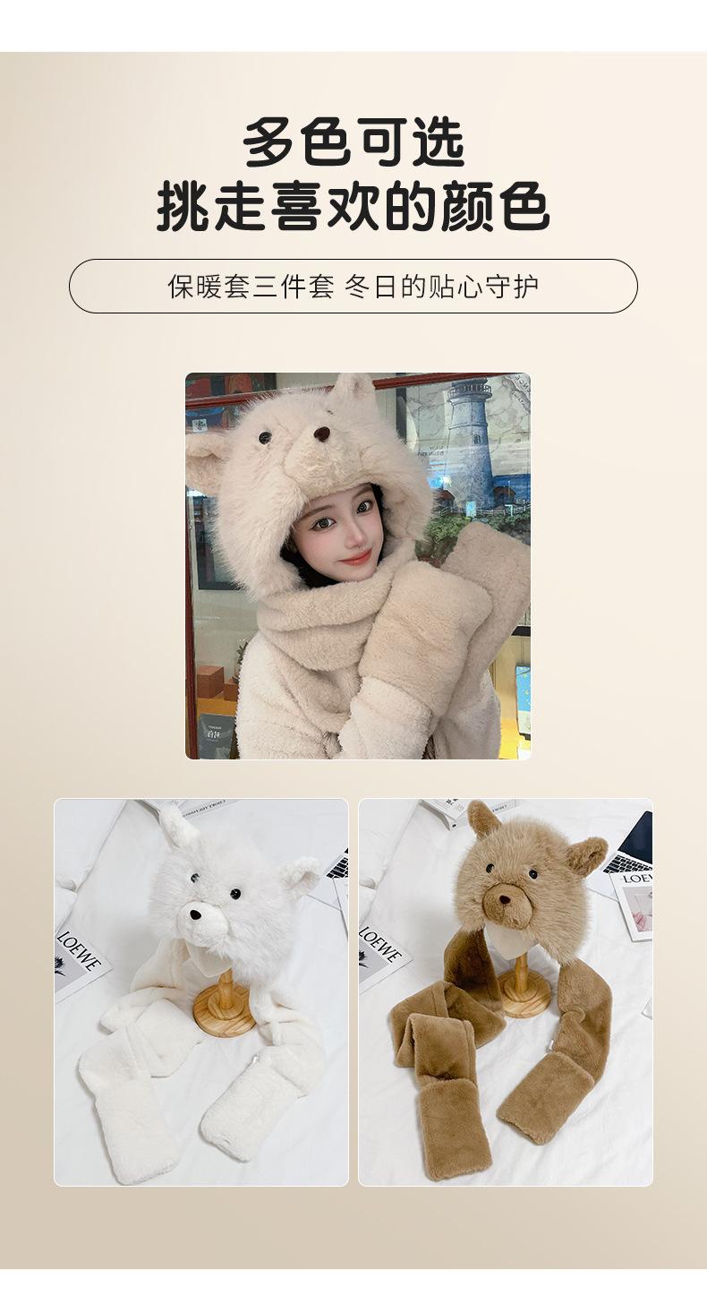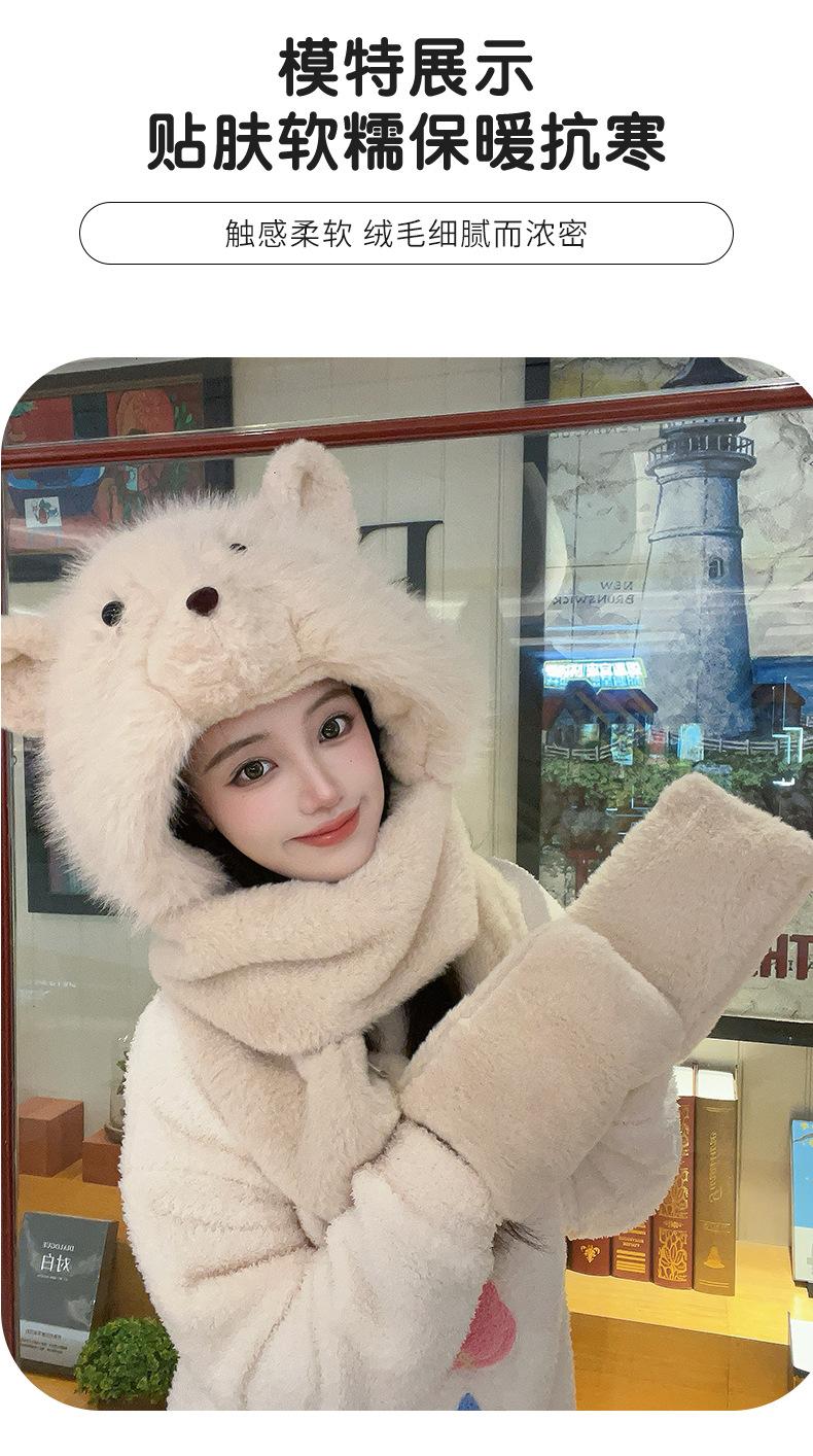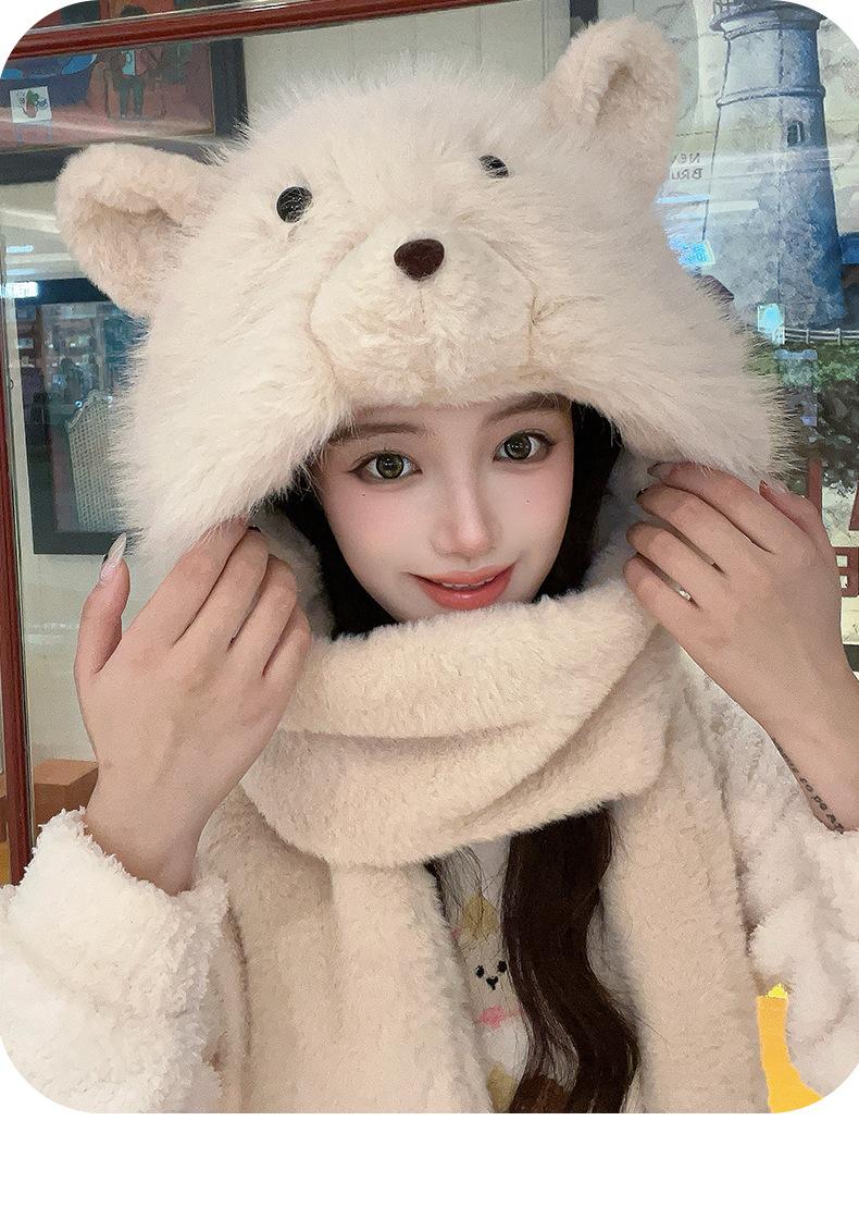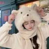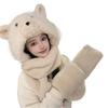Set de tres piezas de babero, guantes y gorro, oso lindo, gorro de invierno de terciopelo, para mujer, grueso con forro polar, cálido para el frío