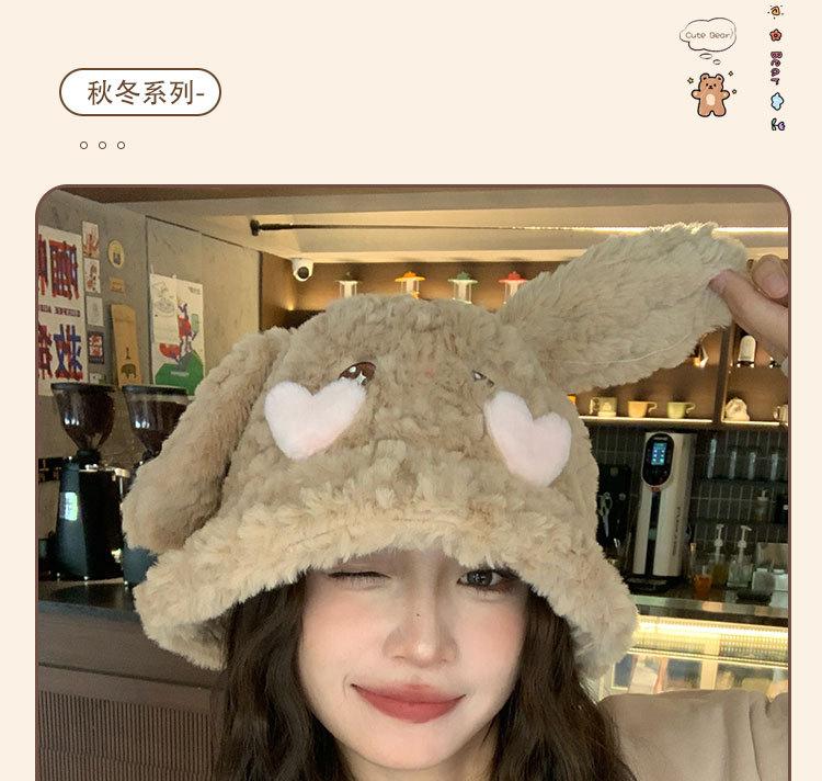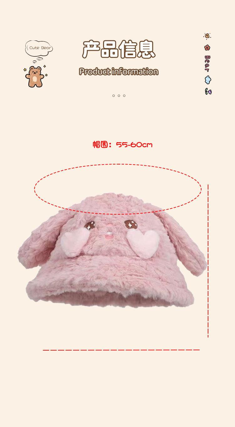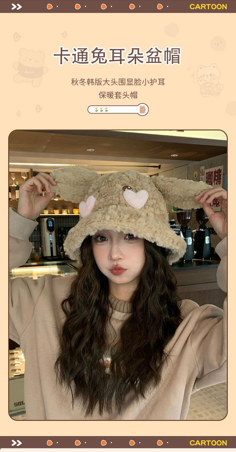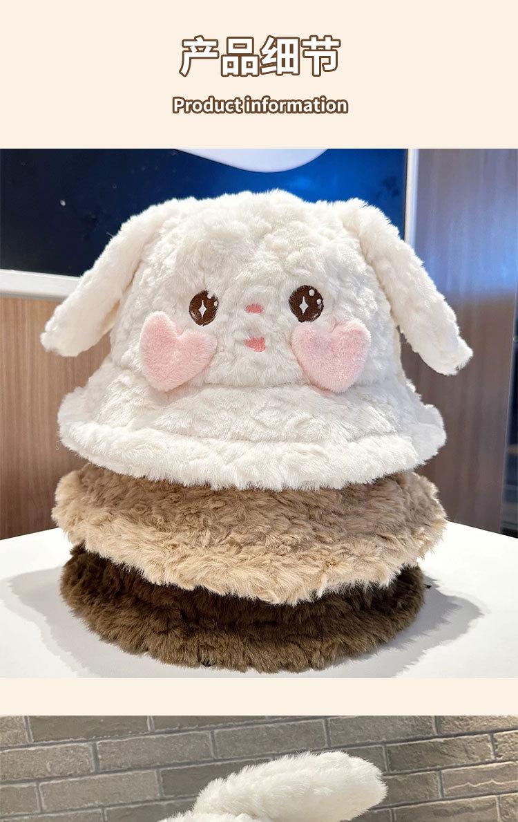Gorro de lavabo pequeño con cara a juego, cálido y de otoño e invierno, con orejas de conejo adorables y adorables, gorro de felpa con protección para las orejas para niños, gorro de pescador
