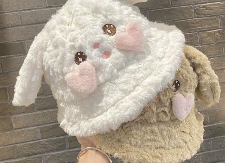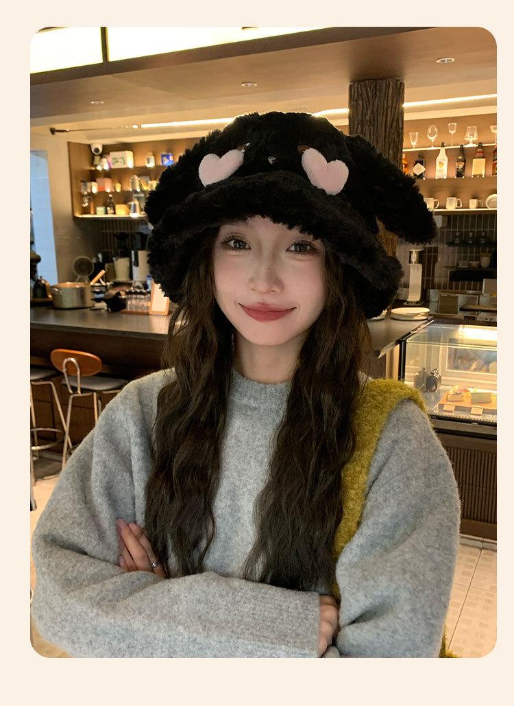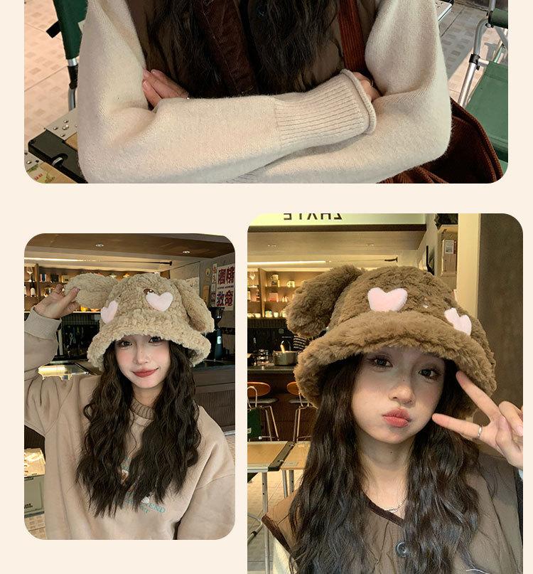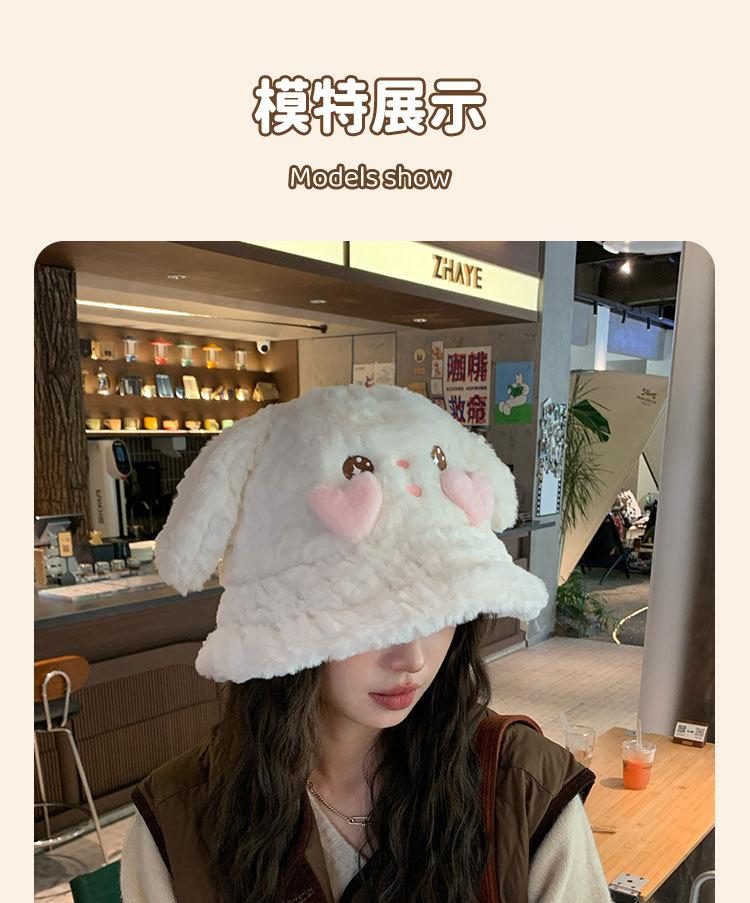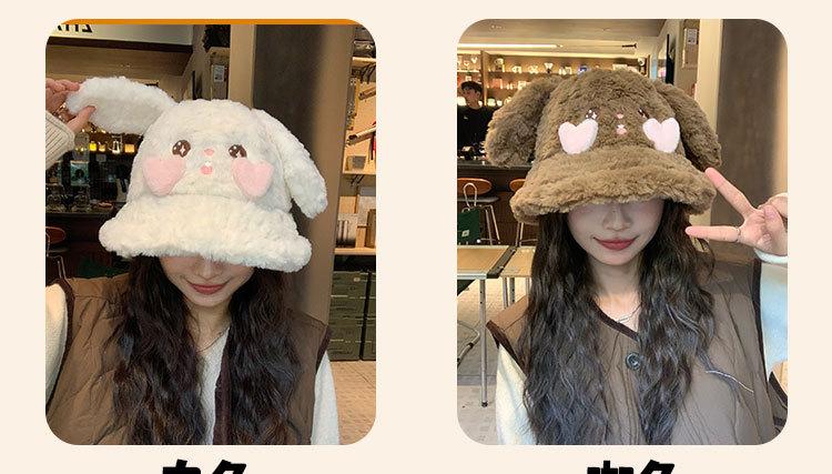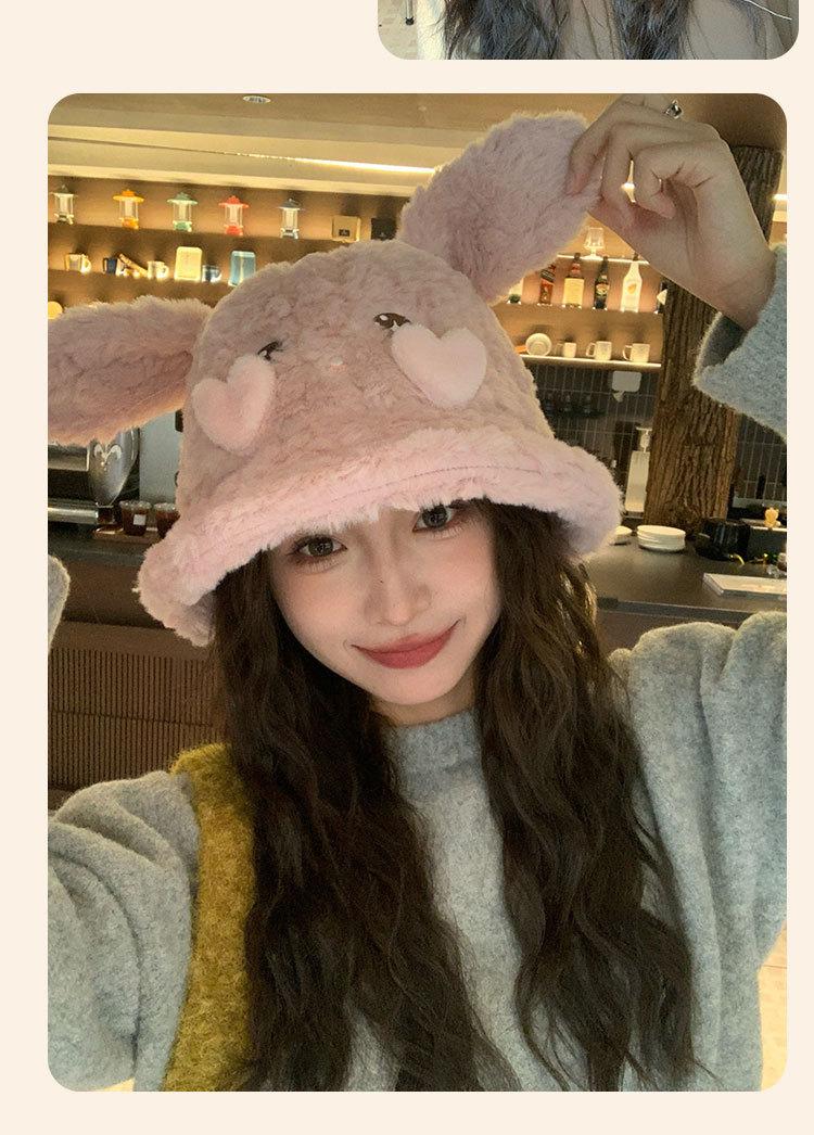 Gorro de lavabo pequeño con cara a juego, cálido y de otoño e invierno, con orejas de conejo adorables y adorables, gorro de felpa con protección para las orejas para niños, gorro de pescador