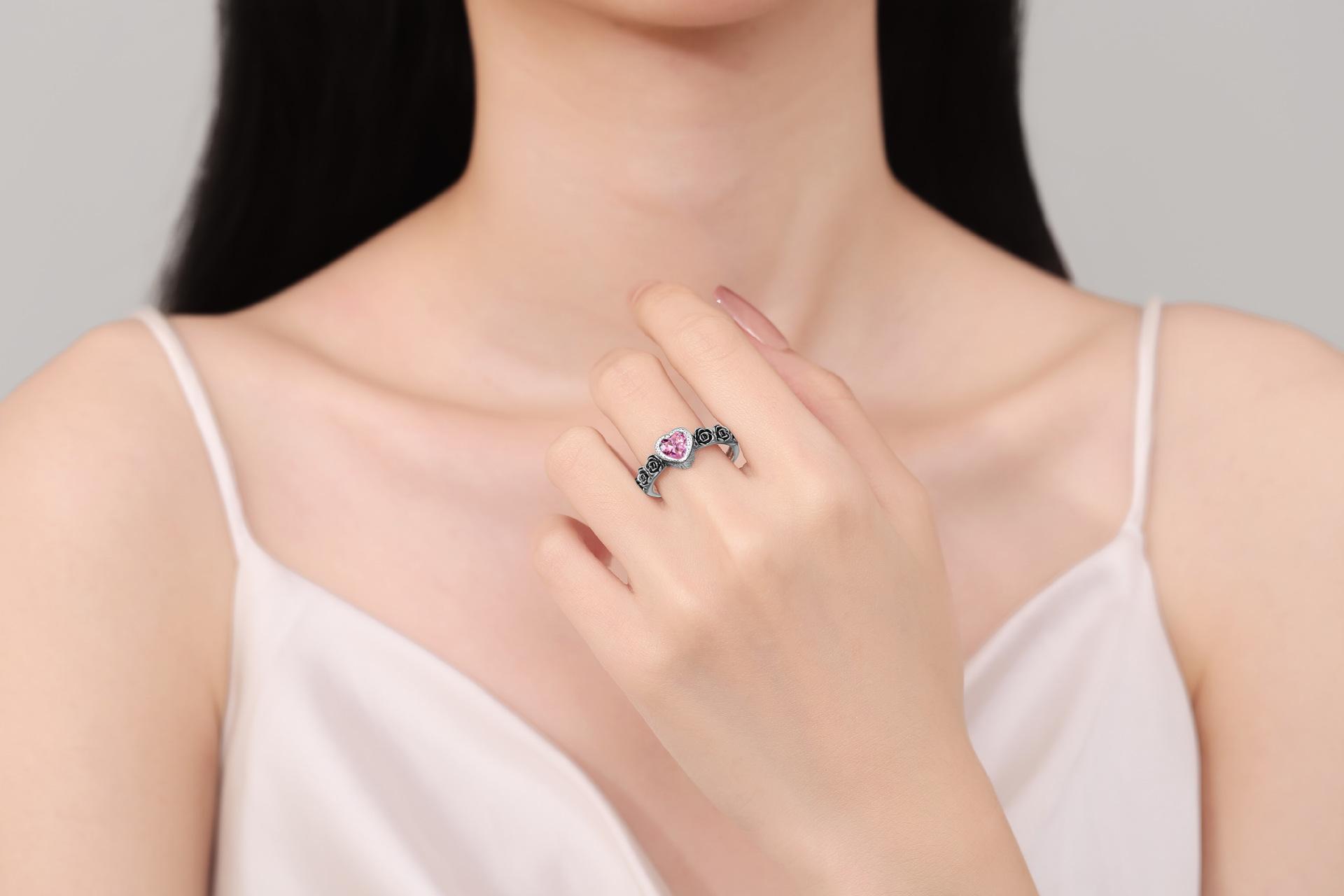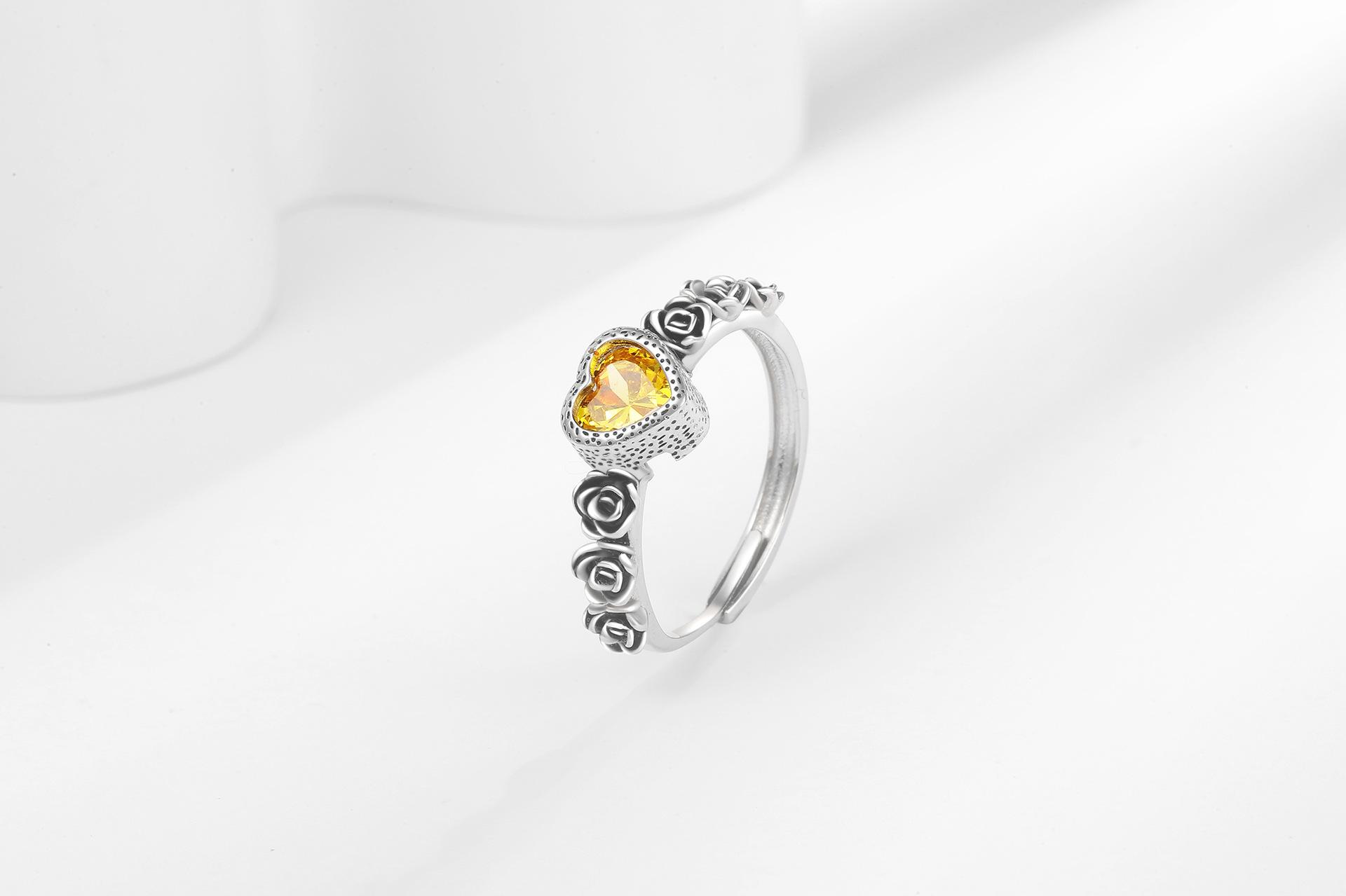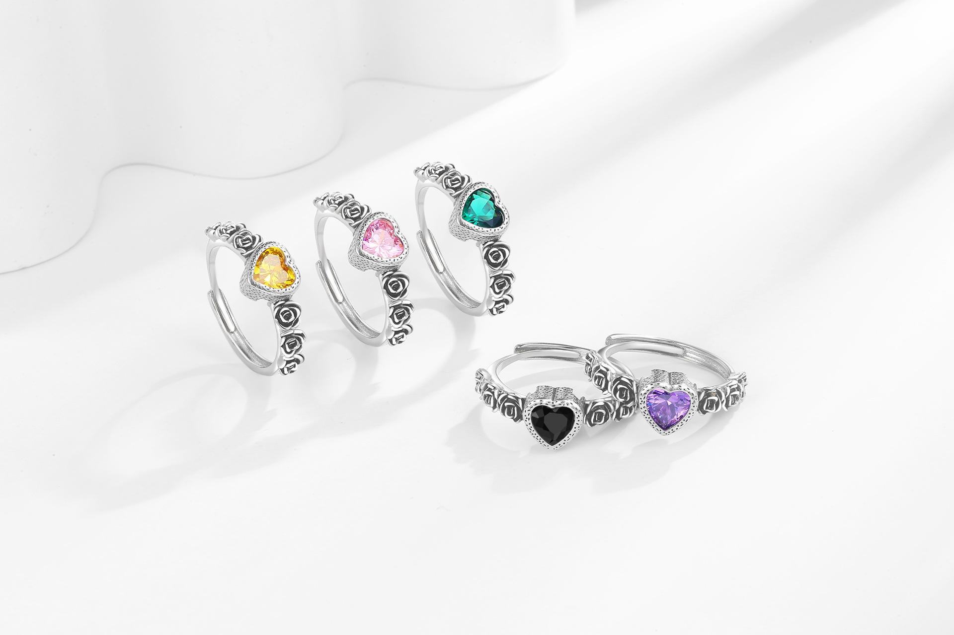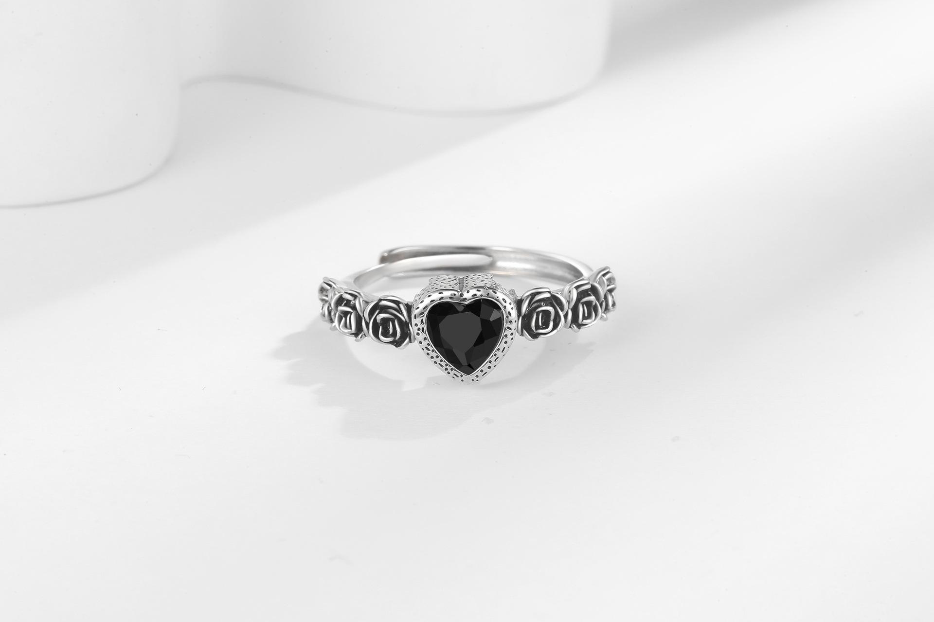 Anillo de Rosa Europeo y Americano de Venta Caliente Transfronteriza para Mujer, Simple y Moderno con Forma de Corazón, Nicho de Estilo Frío, Anillo Personalizado para el Dedo Índice