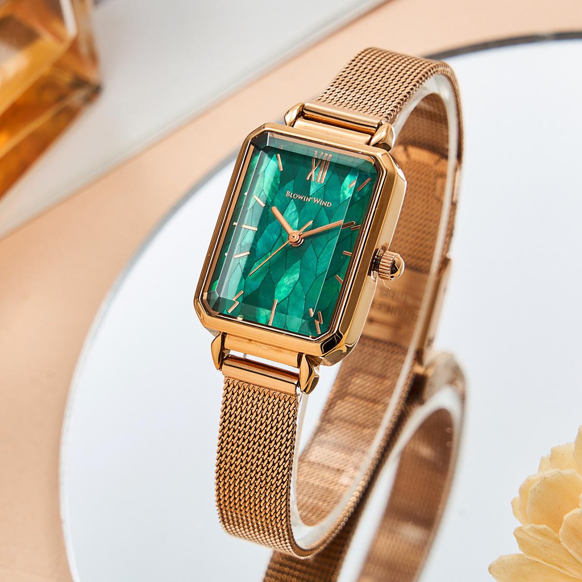 Reloj de moda para mujer, estilo Ins, ligero, de lujo, avanzado, cuadrado, pequeño, verde, para estudiantes, sencillo y elegante.