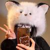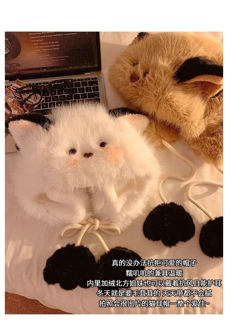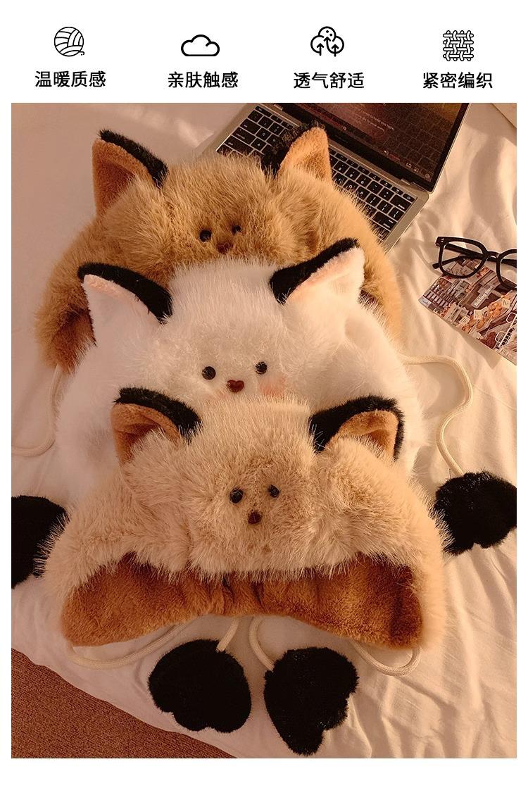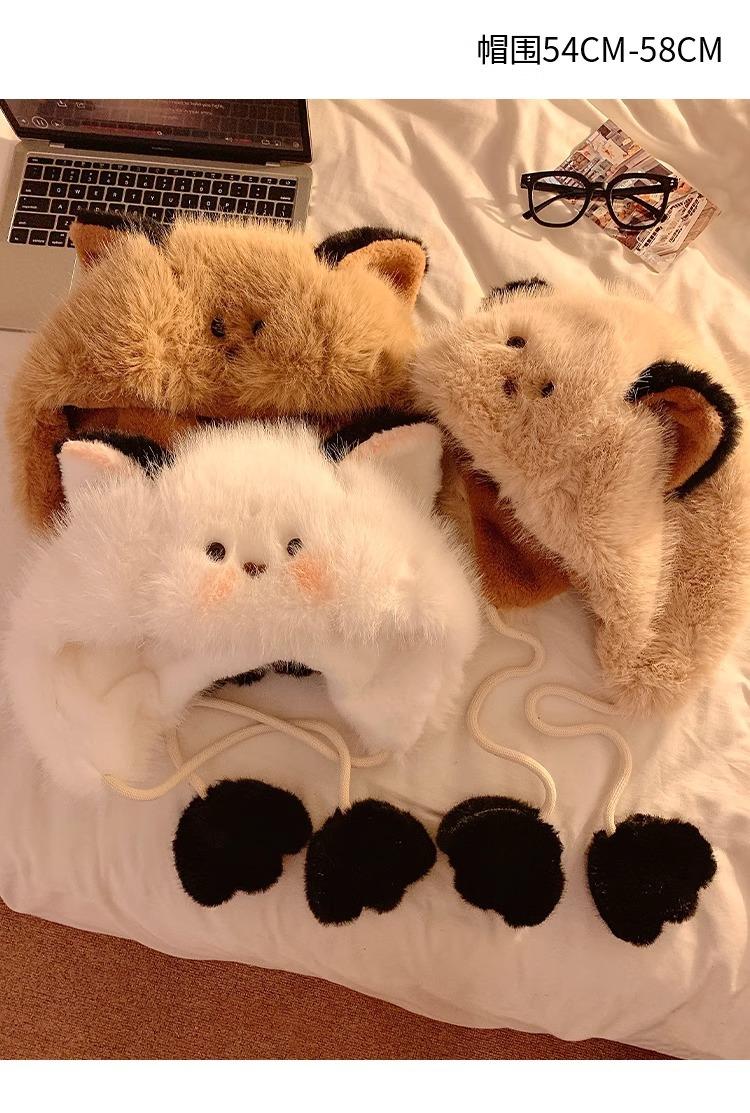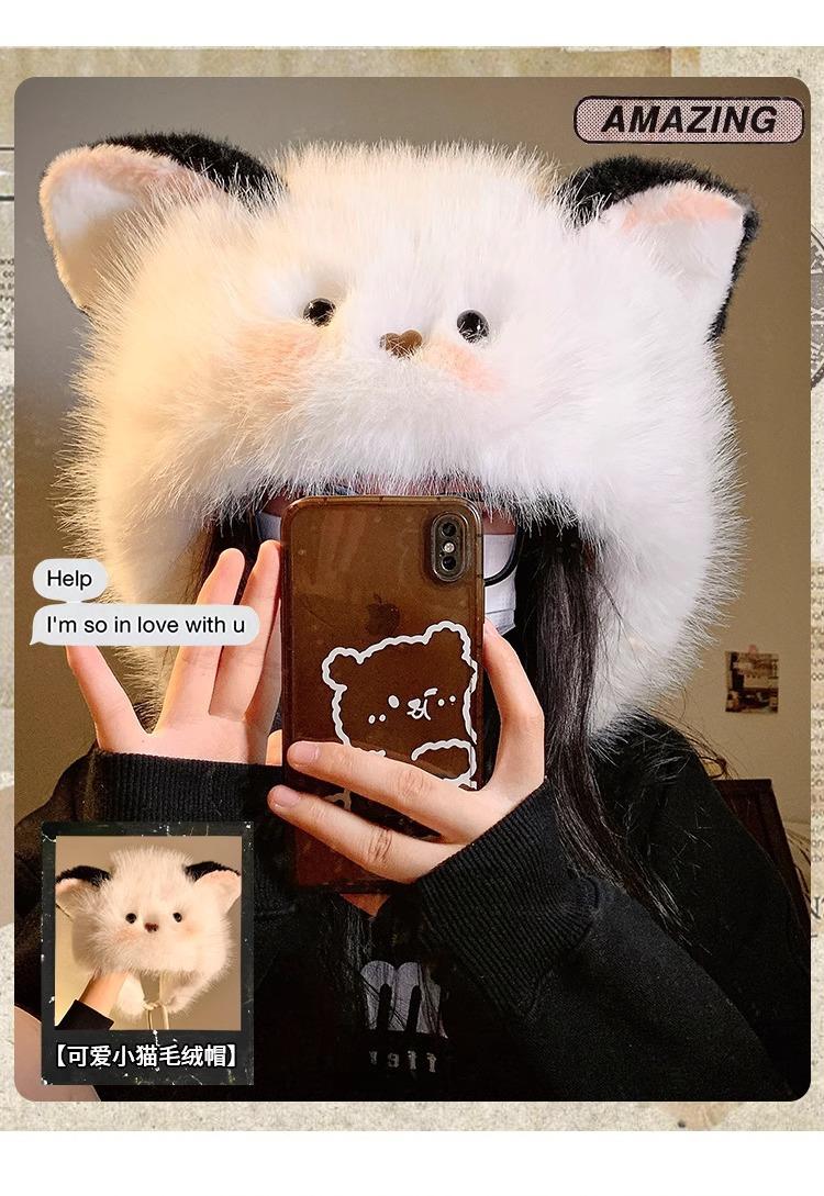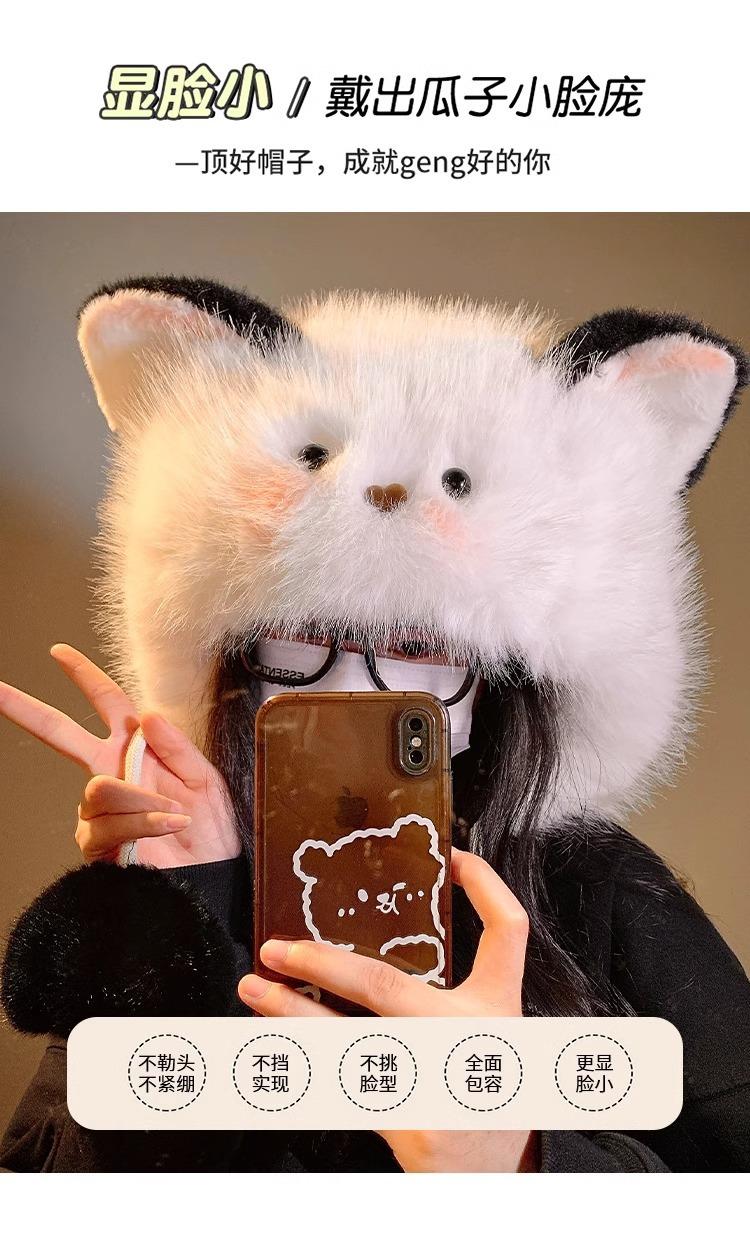 Lindo Sombrero de Felpa con Orejas de Gato para Mujer Otoño e Invierno con Forro Polar Grueso Cálido a Prueba de Frío Protección para las Orejas Sombrero Lei Feng para Rostro Pequeño